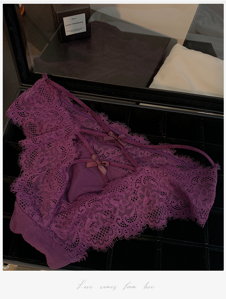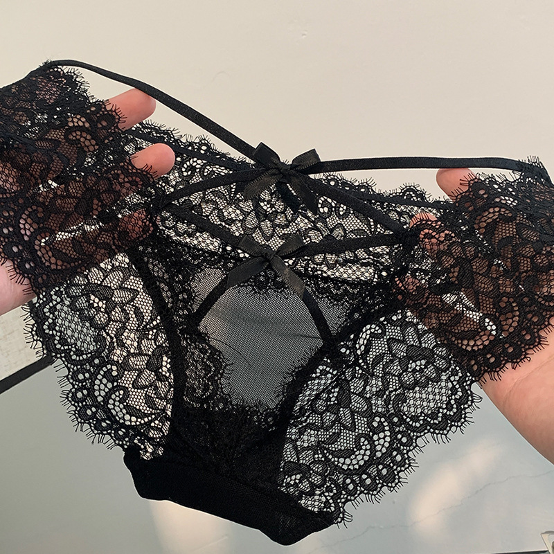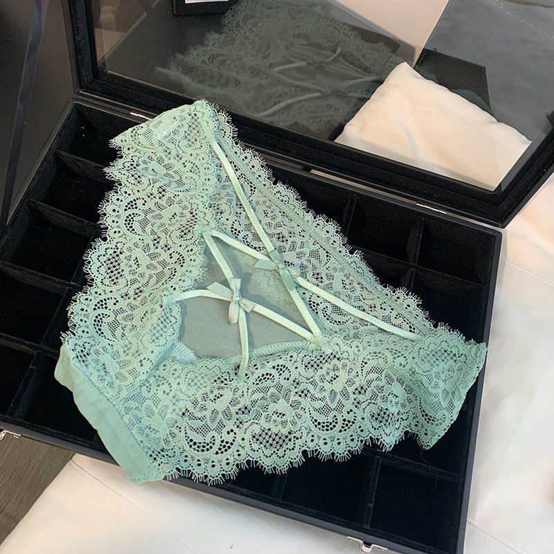 镂空蝴蝶结法式内裤女性感系带镂空蕾丝纯欲低腰纯棉裆少女三角裤