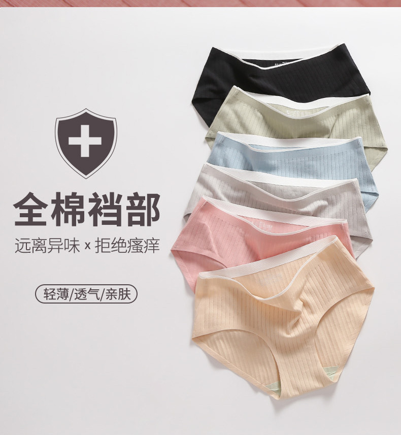 内裤女士纯棉透气少女中腰女式学生艾草三角裤女士一片式无痕底裤