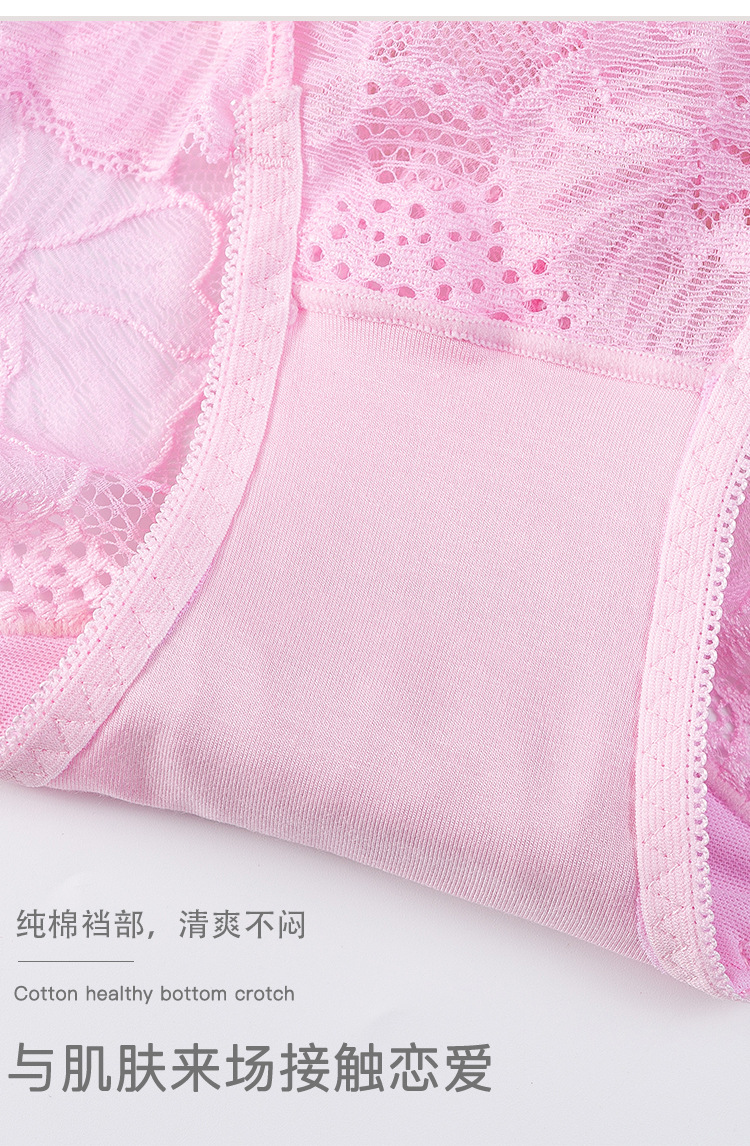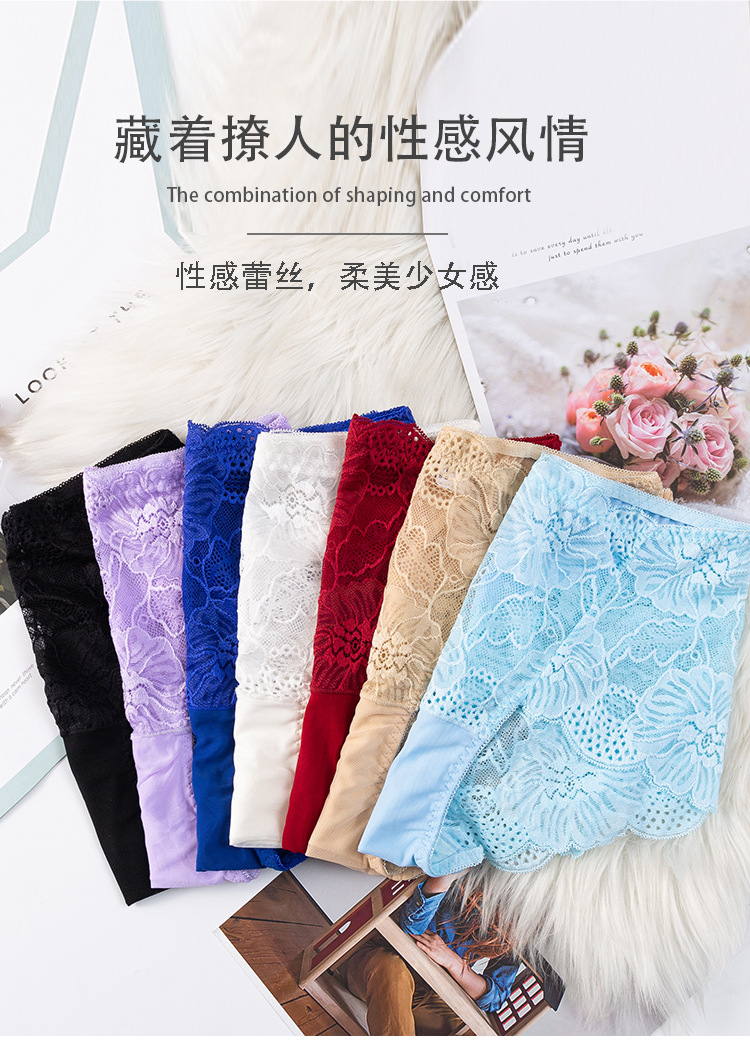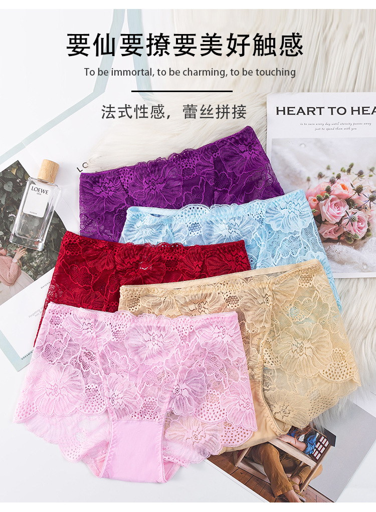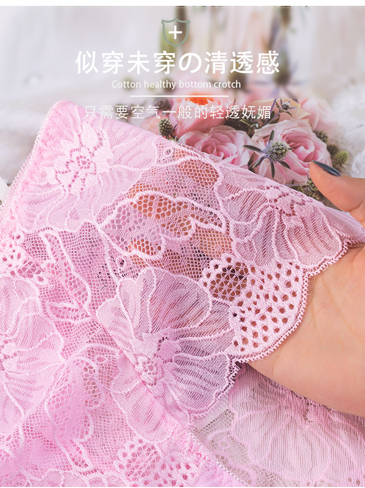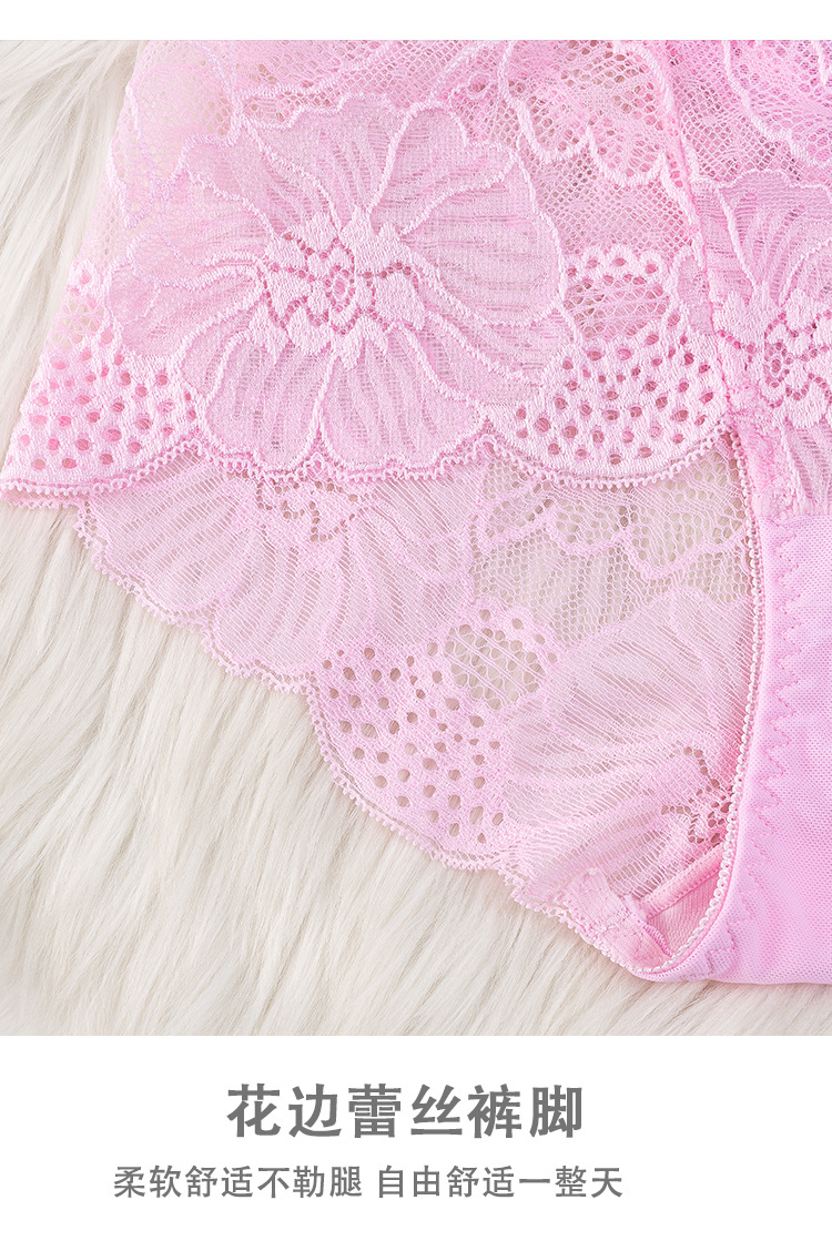 新款女士薄款提花中高腰镂空蕾丝内裤女加肥大码内裤女性感三角裤