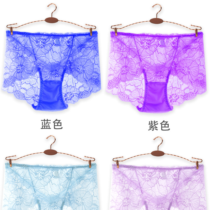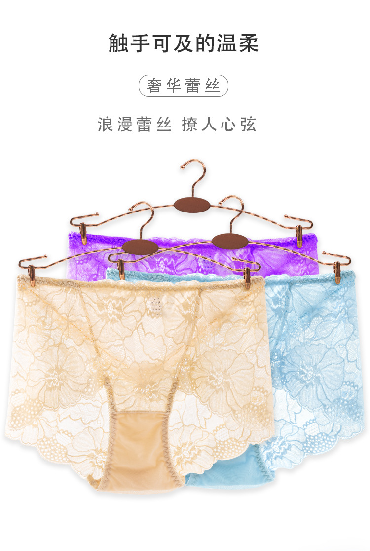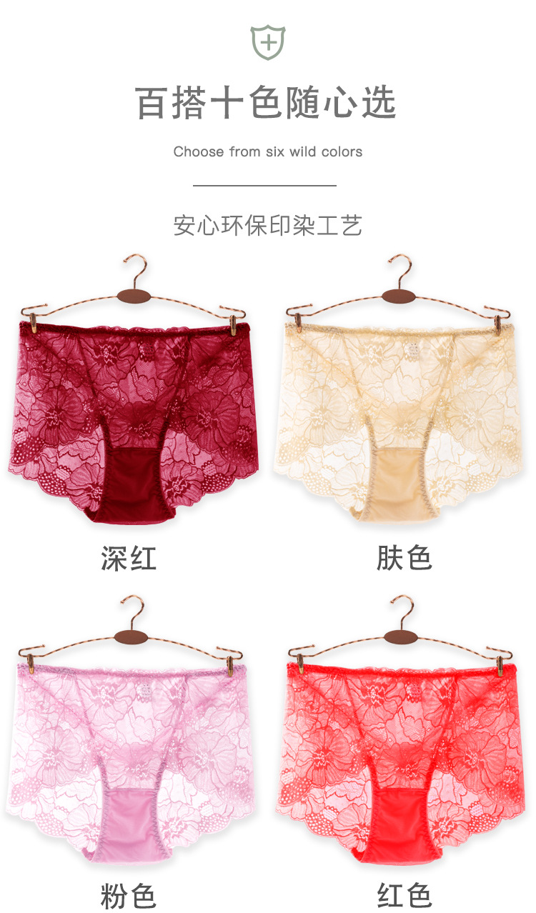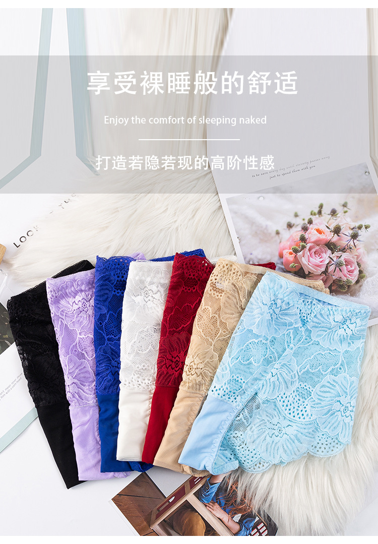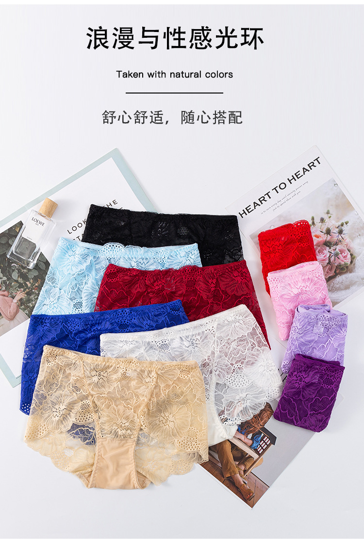 新款女士薄款提花中高腰镂空蕾丝内裤女加肥大码内裤女性感三角裤