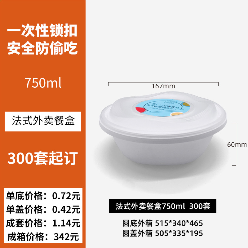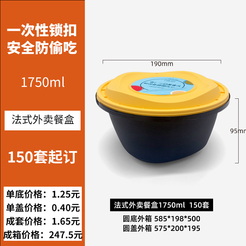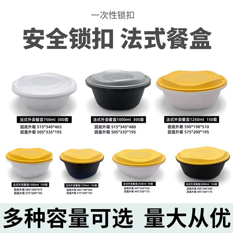 现货一次性碗圆形塑料快餐盒麻辣烫饭碗密封加厚防盗扣外卖打包盒