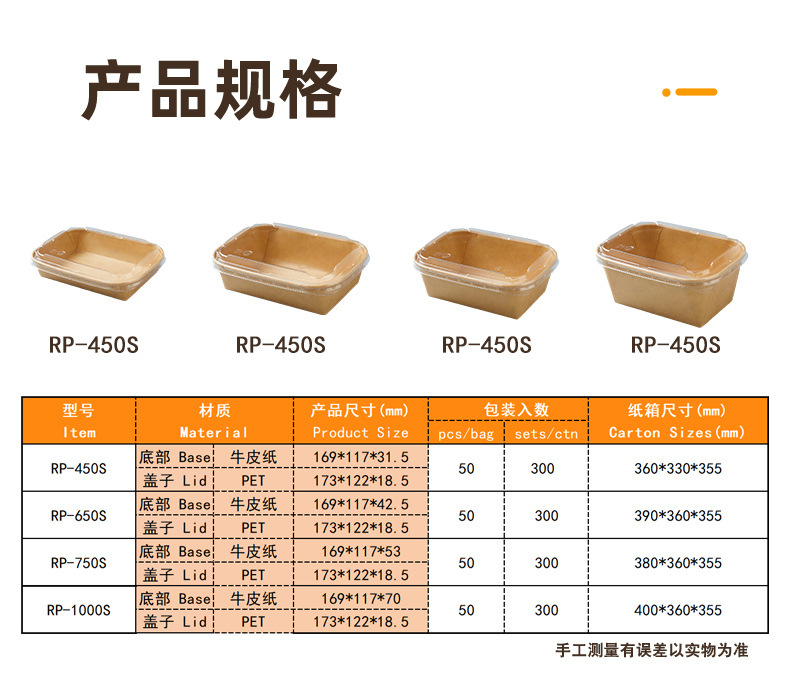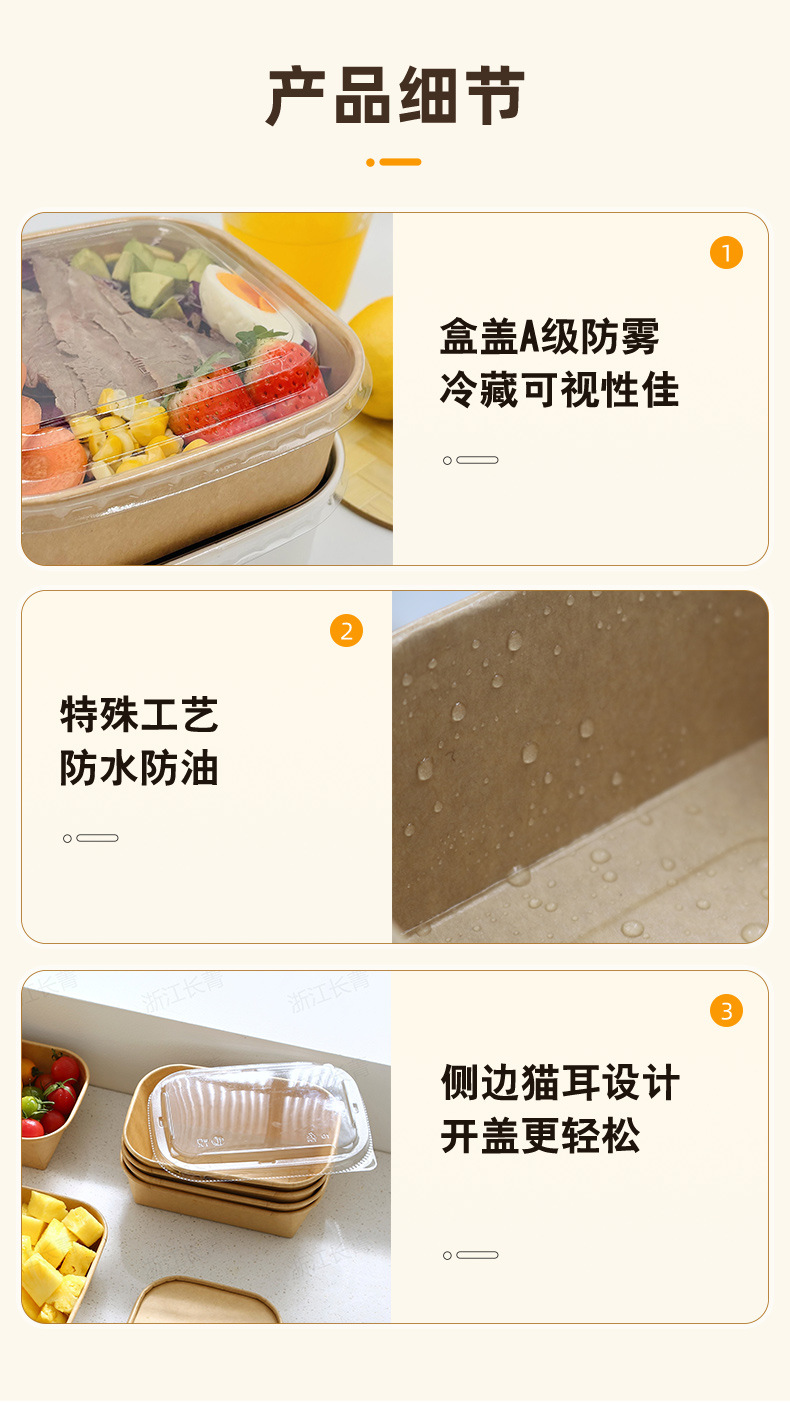 牛皮纸餐盒外出餐盒一次性水果沙拉盒露营餐盒带盖水果盒糕点盒