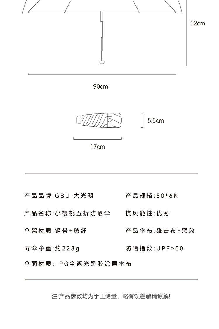 大光明折叠雨伞晴雨两用超轻防晒遮阳伞便携式小巧迷你口袋胶囊伞