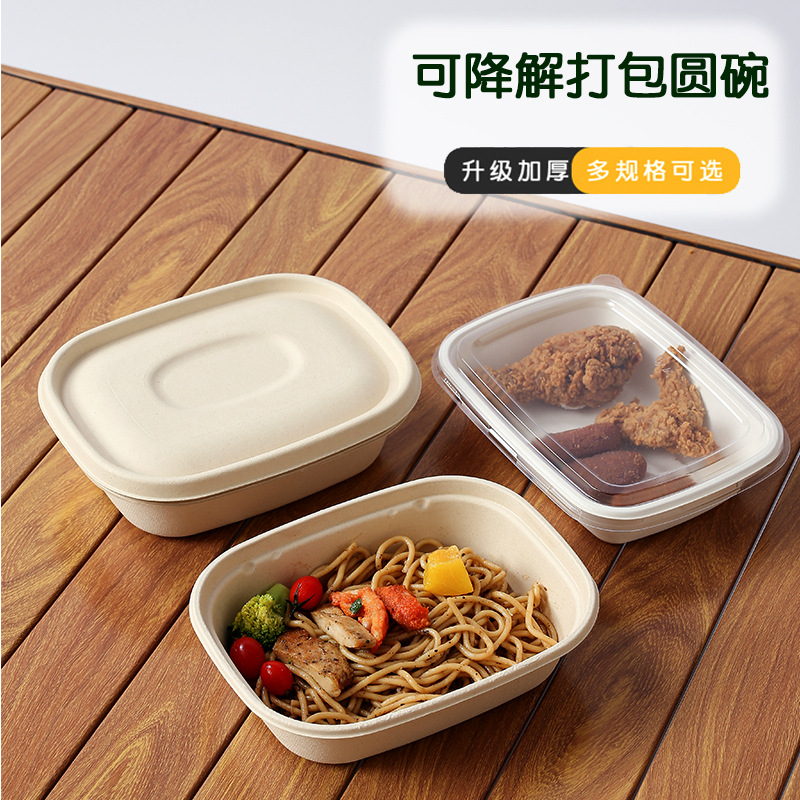 一次性可降解甘蔗纸浆轻食水果沙拉外卖长方形便当野餐打包餐盒