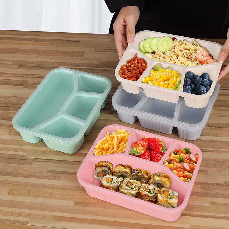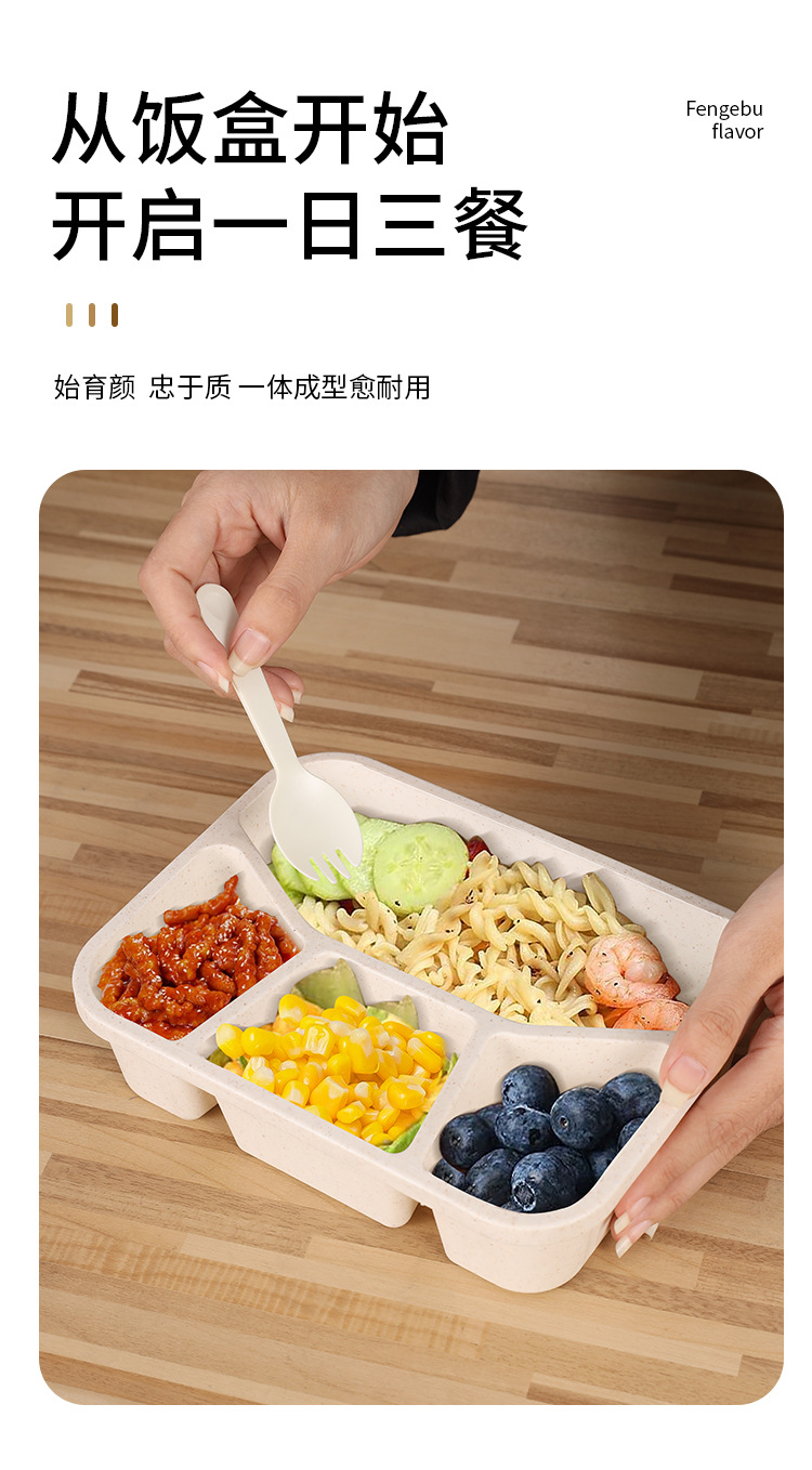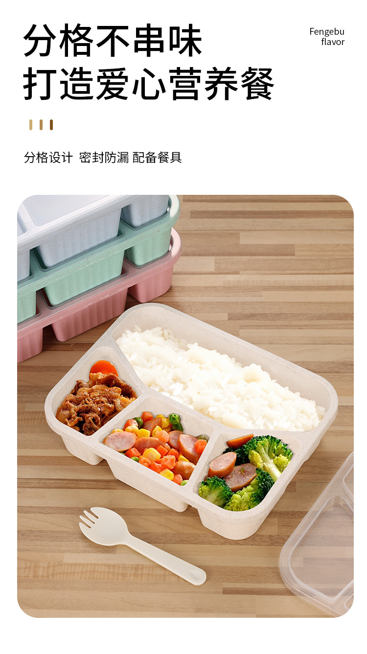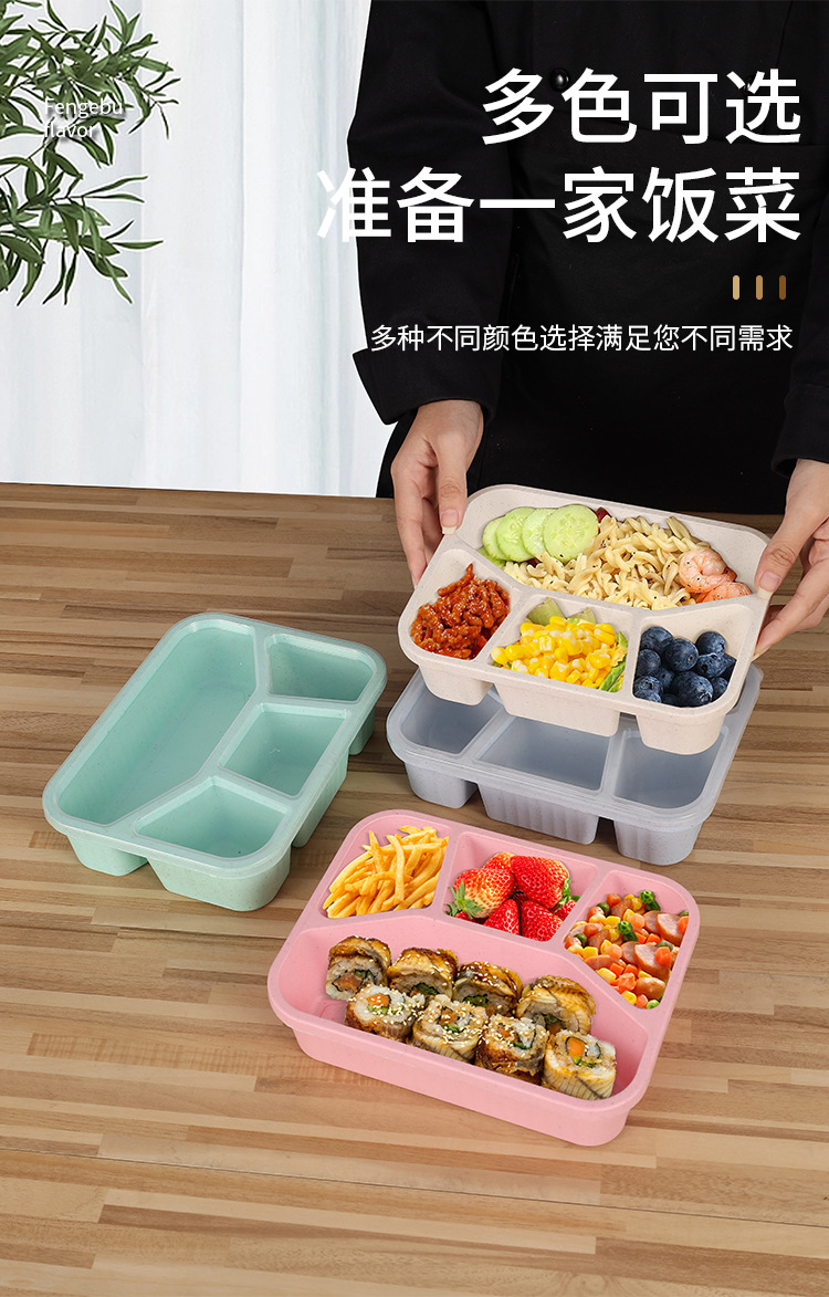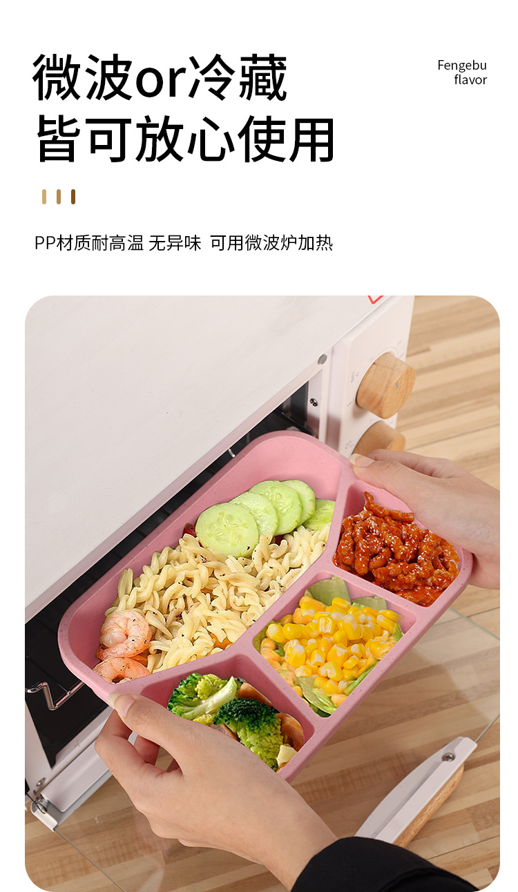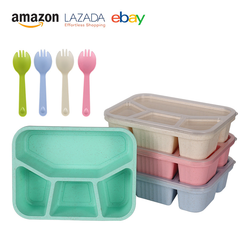 跨境小麦秸秆四分格餐盒点心零食野餐饭盒学生便携四格减脂便当盒