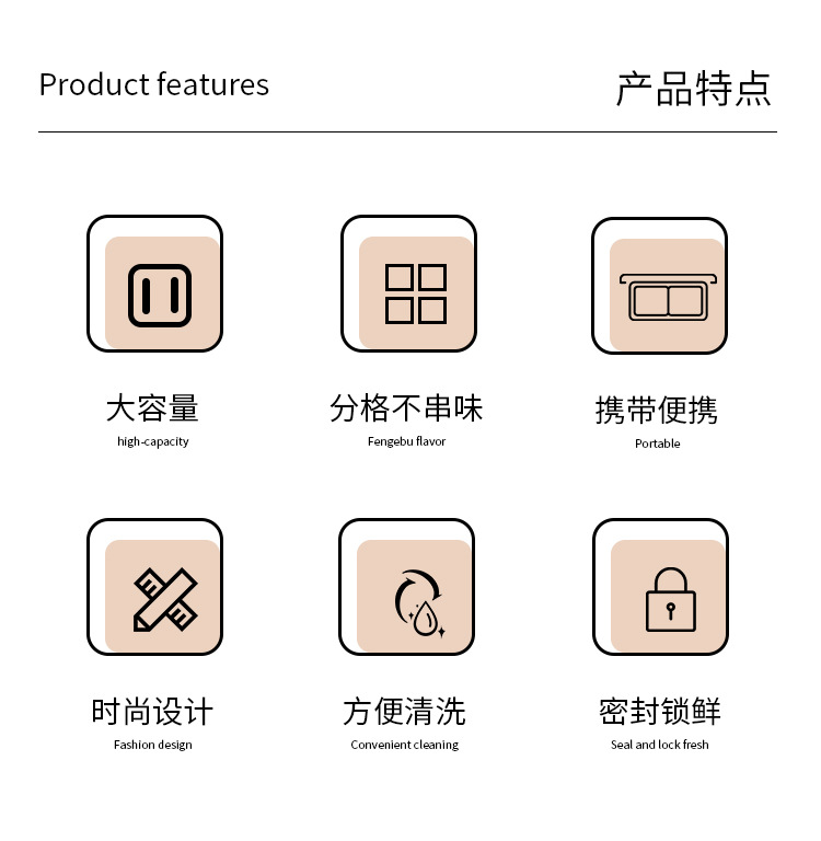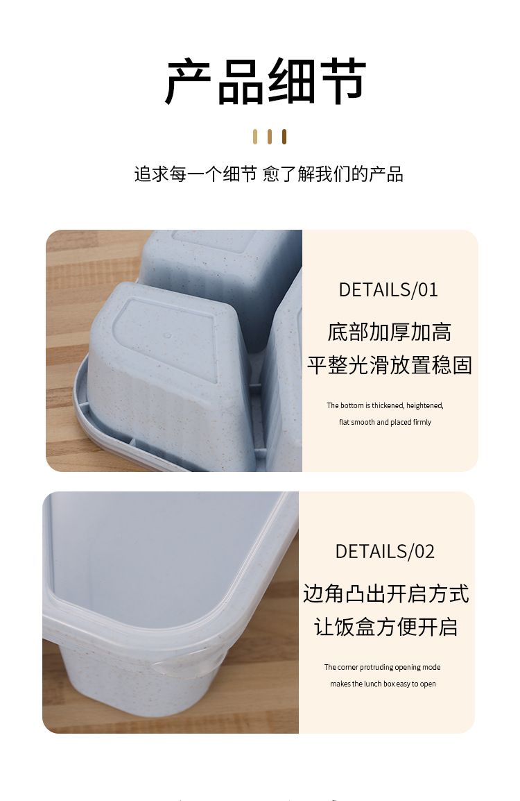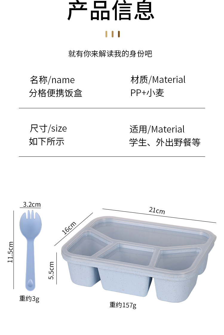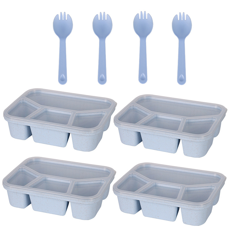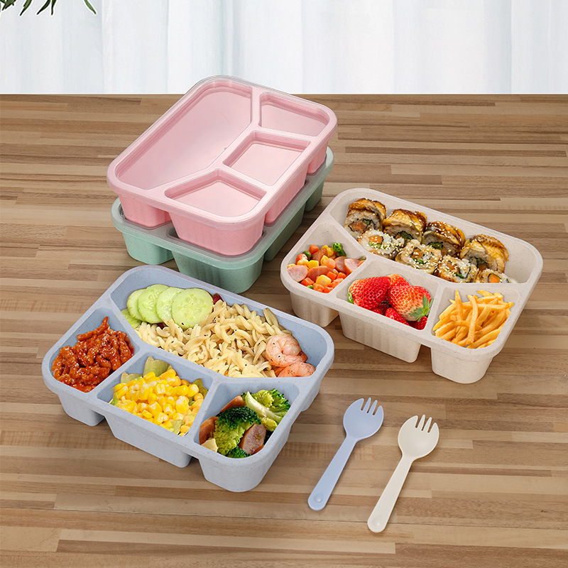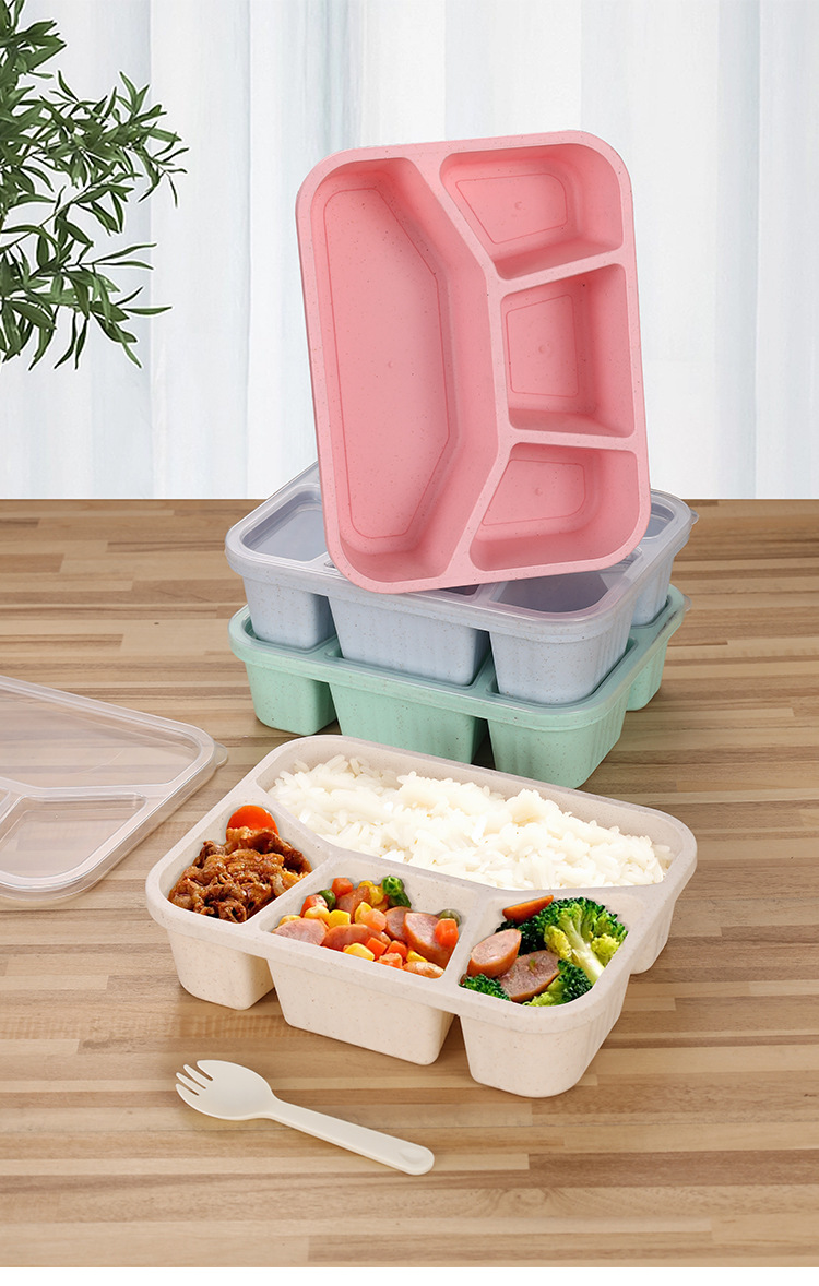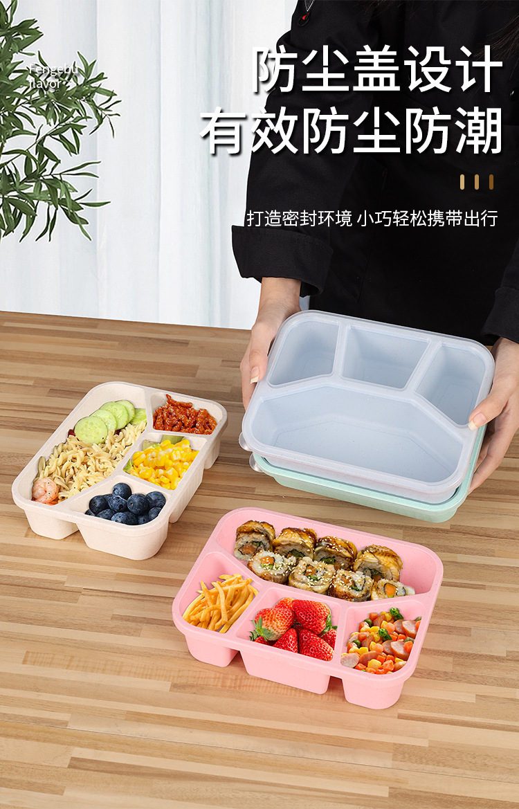 跨境小麦秸秆四分格餐盒点心零食野餐饭盒学生便携四格减脂便当盒