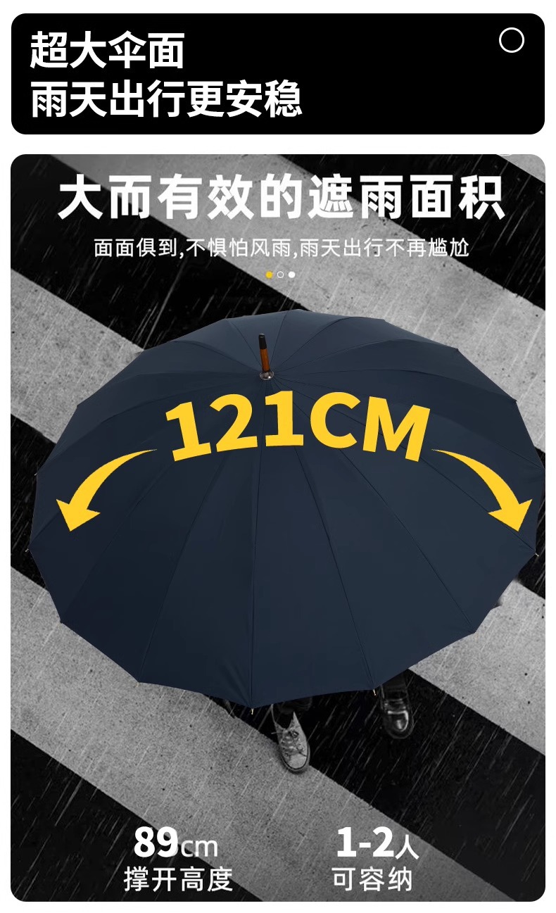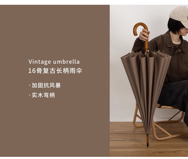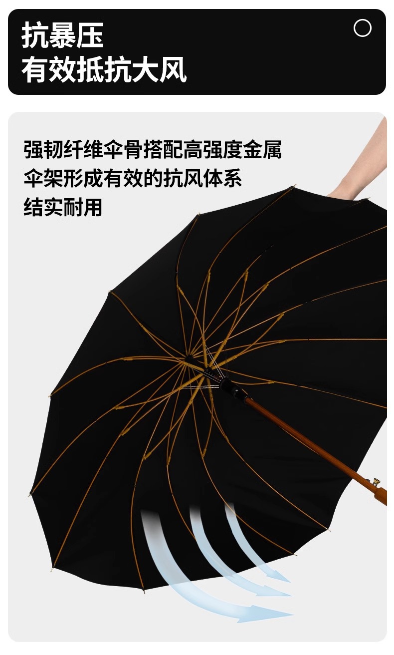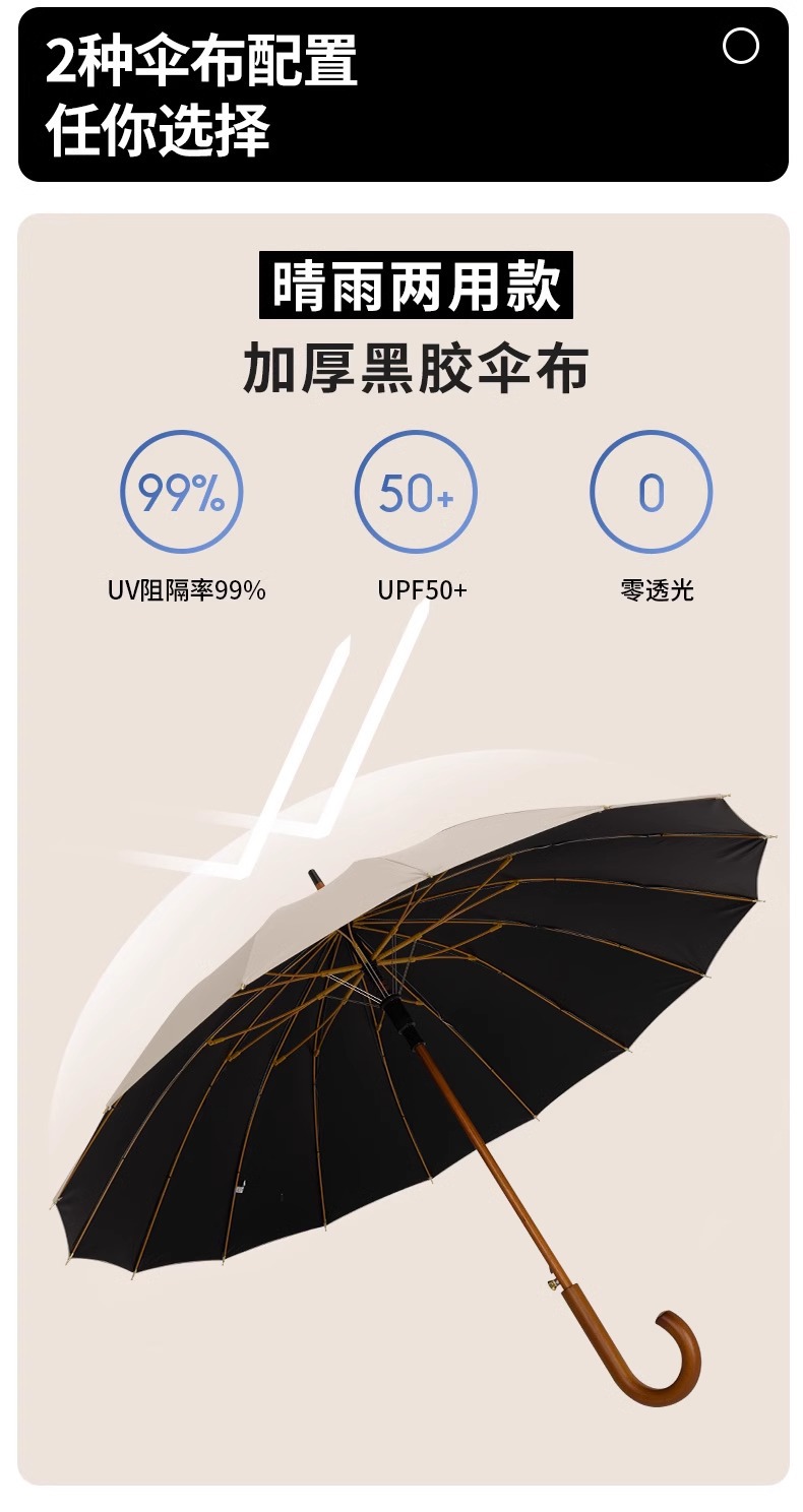 16骨加大长柄雨伞男士加厚加固结实抗风晴雨两用女复古木质双人伞