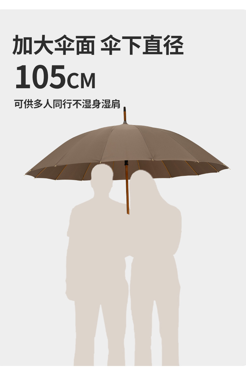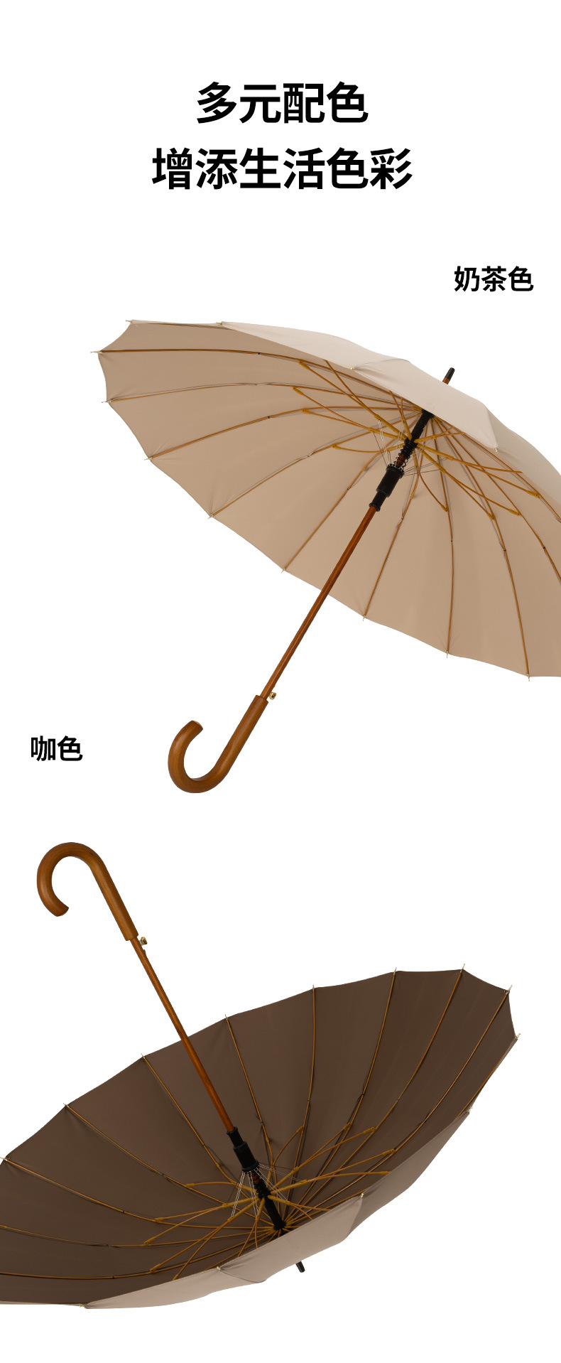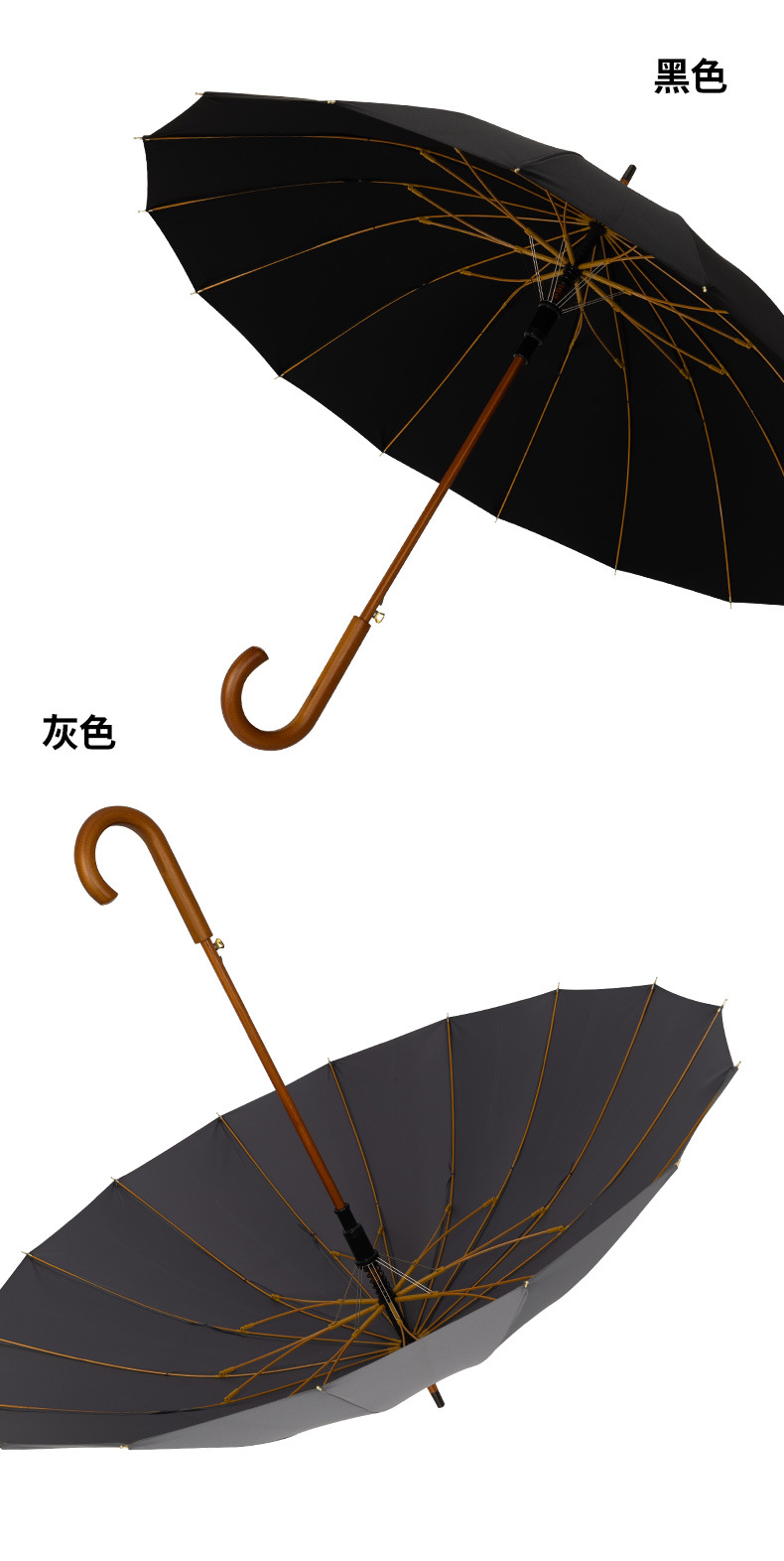 16骨长柄直杆伞加大加固结实抗风实木弯柄家用双人大号雨伞批发