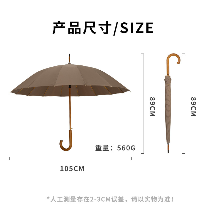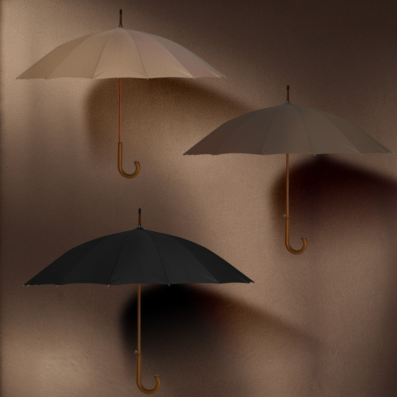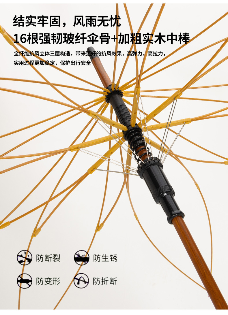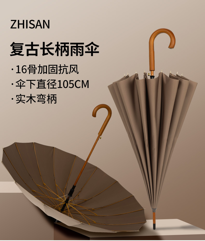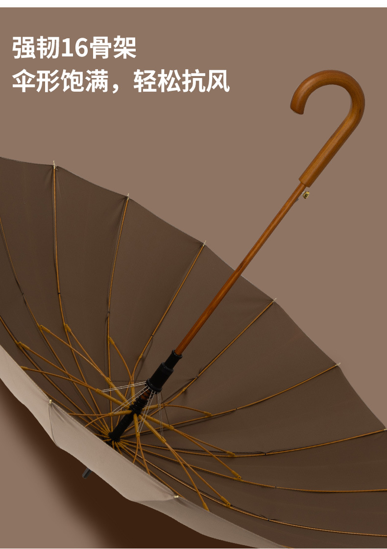 16骨长柄直杆伞加大加固结实抗风实木弯柄家用双人大号雨伞批发