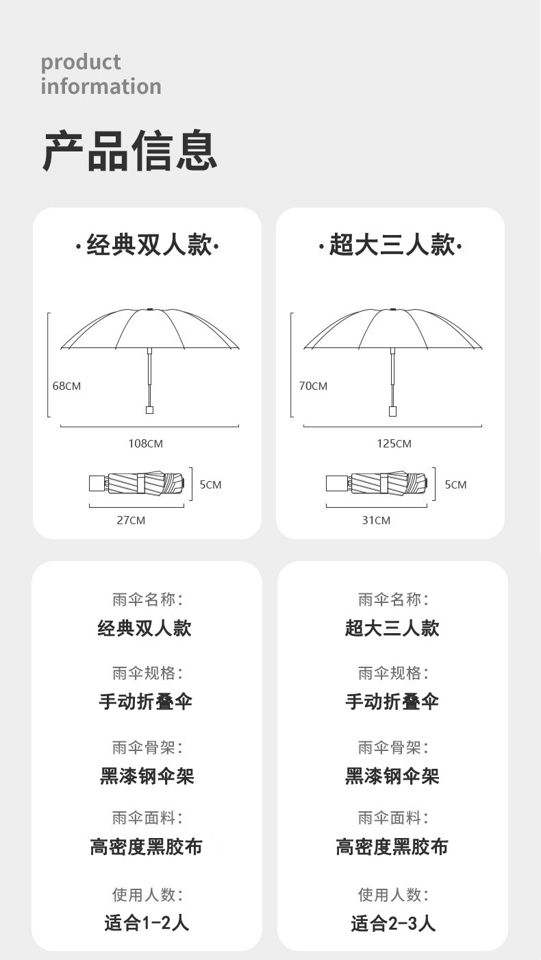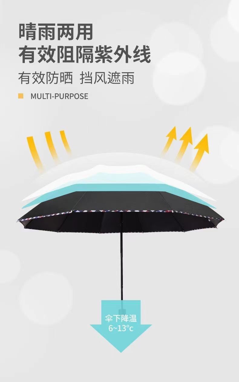 雨伞大号雨伞男女加大加固晴雨两用学生手动三叠黑胶防晒遮阳伞