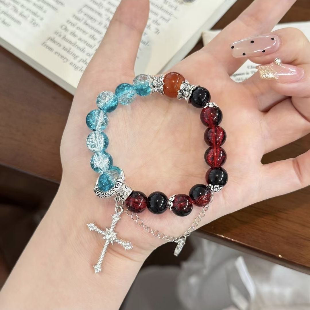 新款黑色系圆珠热销手串夏季小清新气质显白闺蜜学生手链夜市摆摊