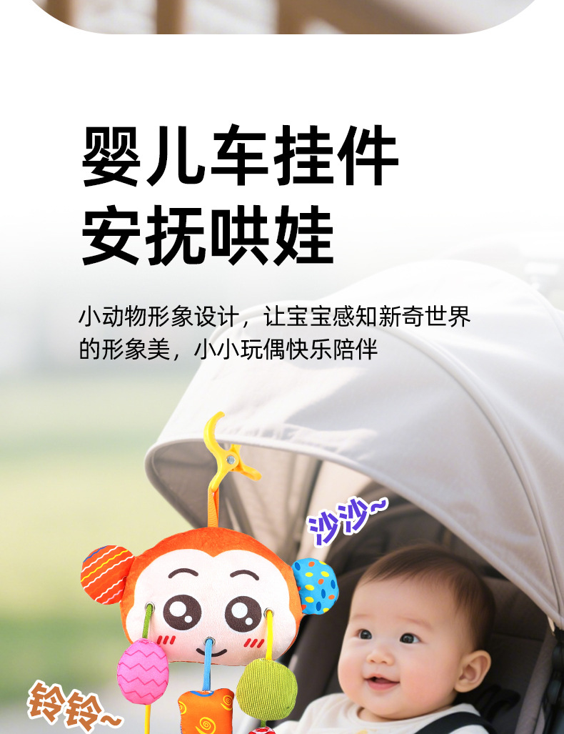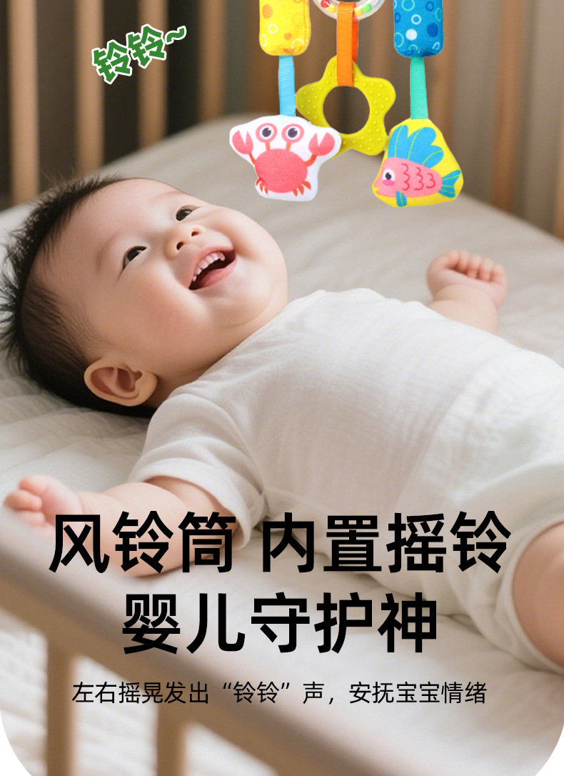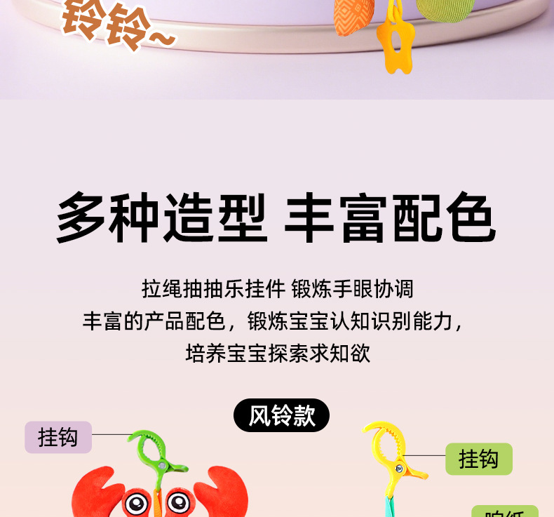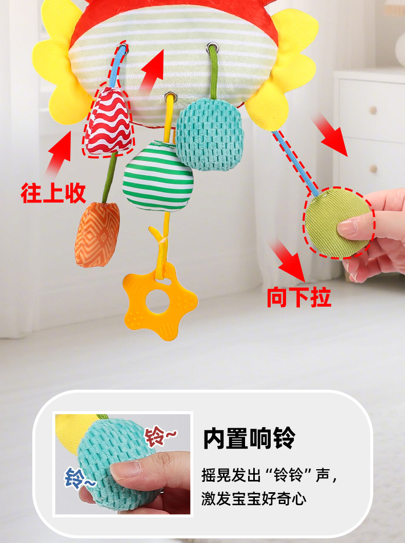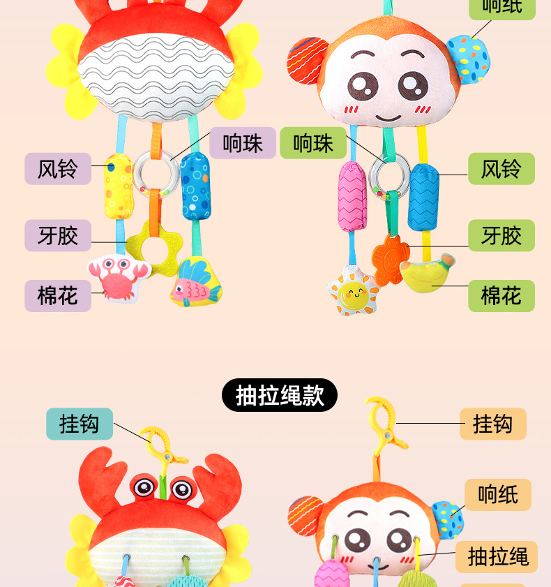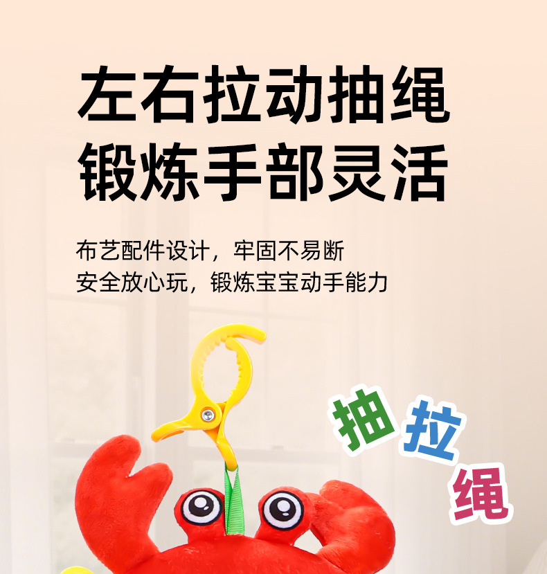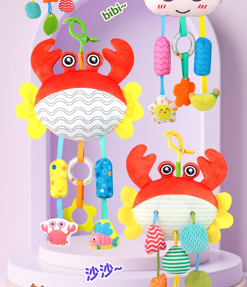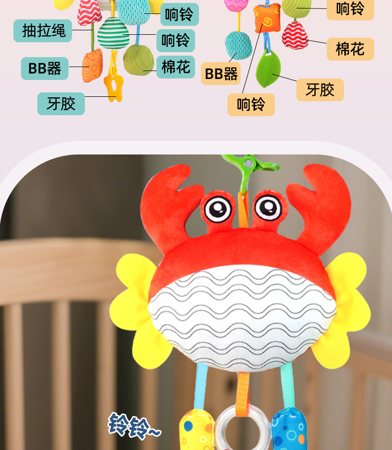 跨境螃蟹拉绳抽抽乐床铃手推车婴儿车摇铃挂件新生儿玩具安抚宝宝