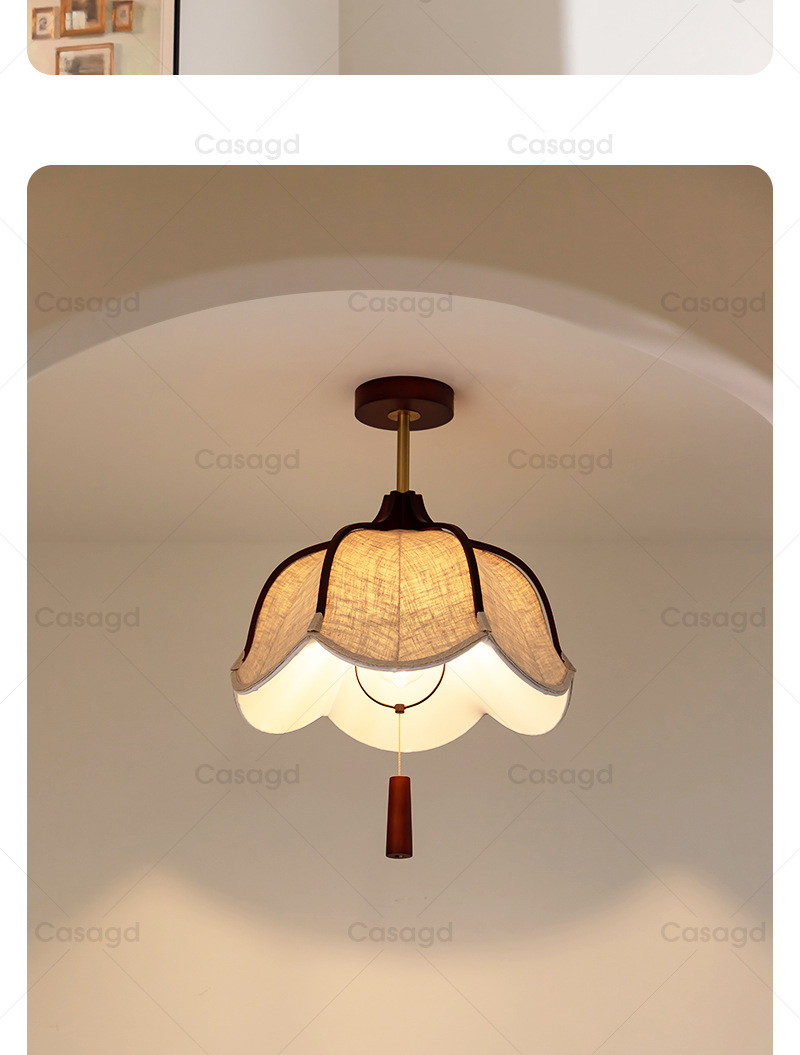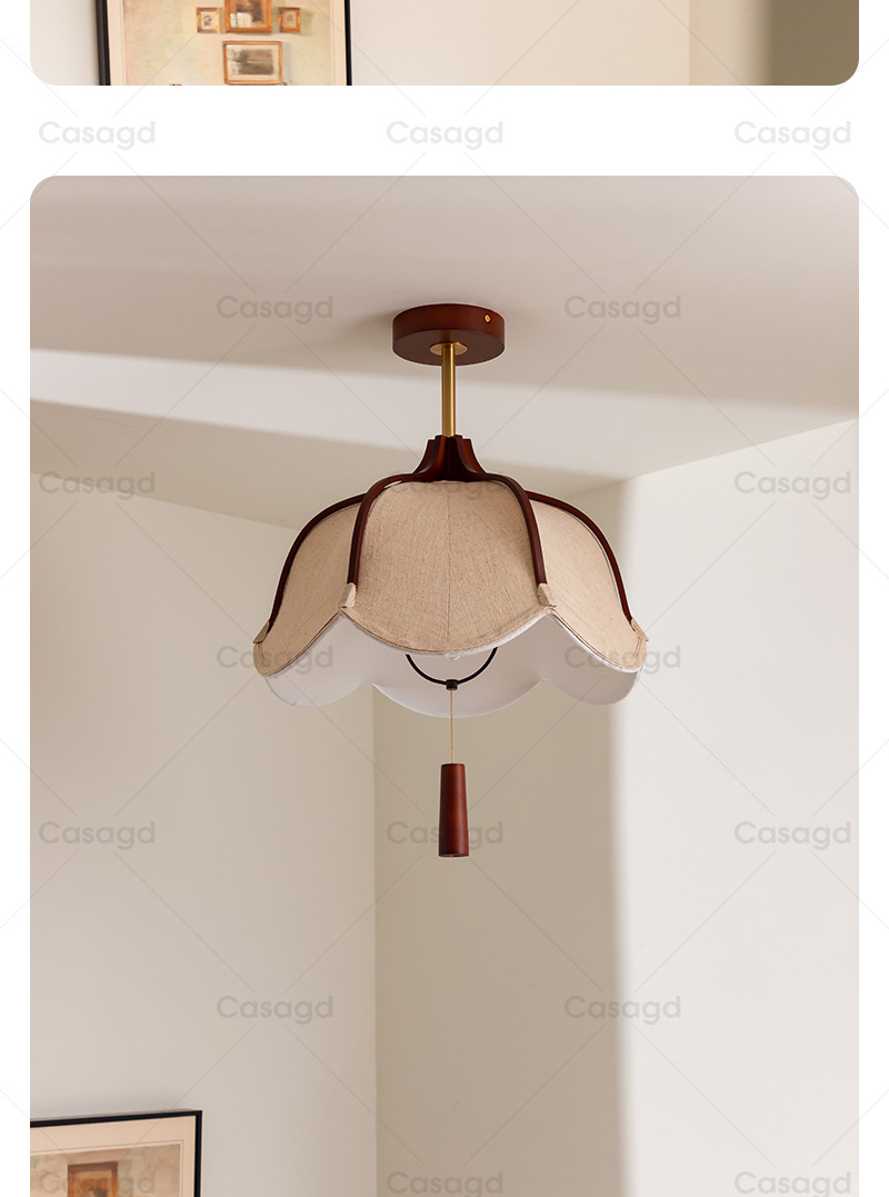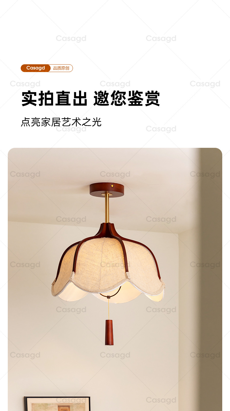 侘寂风复古主卧室吸顶灯实木中古布艺吊灯茶室餐桌餐厅灯具casagd