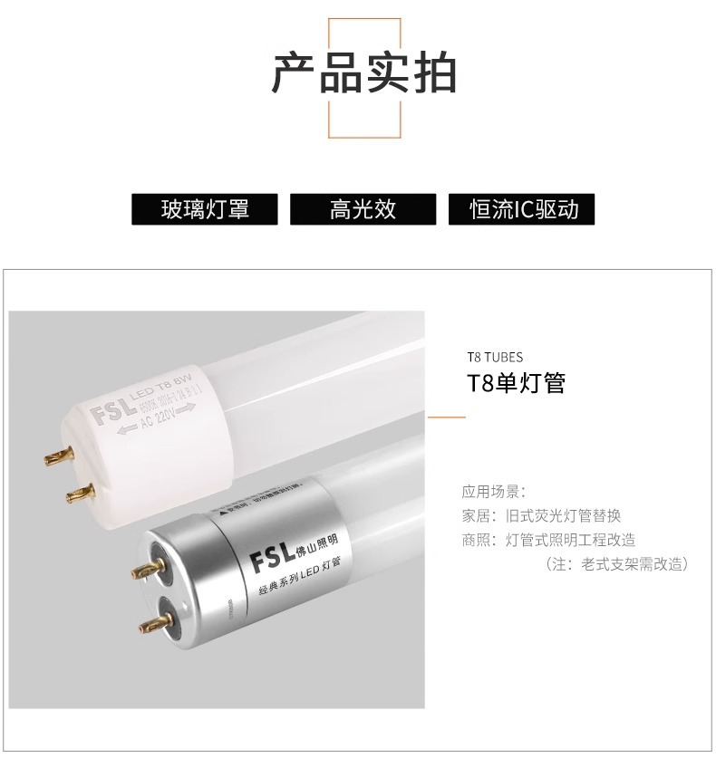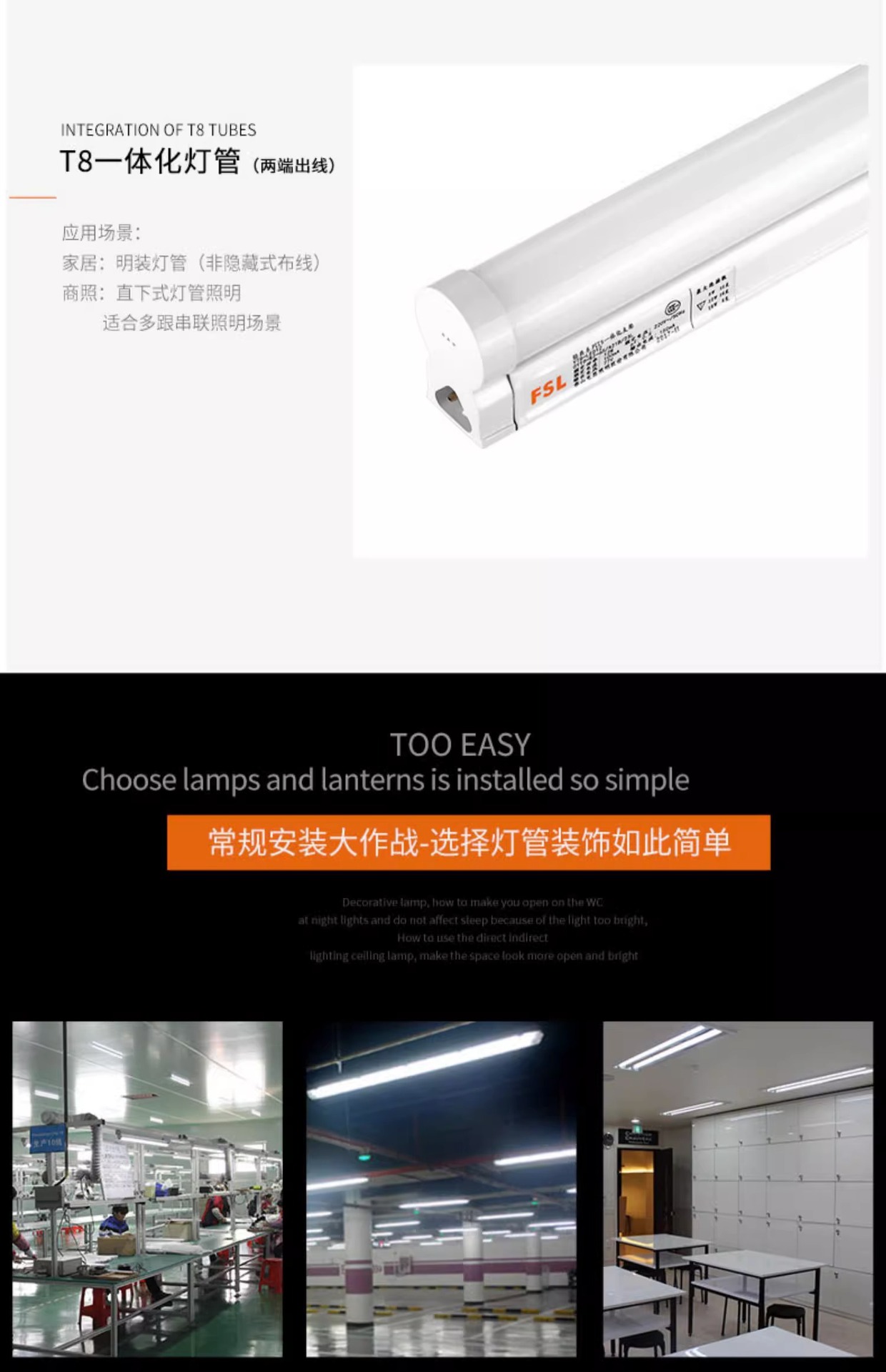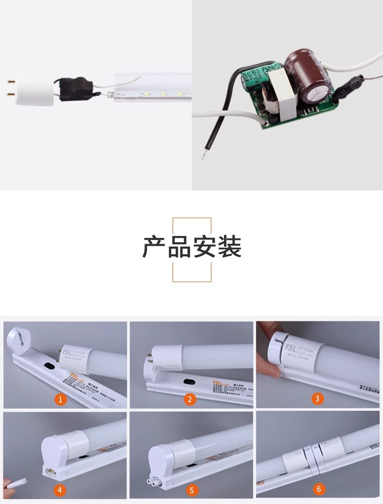 FSL佛山照明t8led灯管一体化长条家用支架灯超亮节能1.2米日光管