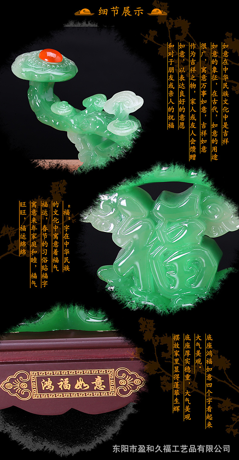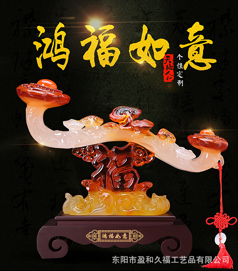 鸿福如意中式摆件创意树脂工艺品客厅办公室家居装饰摆设商务礼品