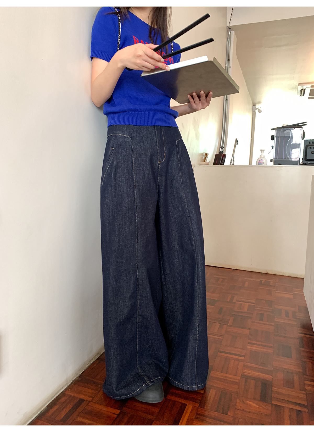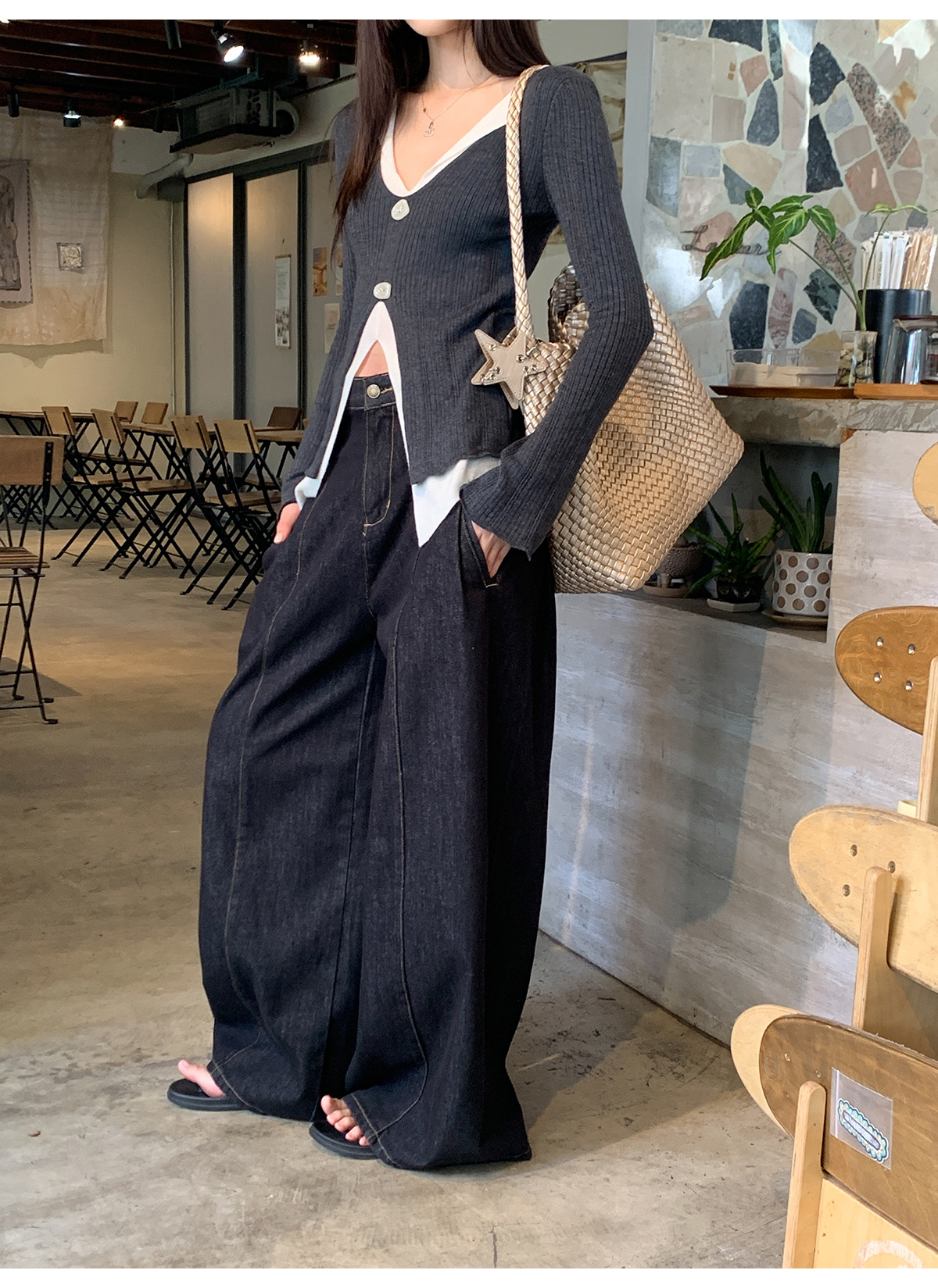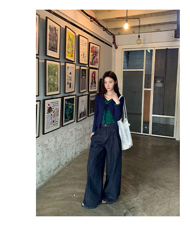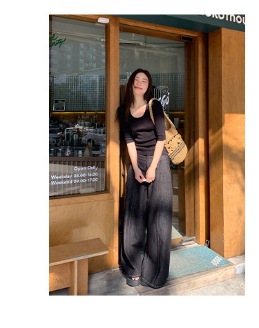 高腰阔腿牛仔裤女夏季新款设计感宽松显瘦拖地休闲长裤