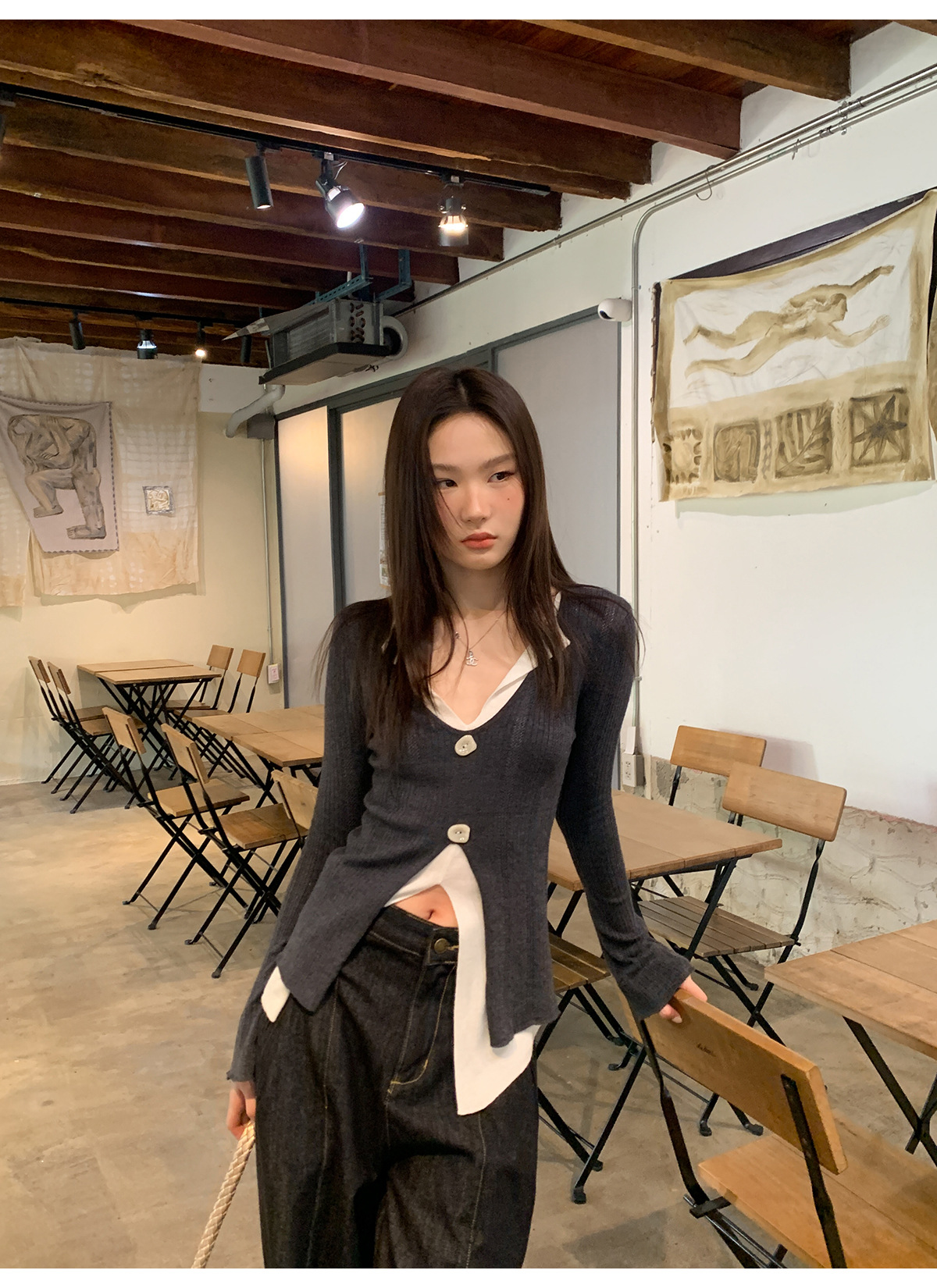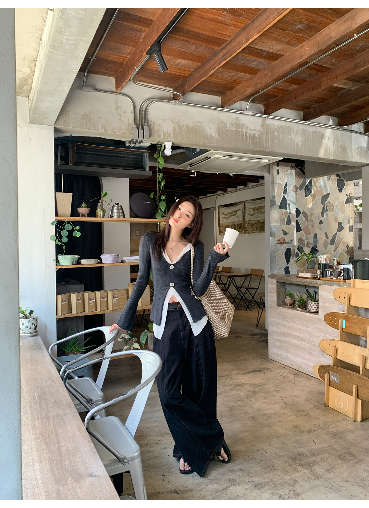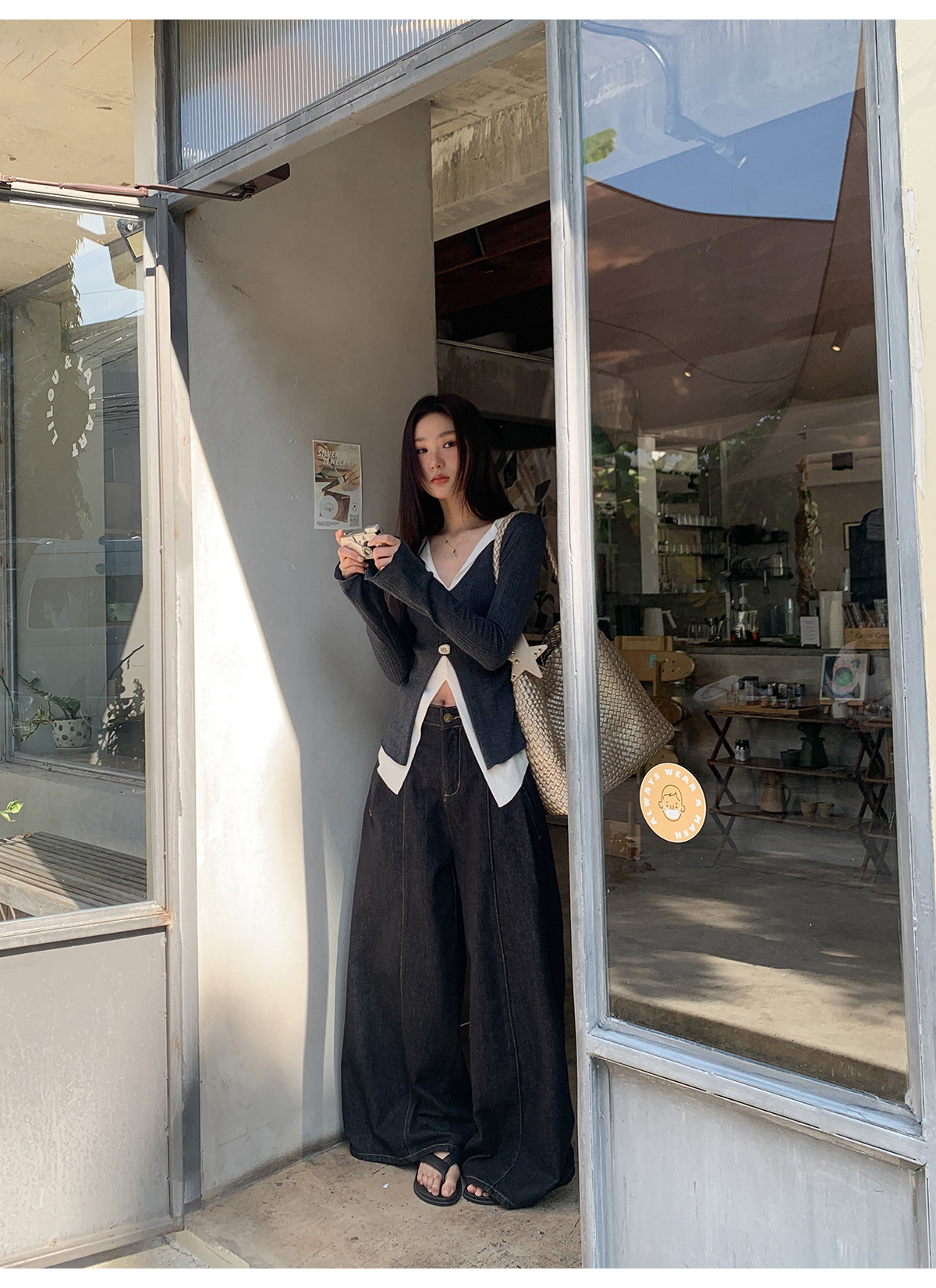高腰阔腿牛仔裤女夏季新款设计感宽松显瘦拖地休闲长裤
