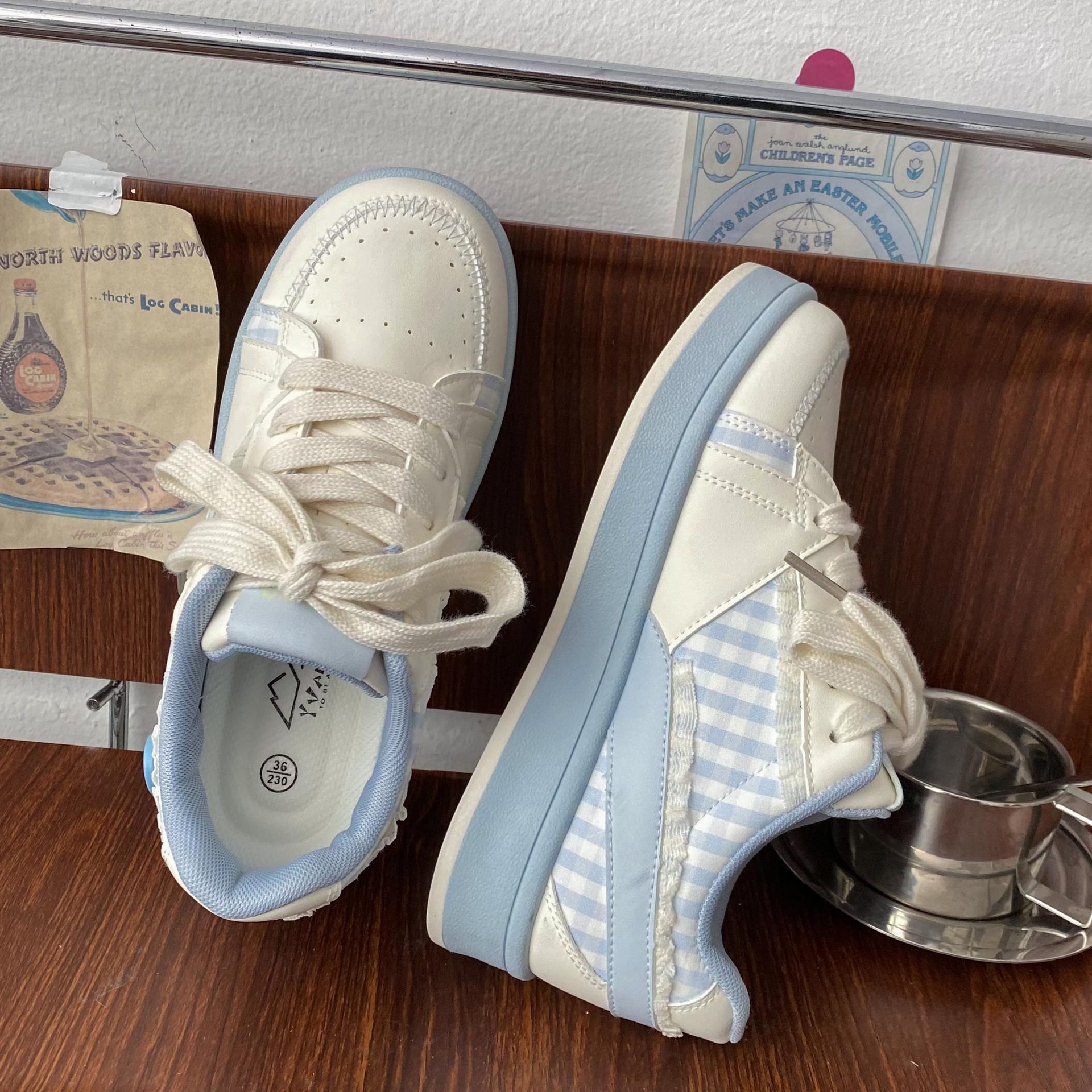 2025春夏季低帮拼色韩版帆布女原宿透气港风街拍潮流小白鞋N2307
