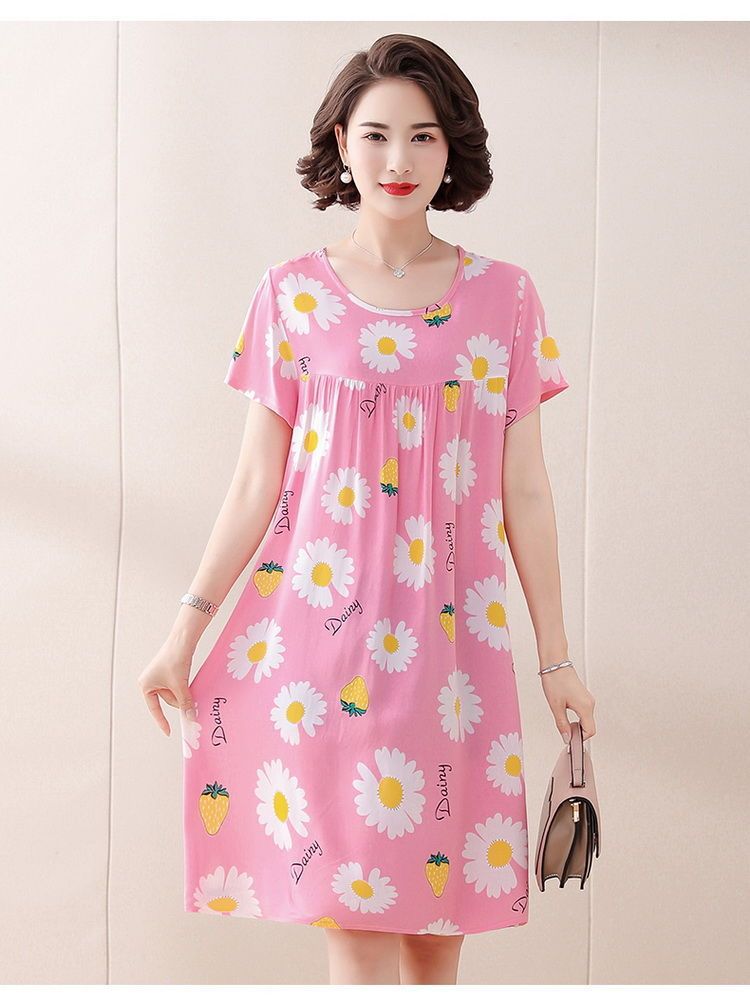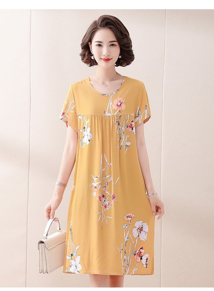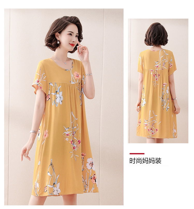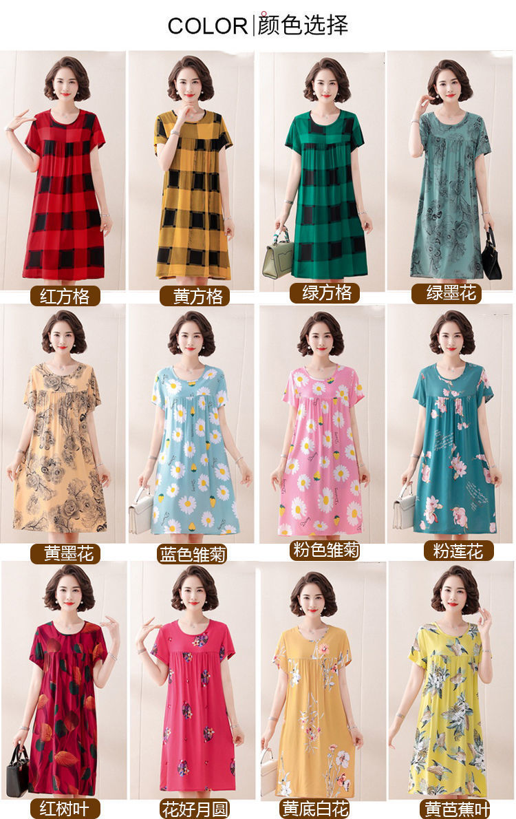 中老年棉绸睡裙女夏季睡衣人造棉连衣裙子中长款大码家居服妈妈装