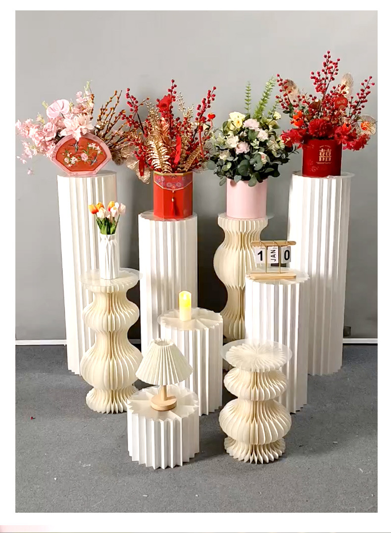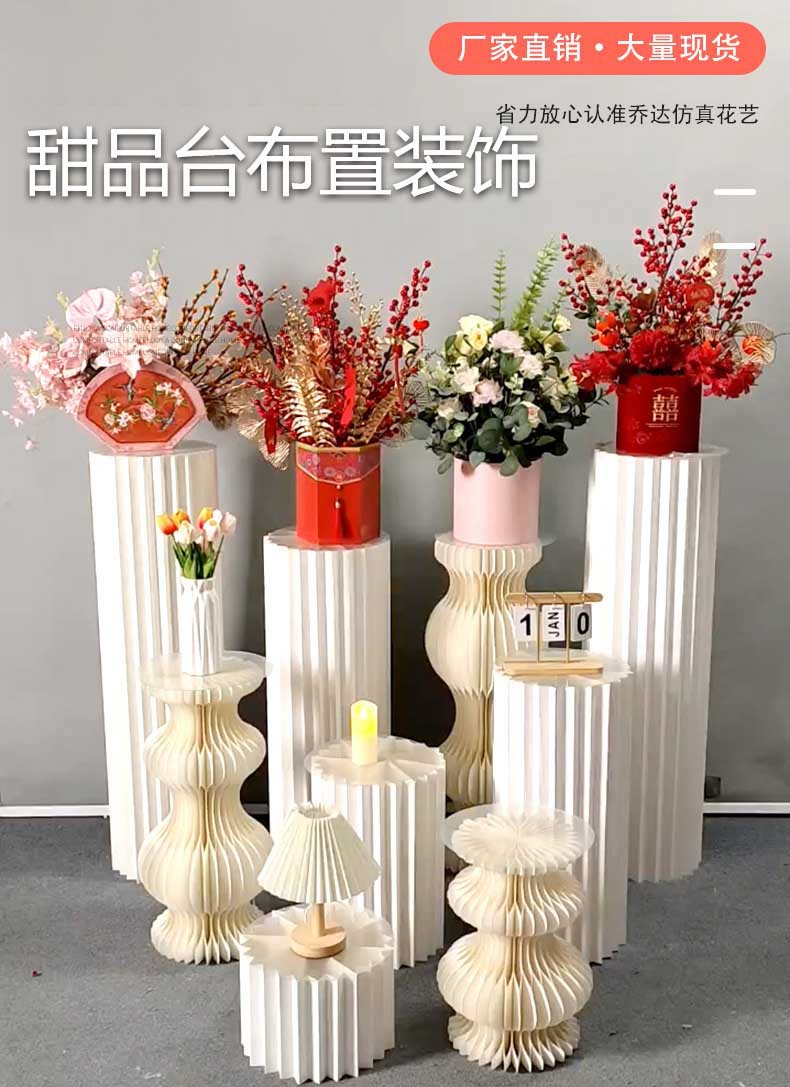罗马柱摆件婚庆布置道具婚礼折纸甜品台路引折叠圆柱立柱展示台