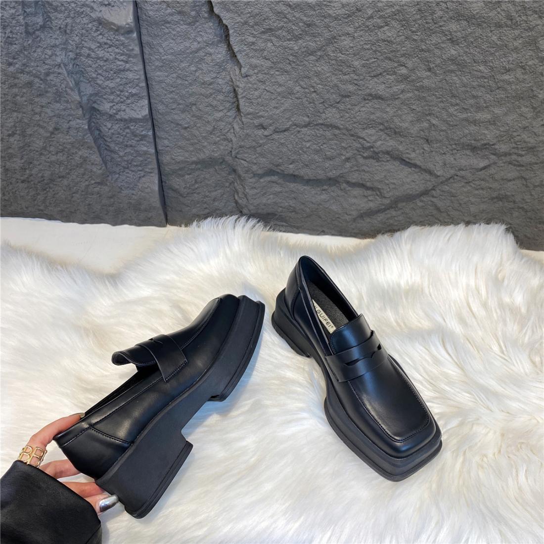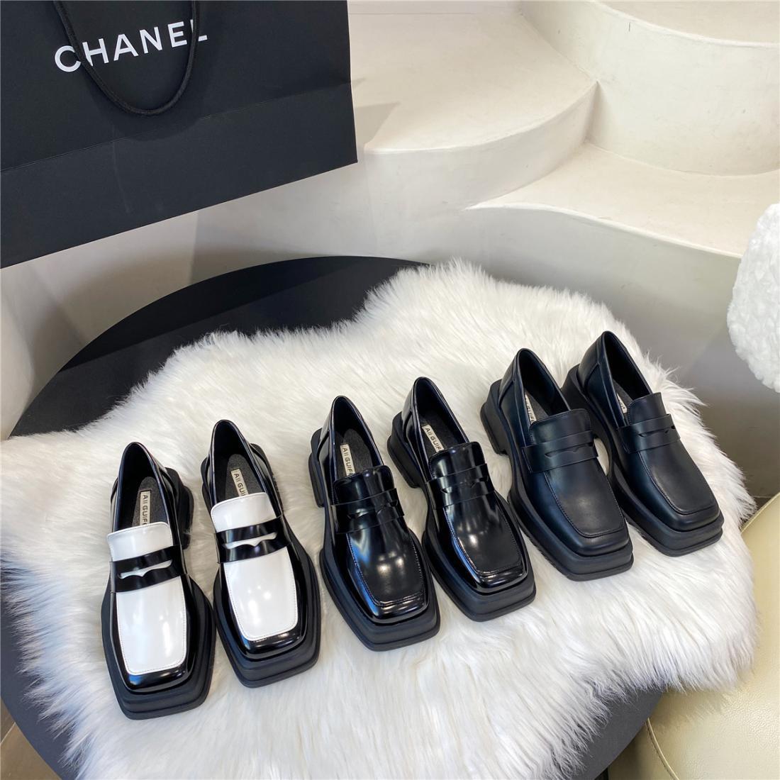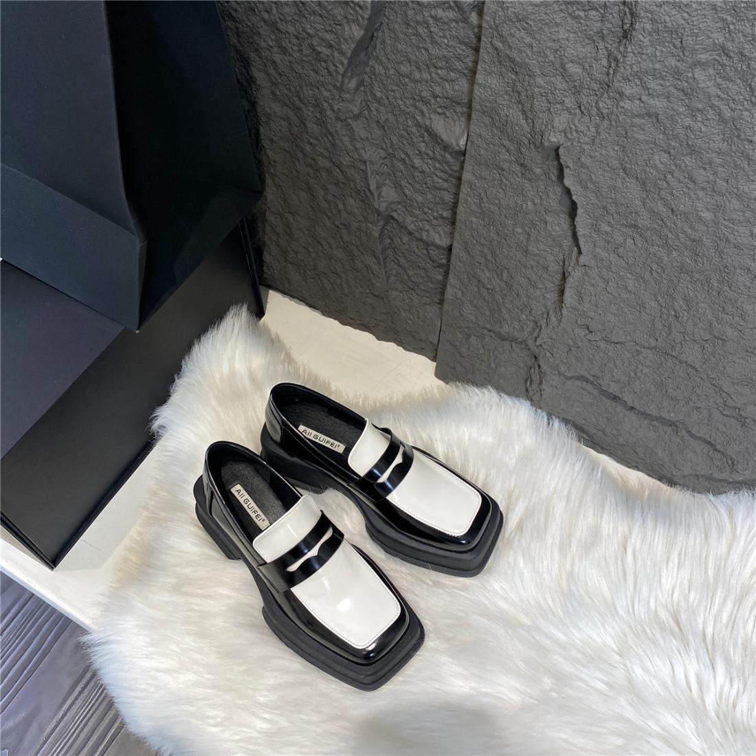 厚底方头英伦风小皮鞋女2025年春季拼色小众日系漆皮乐福女单鞋子