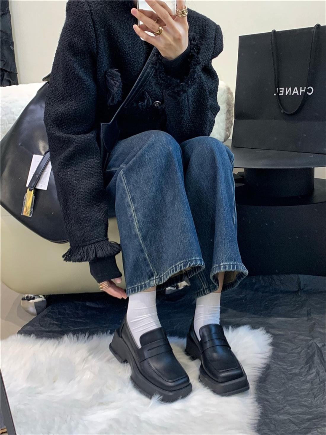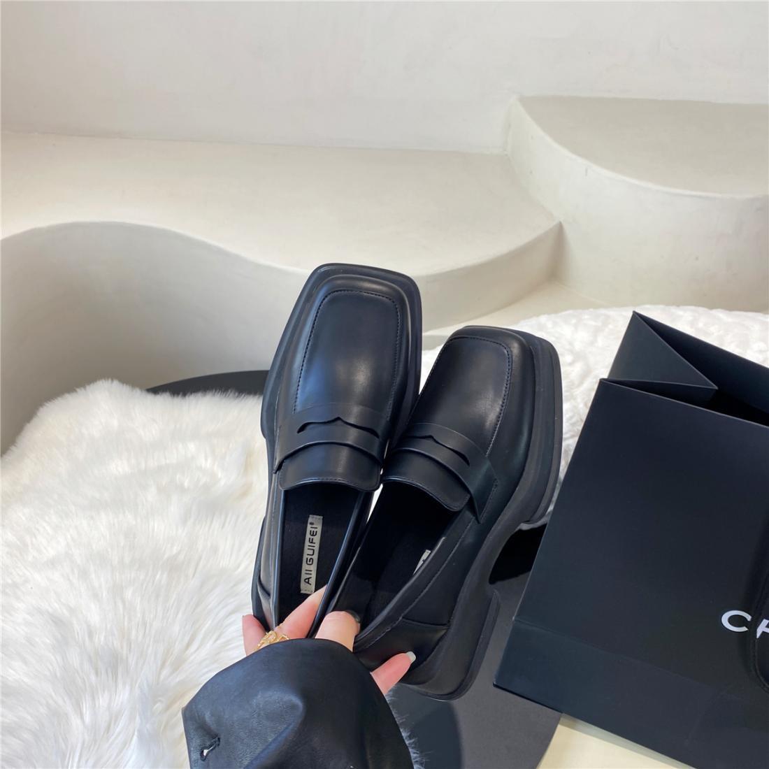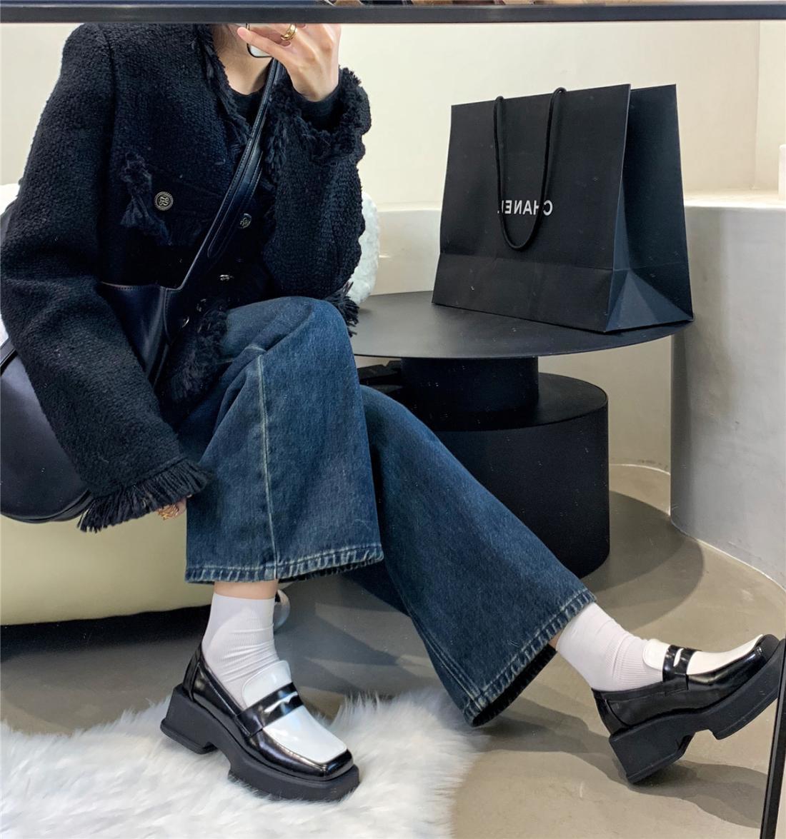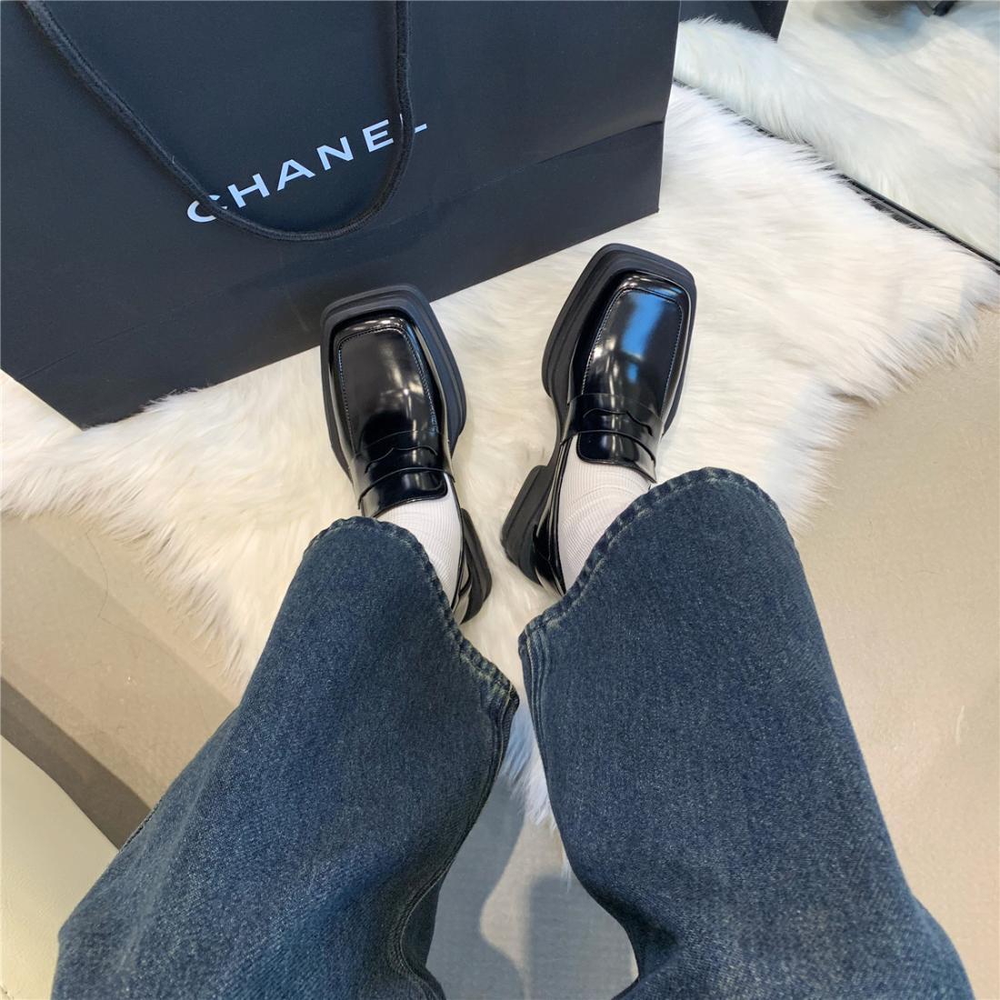 厚底方头英伦风小皮鞋女2025年春季拼色小众日系漆皮乐福女单鞋子
