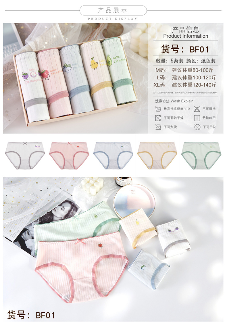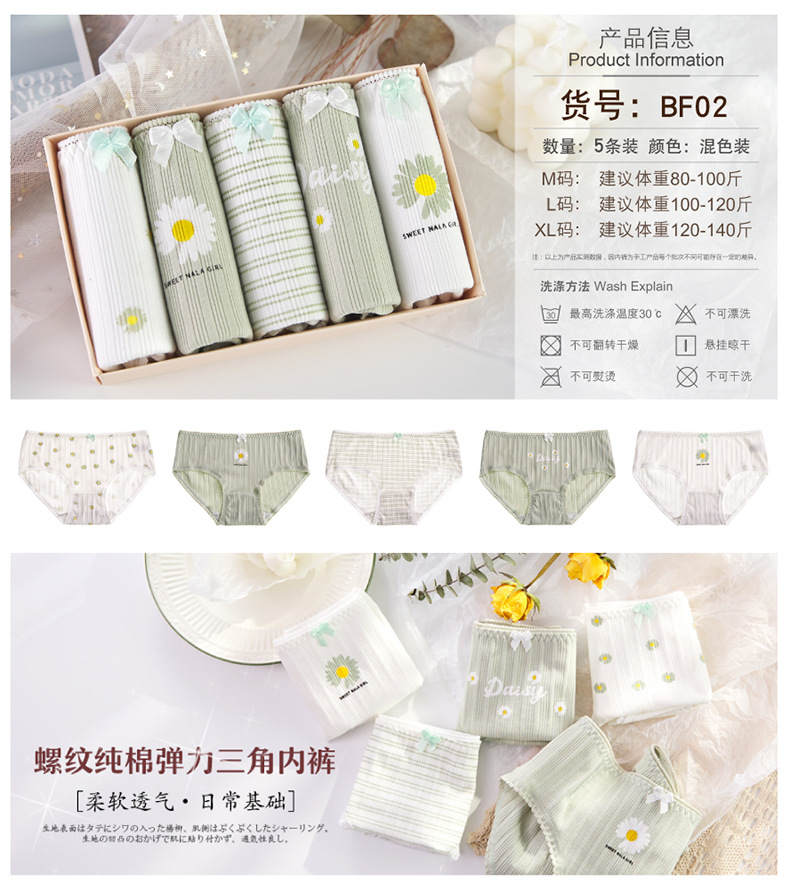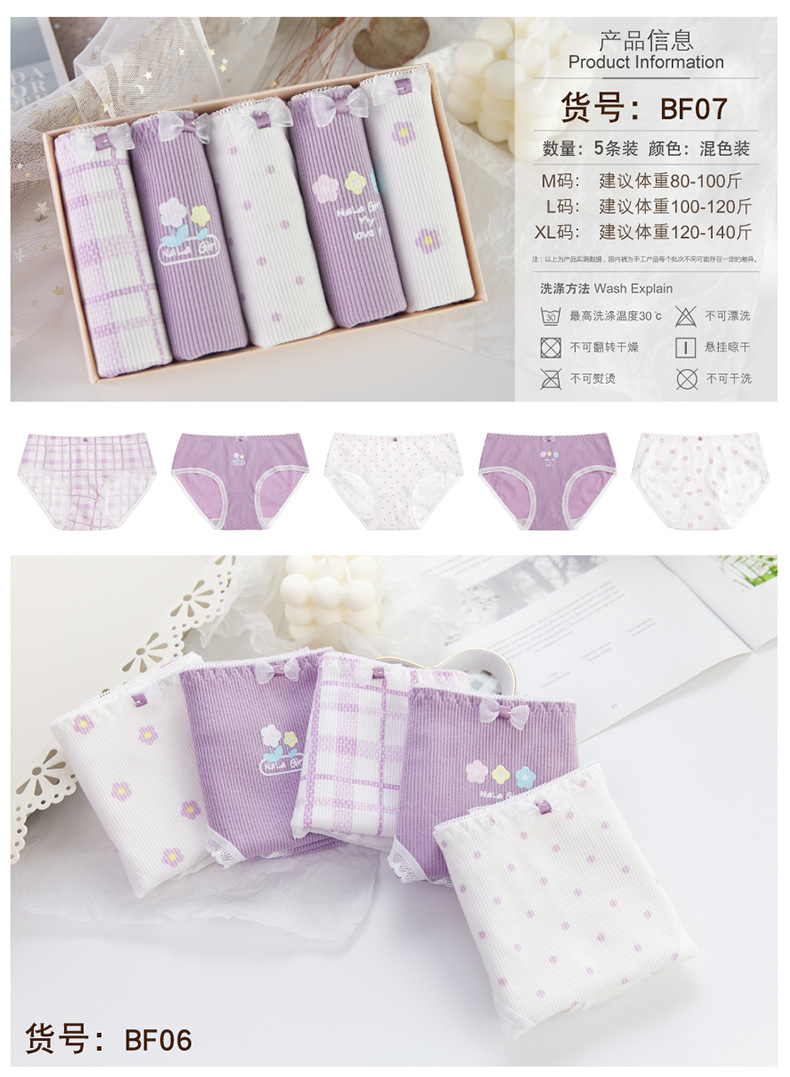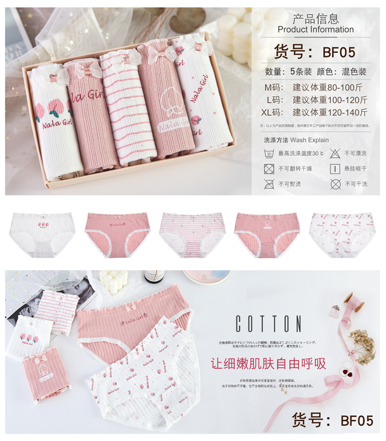 BF纯棉女士内裤礼盒装全棉面料可爱日系少女三角内裤女式5条组合