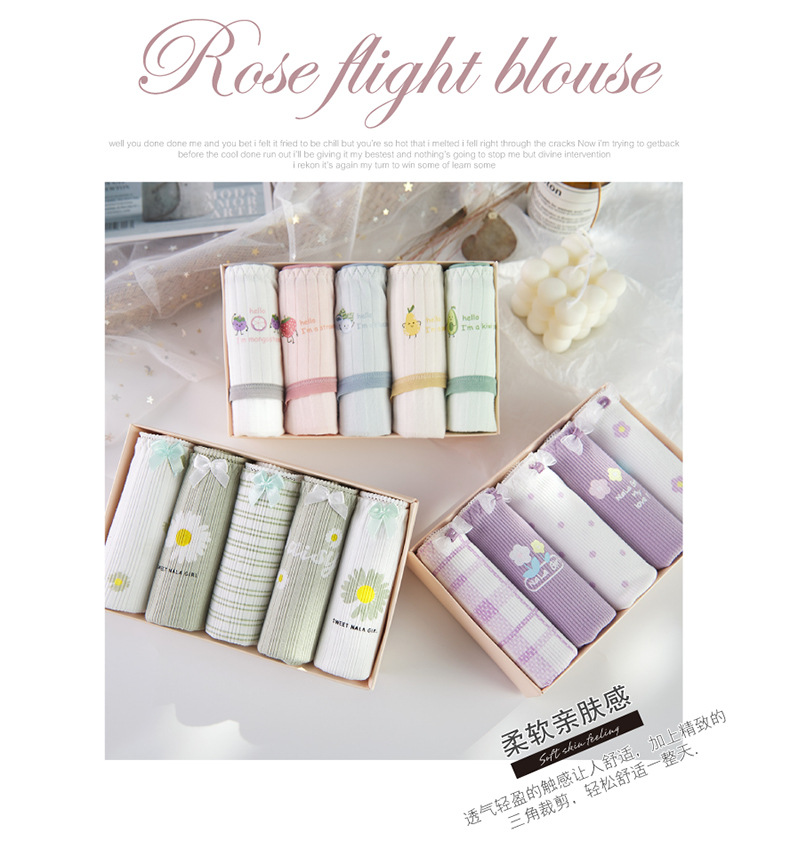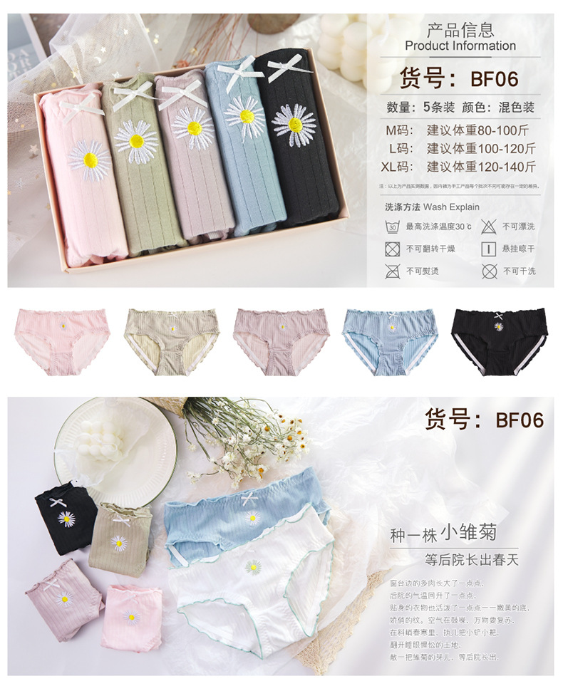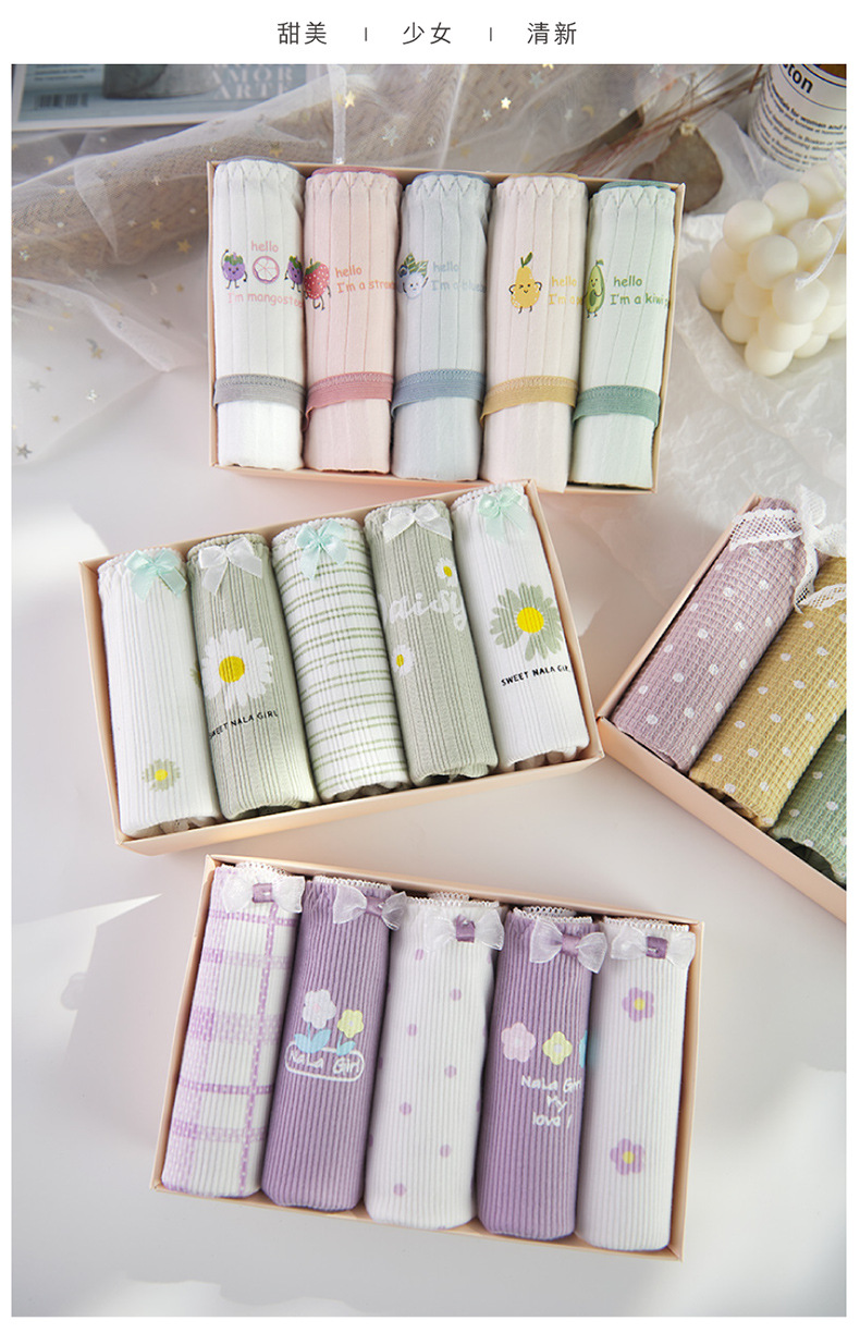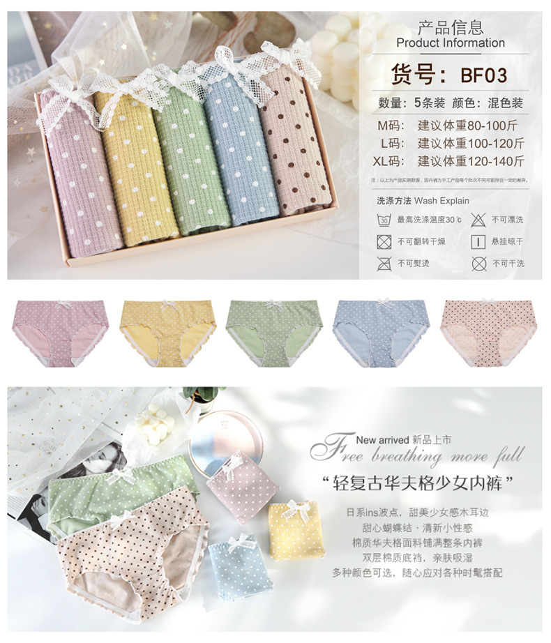 BF纯棉女士内裤礼盒装全棉面料可爱日系少女三角内裤女式5条组合