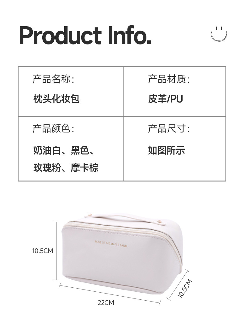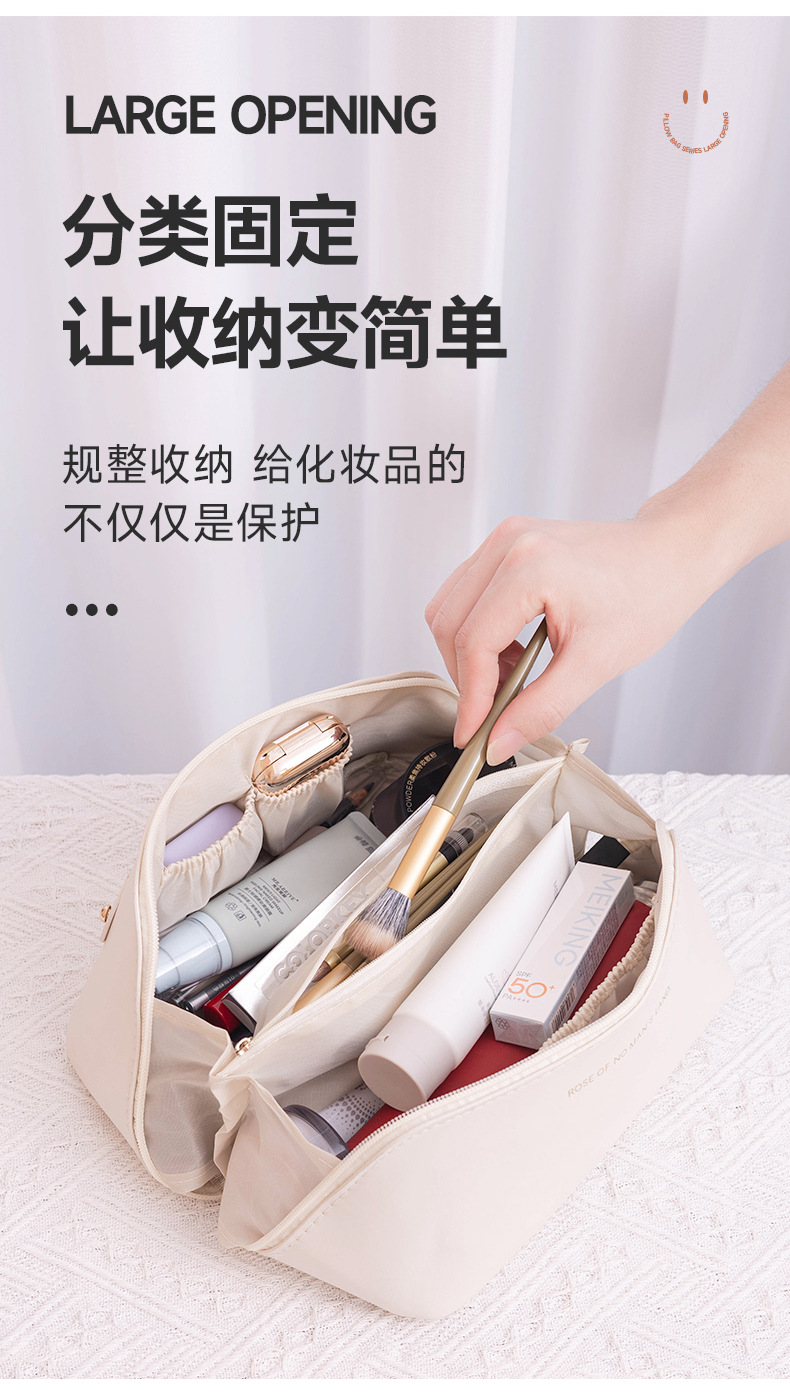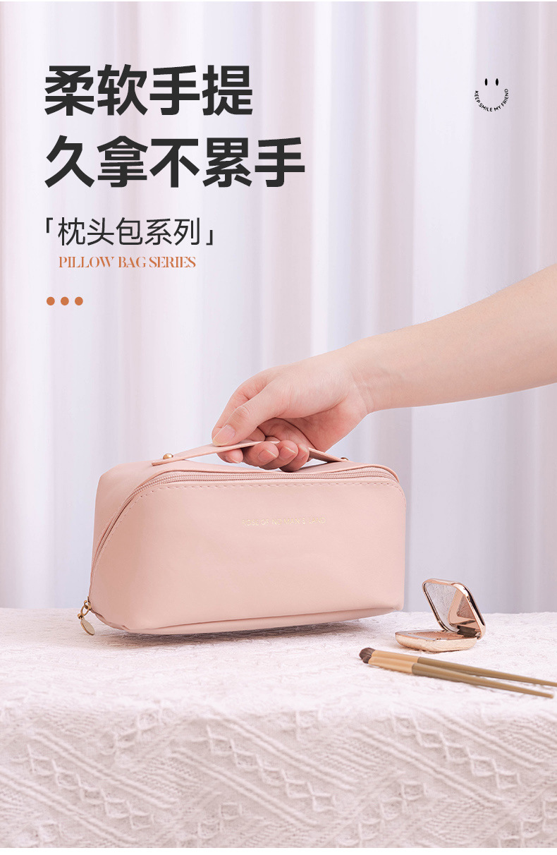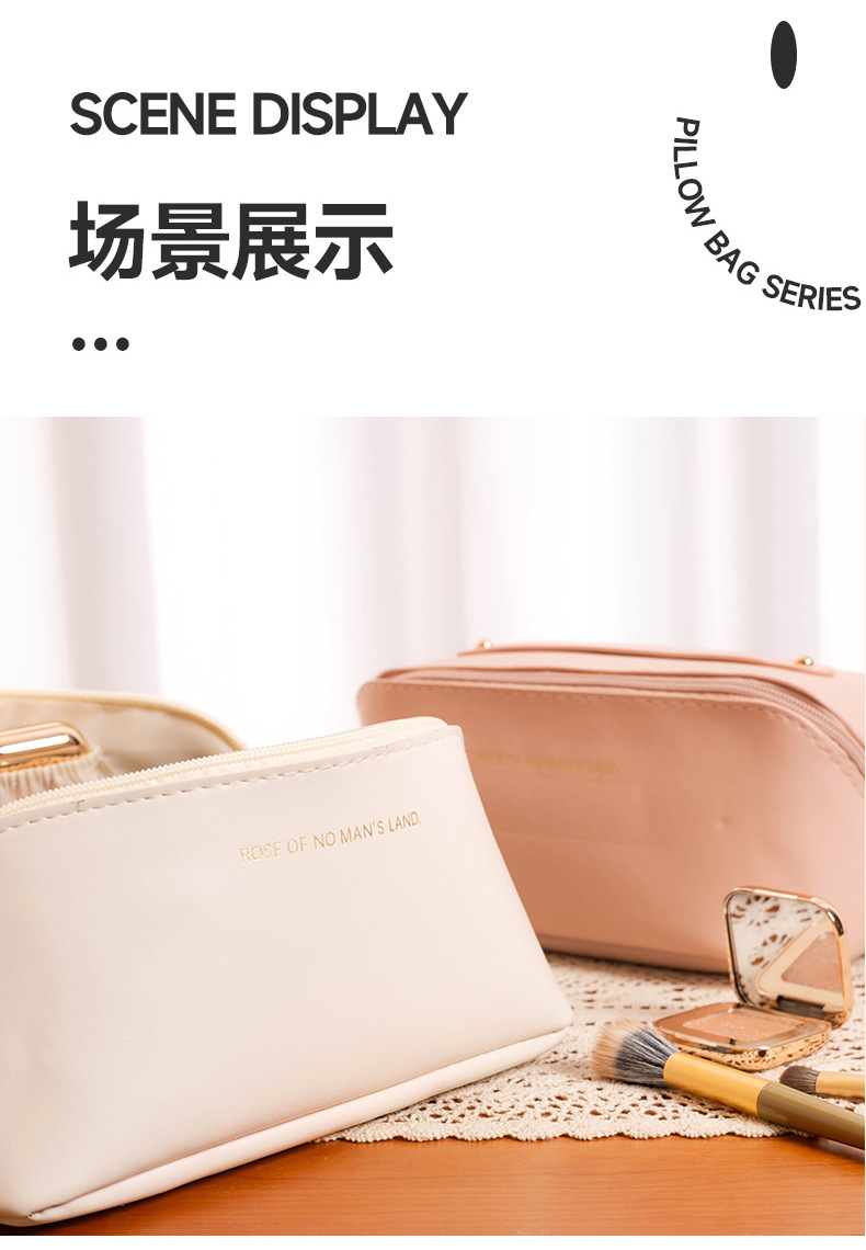 奶油色云朵化妆包PU旅行收纳枕头包大容量手提便携洗漱包INS风