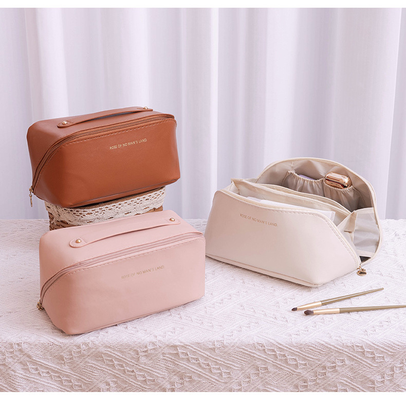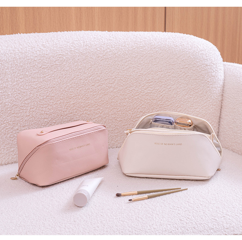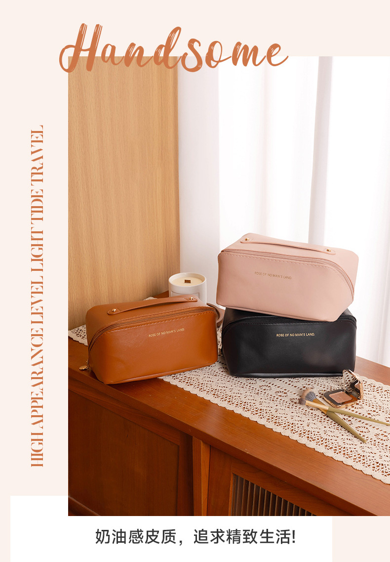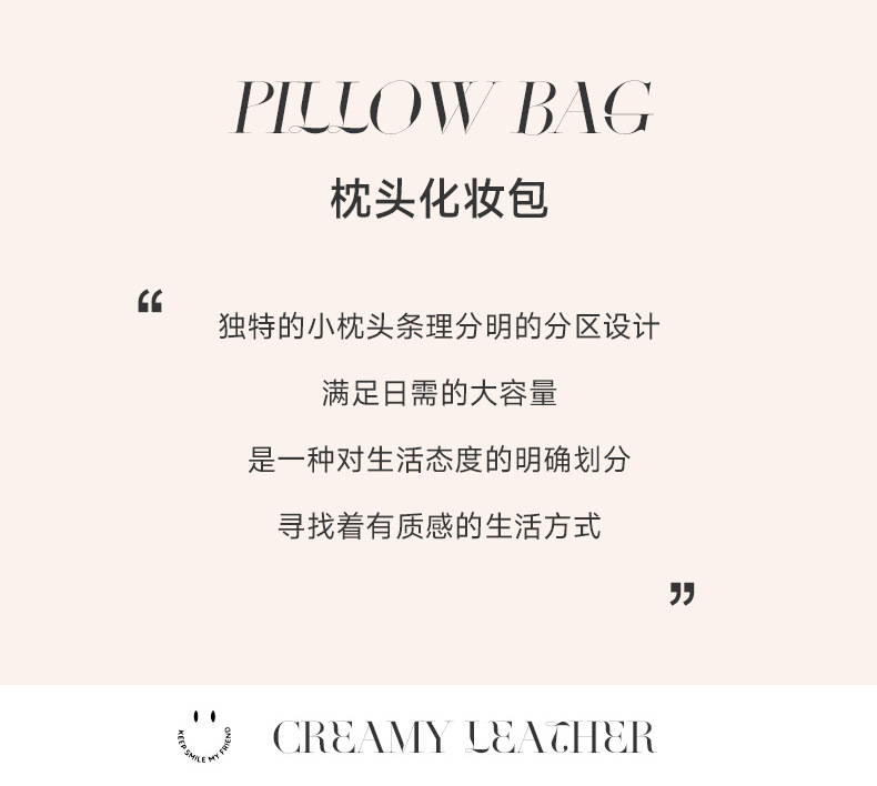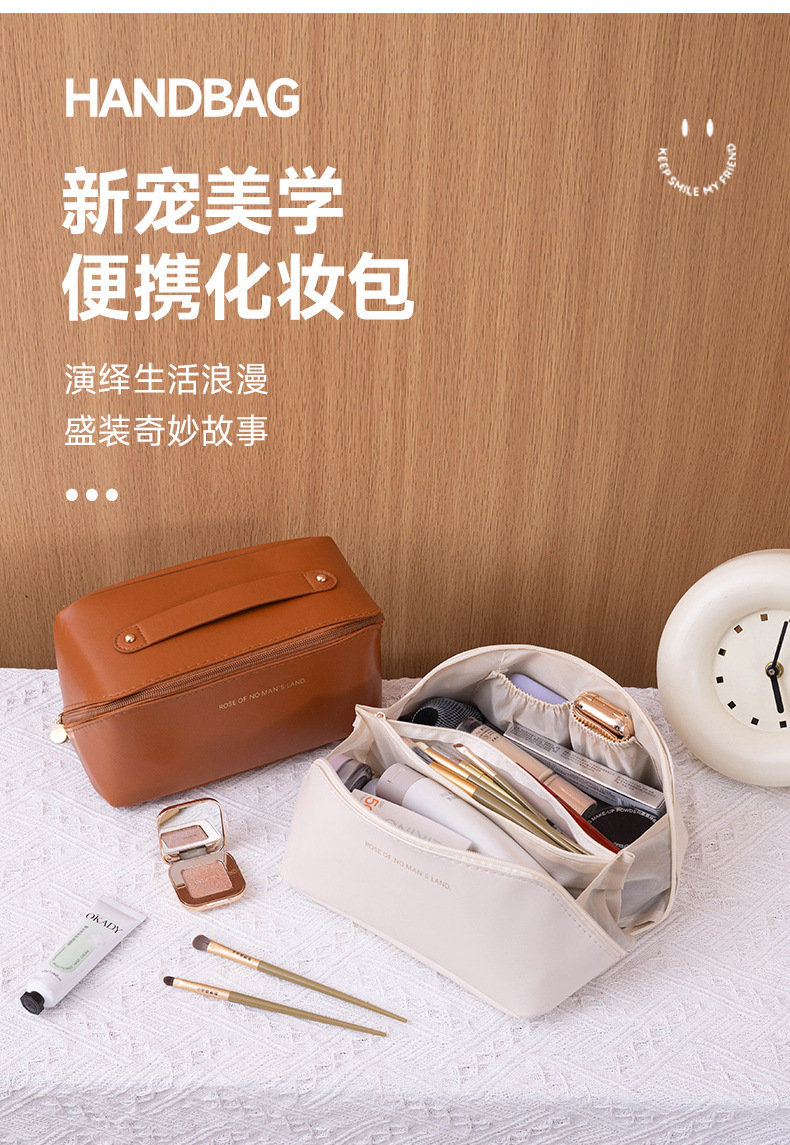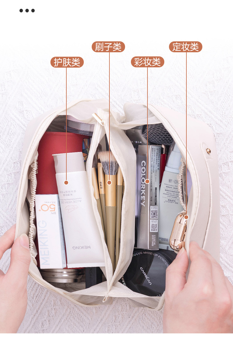奶油色云朵化妆包PU旅行收纳枕头包大容量手提便携洗漱包INS风