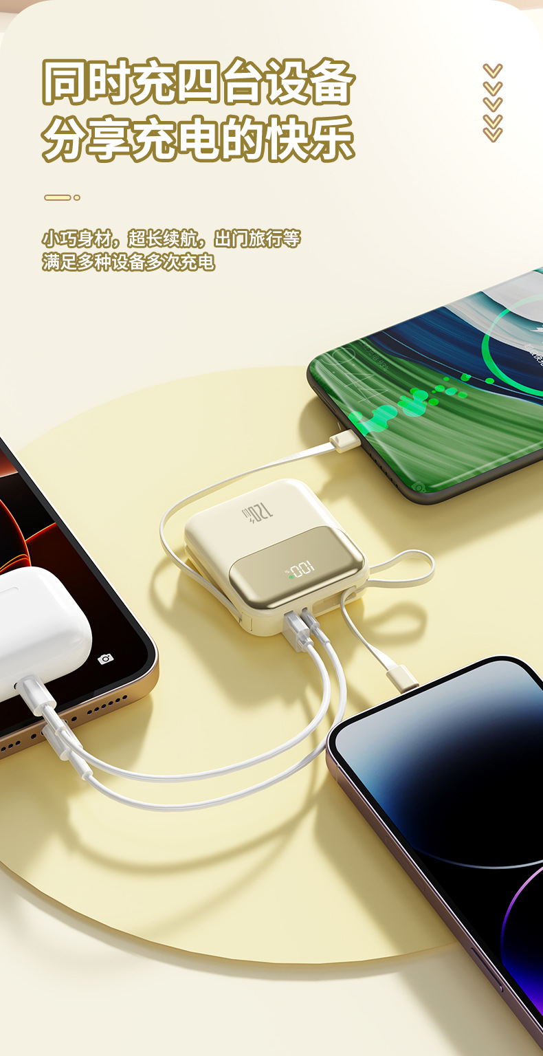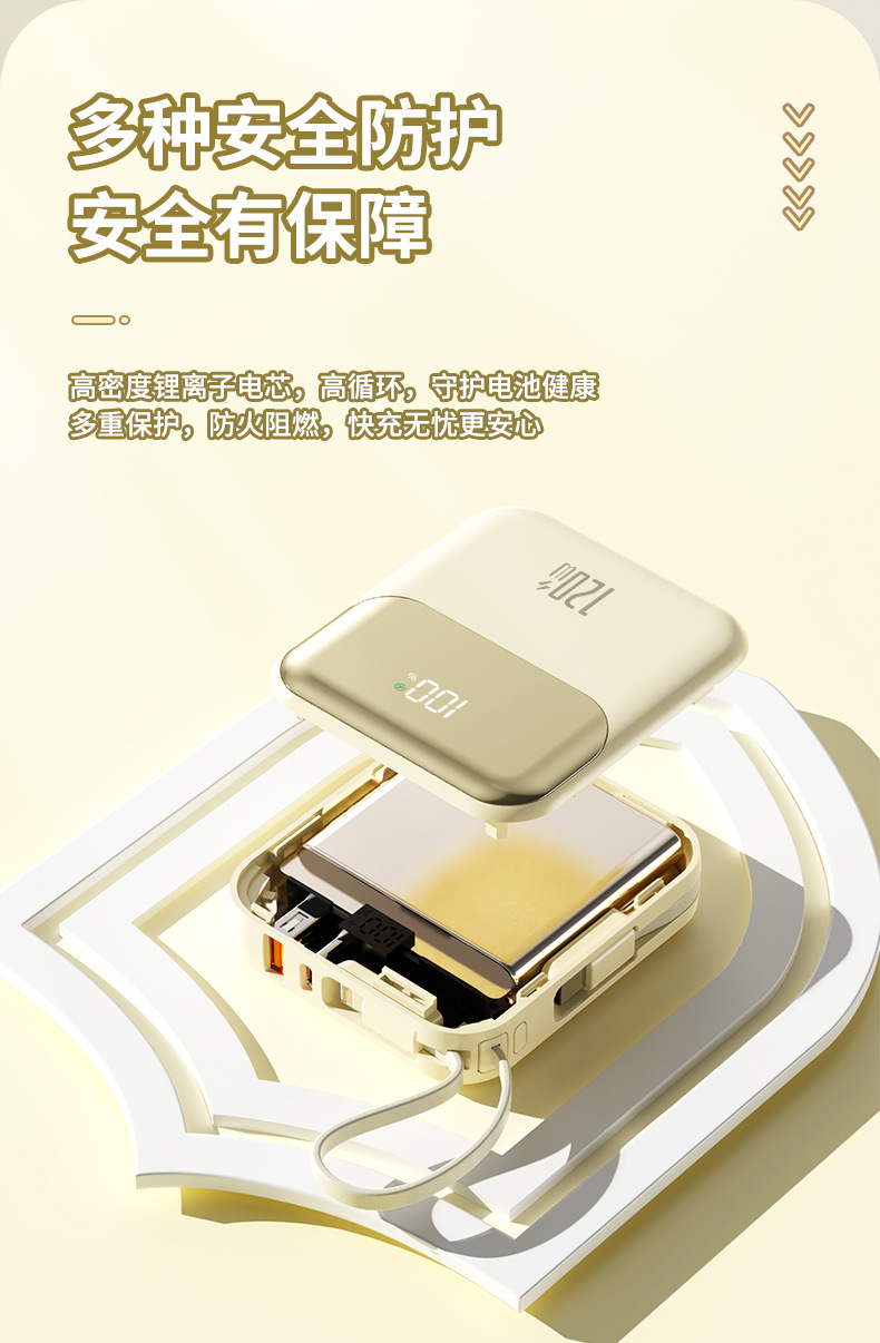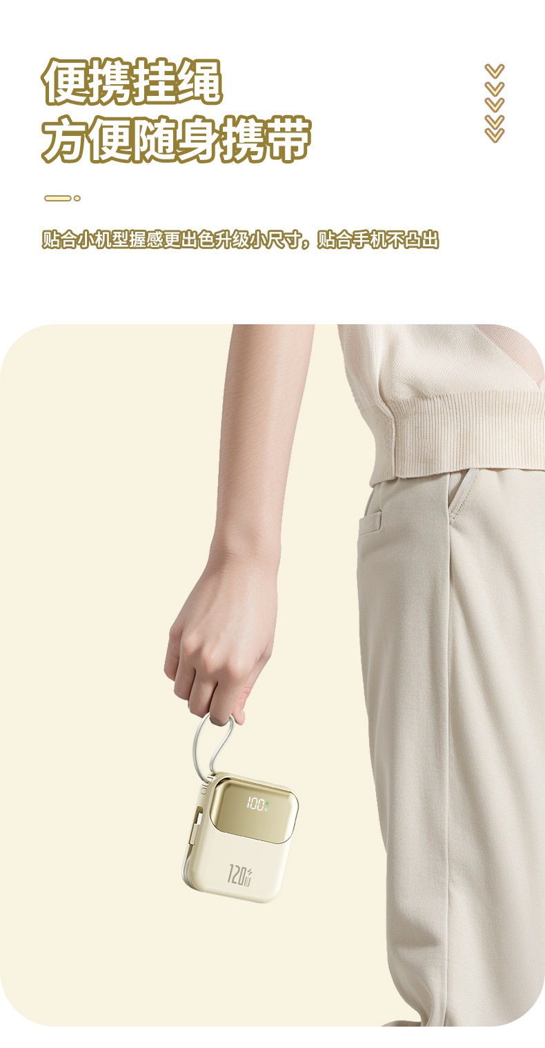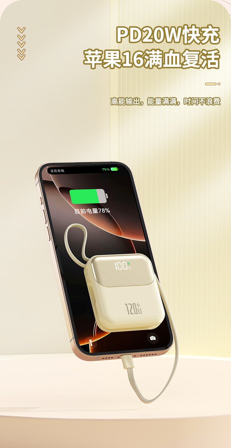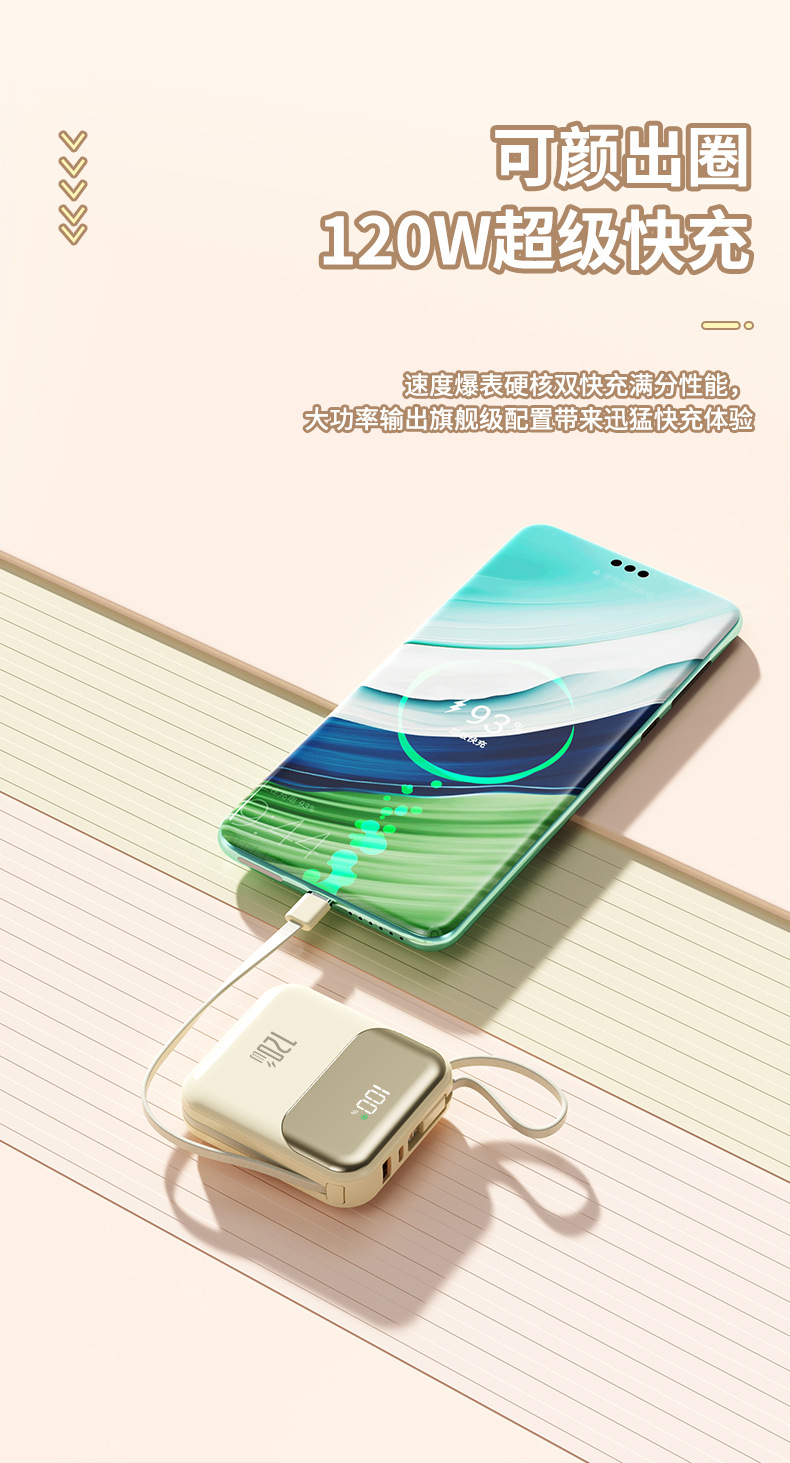 跨境新款迷你小巧自带线超级快充电宝20000毫安120W带线礼品LOGO