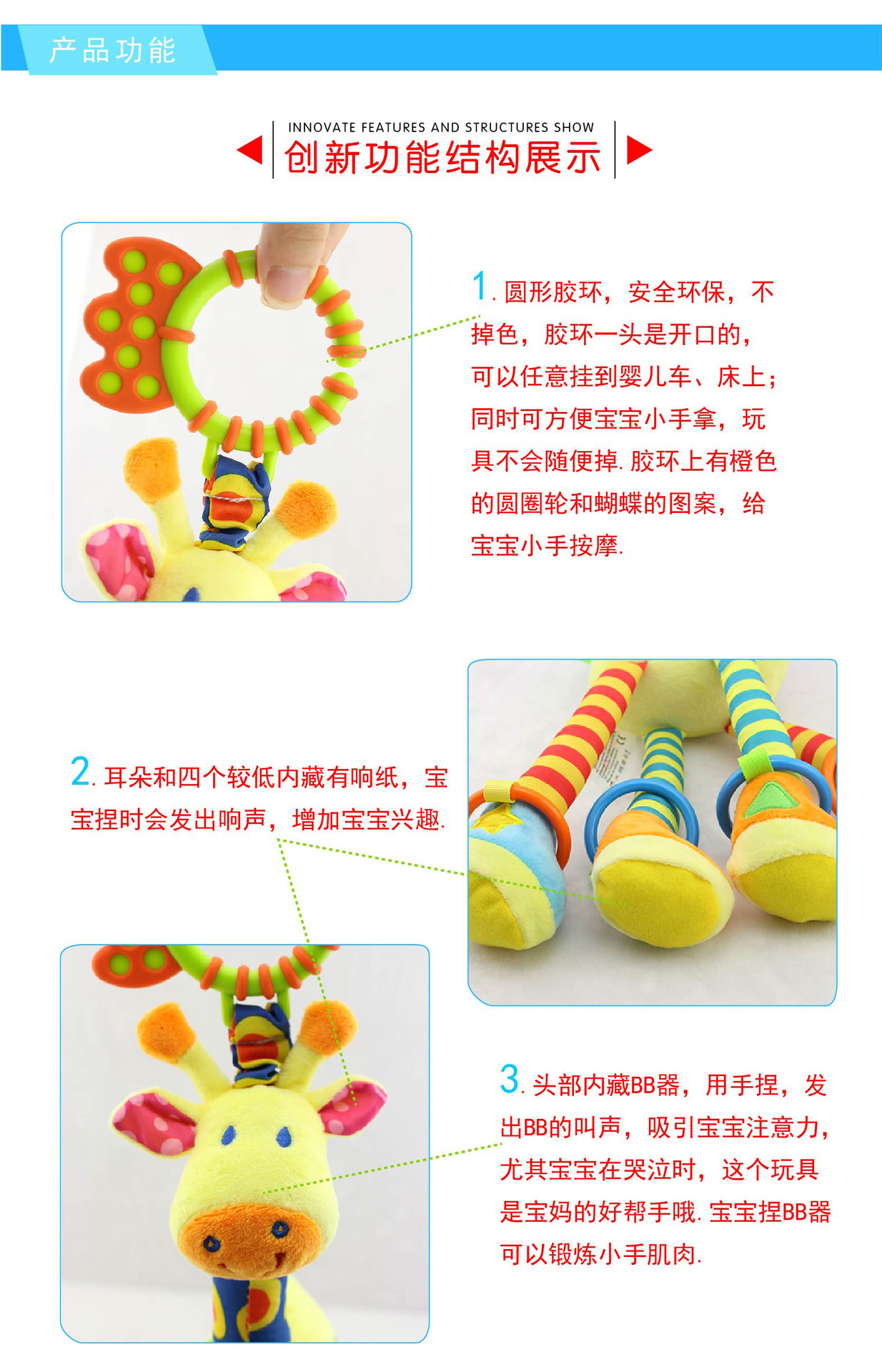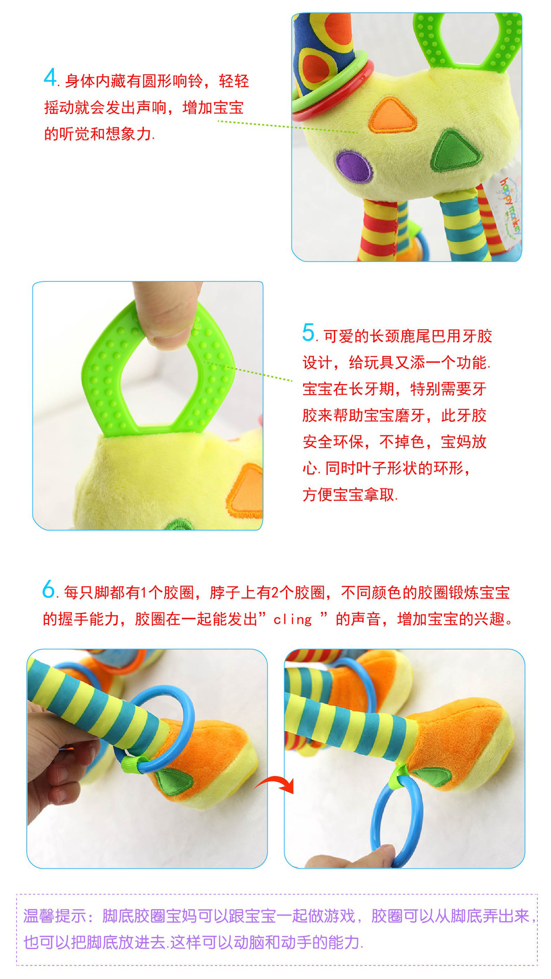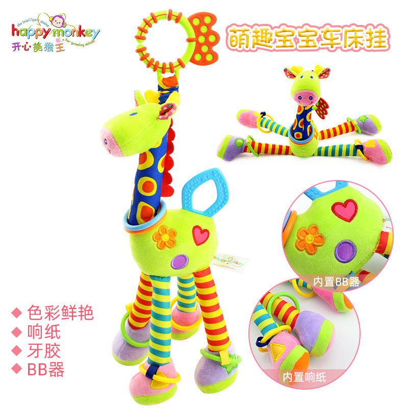 Happy monkey婴儿玩具推车摇铃挂件宝宝床挂床铃长颈鹿新生儿玩具