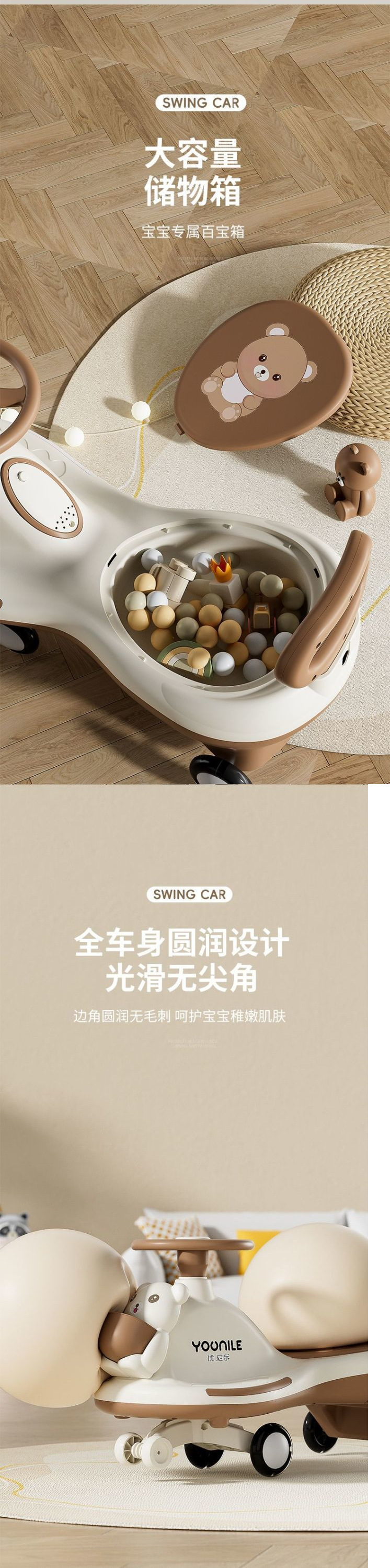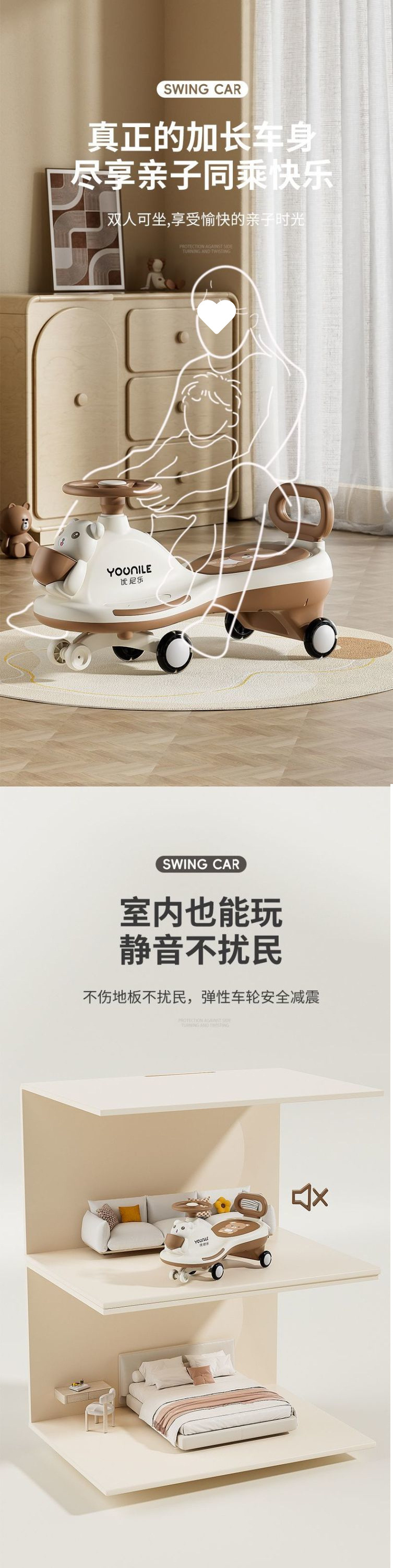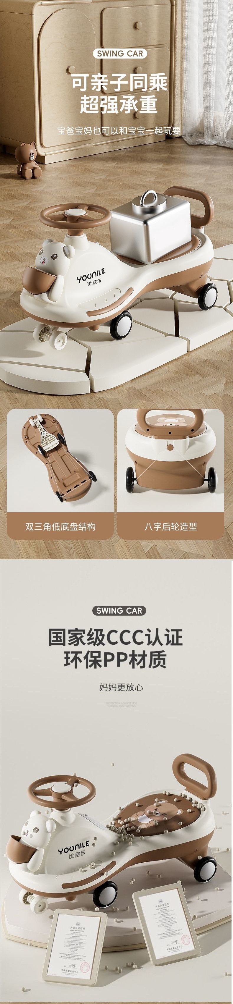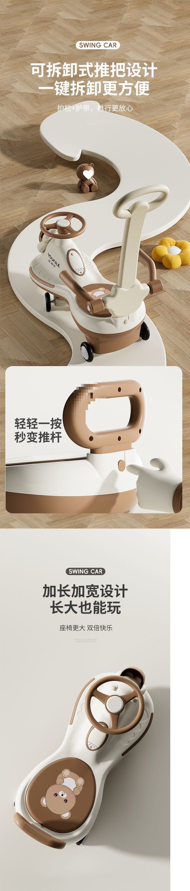 三合一儿童扭扭车可手推防侧翻童车1-6岁双人溜溜推杆摇摆车