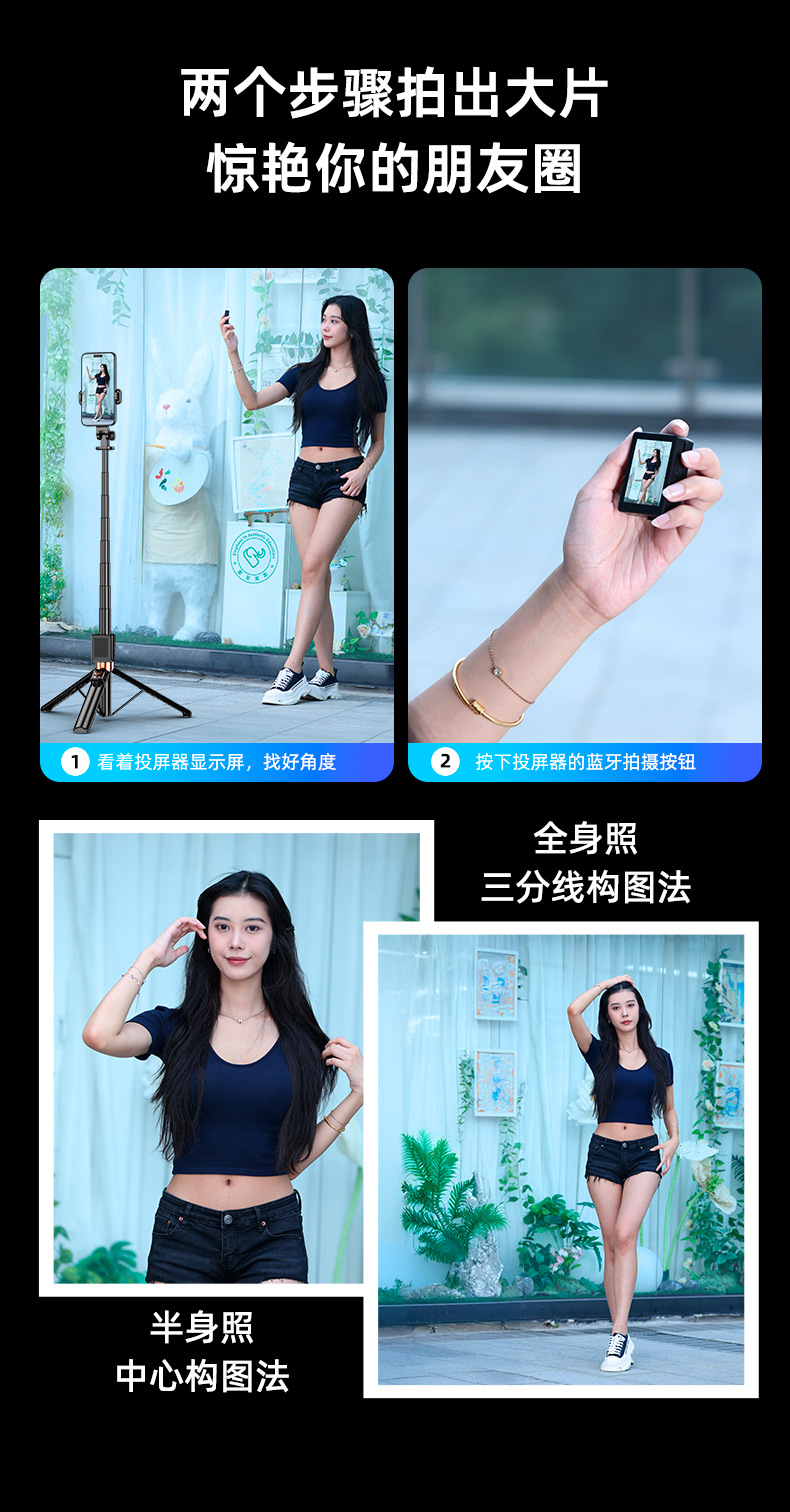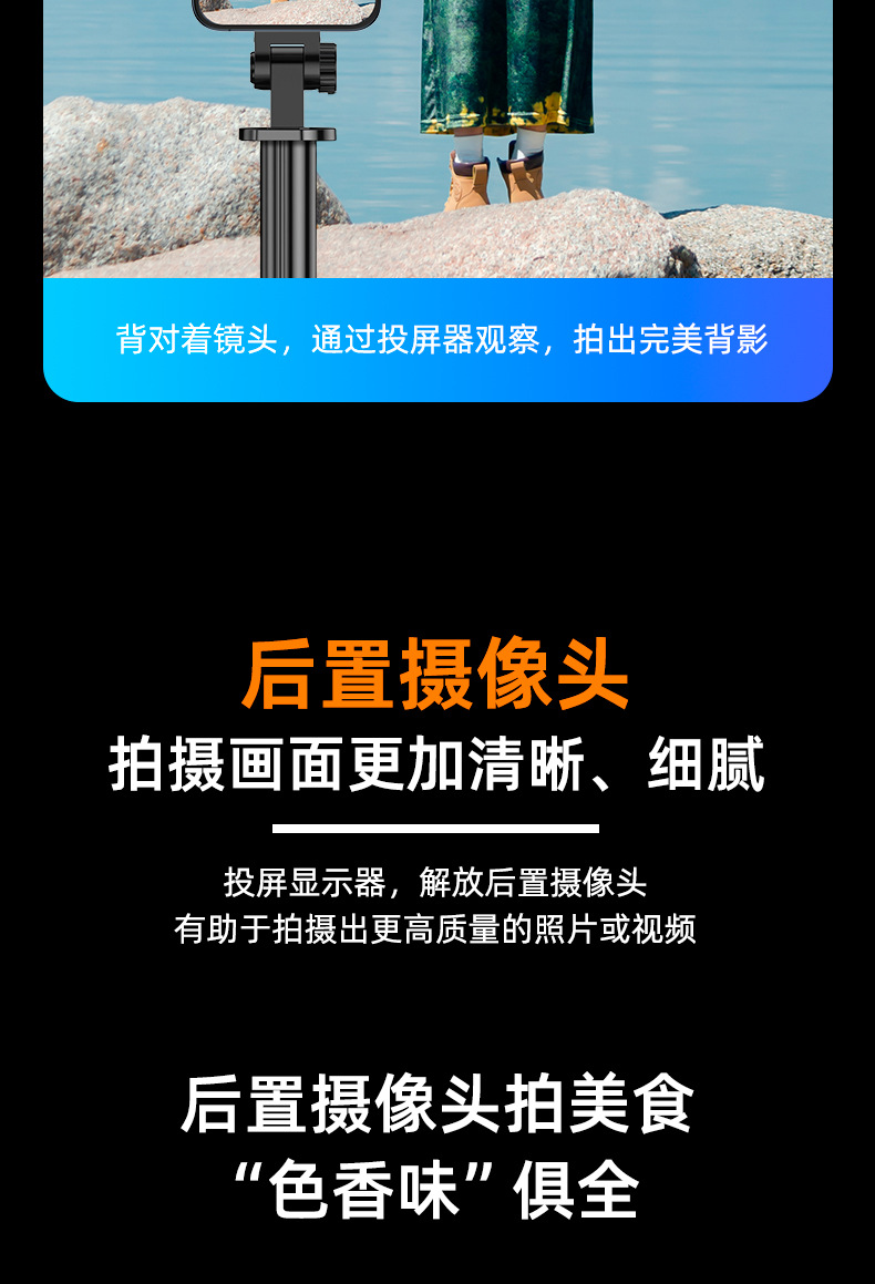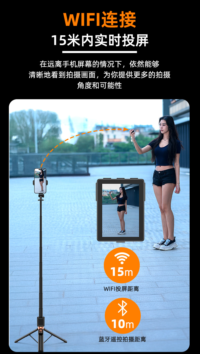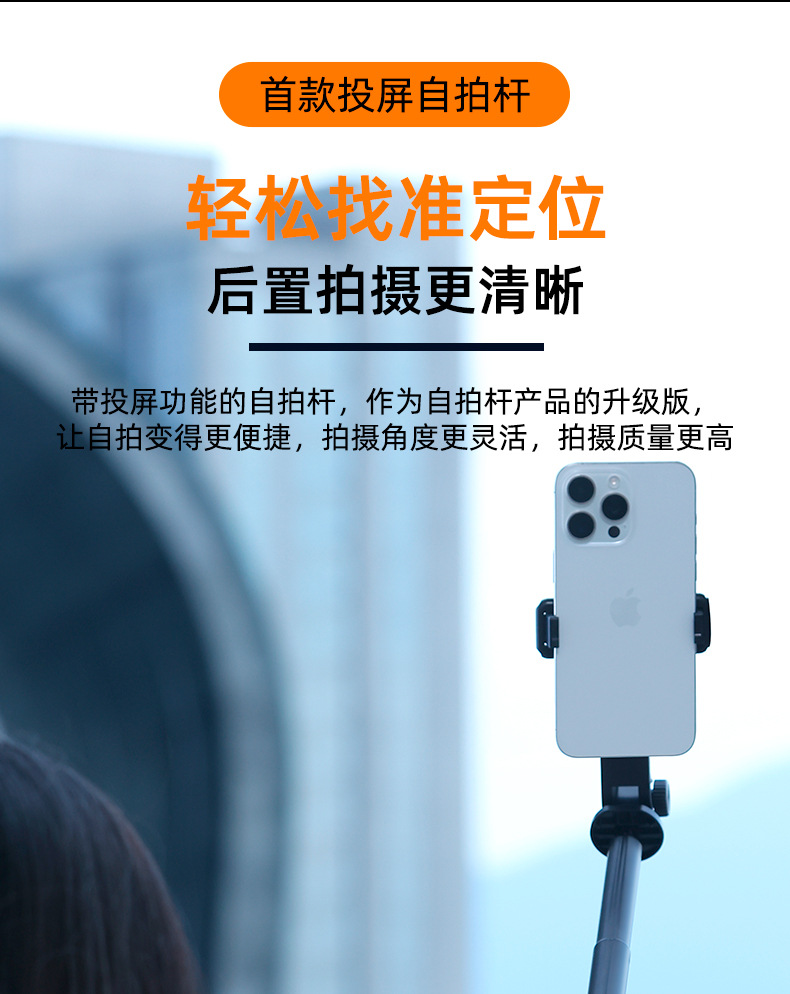 2025新款投屏自拍杆WIFI投屏双蓝牙遥控合金伸缩杆拍摄角度灵活
