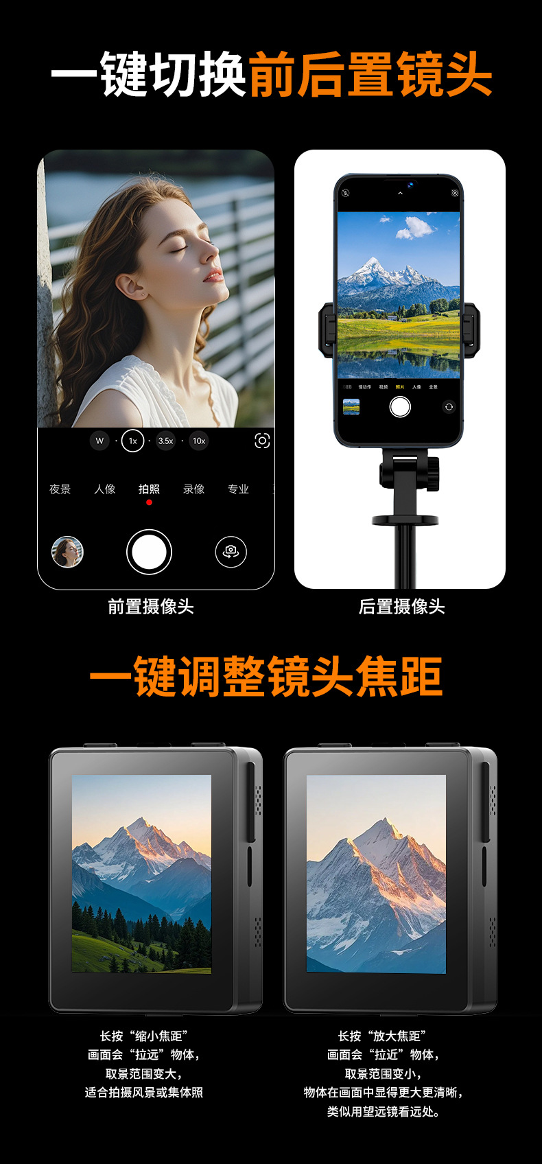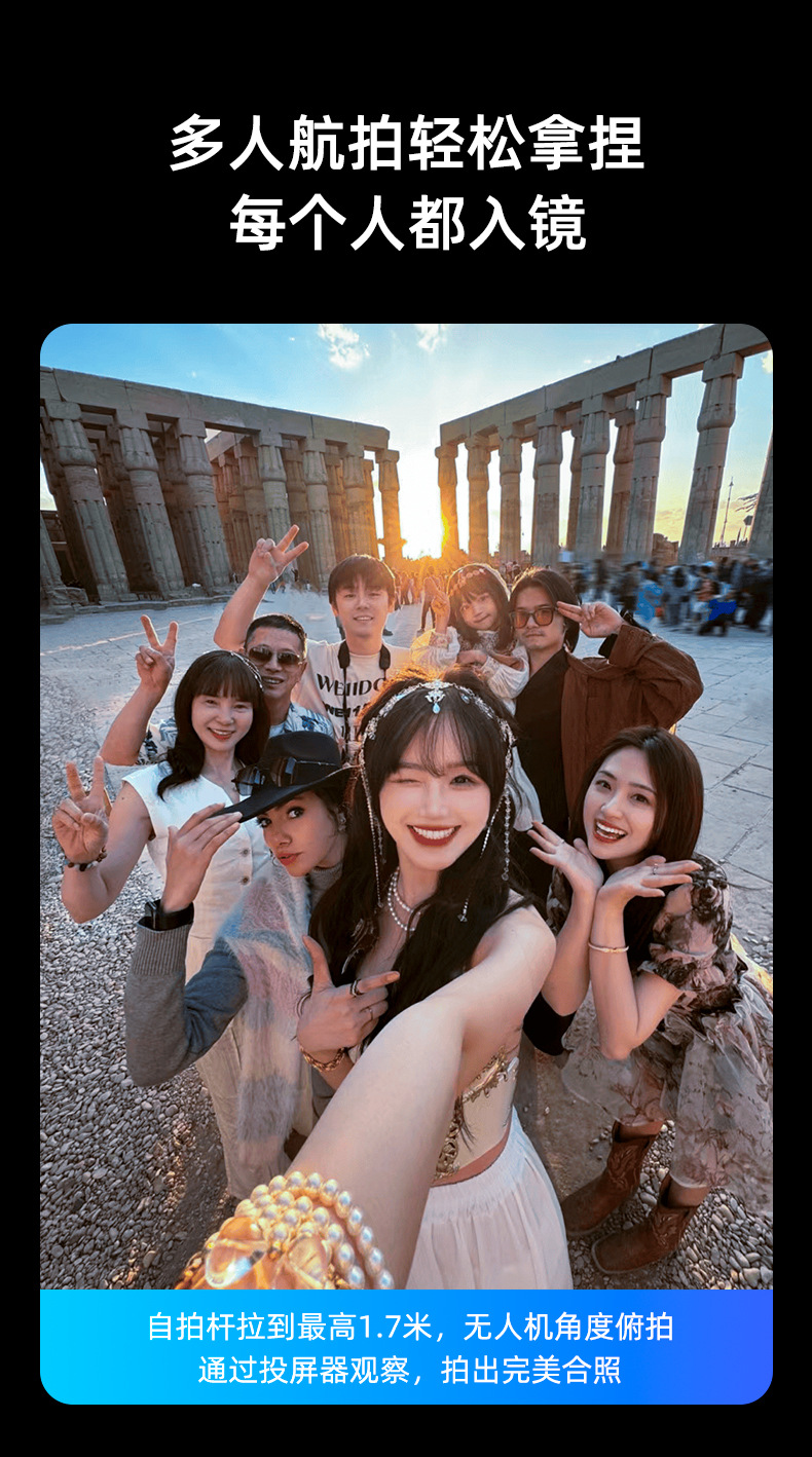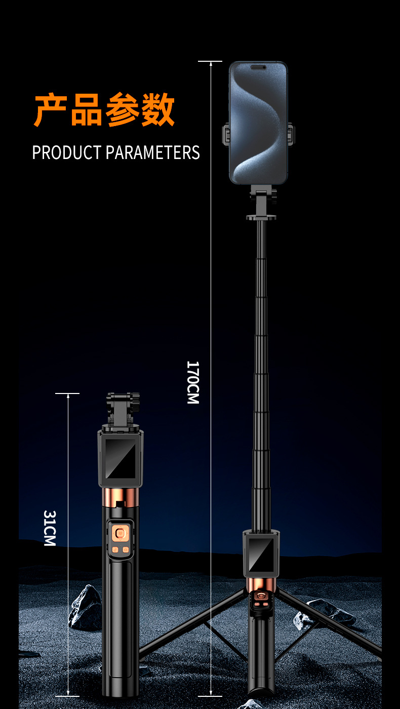 2025新款投屏自拍杆WIFI投屏双蓝牙遥控合金伸缩杆拍摄角度灵活