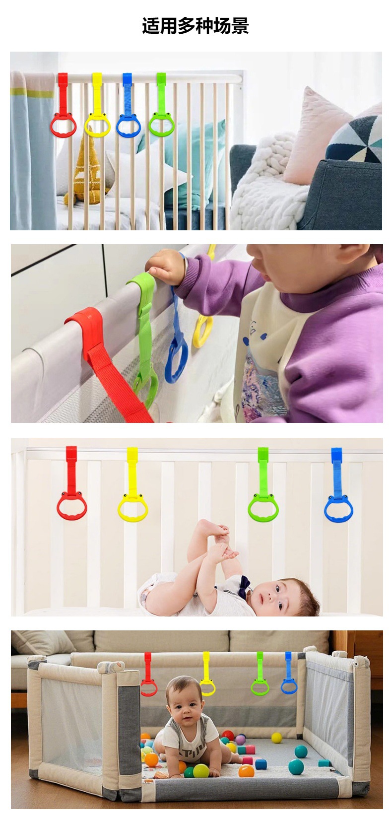 婴儿手拉环宝宝游戏床围栏挂环辅助站立学步拉手锻炼抓握玩具代发