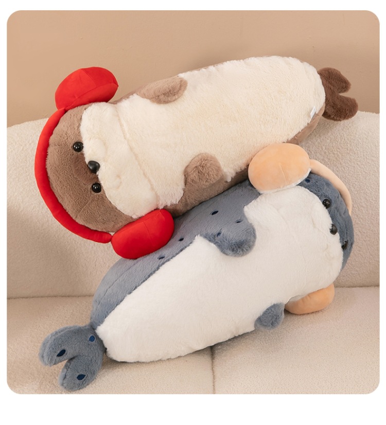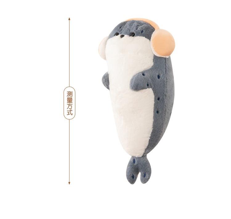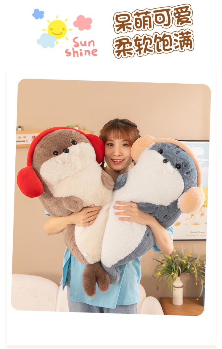 可爱带耳机的海豹玩偶抱枕女生睡觉布娃娃公仔靠枕毛绒玩具礼物批