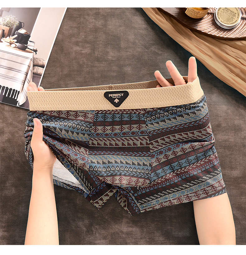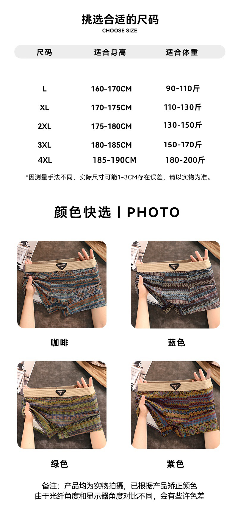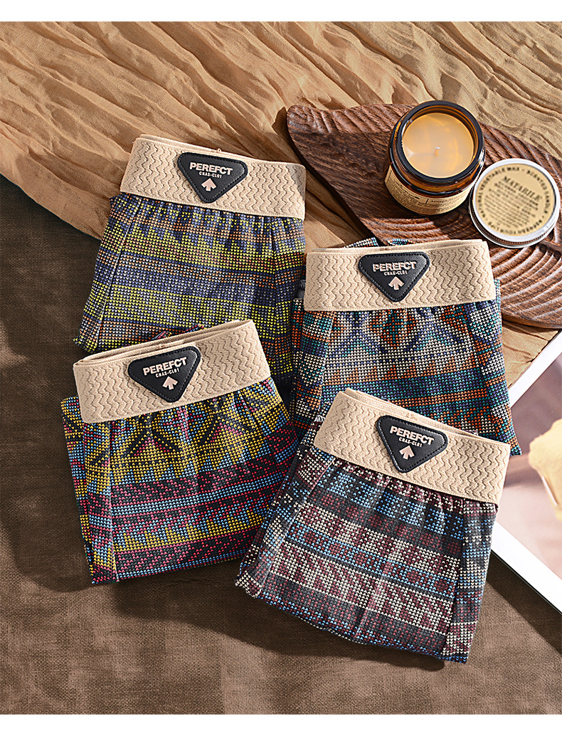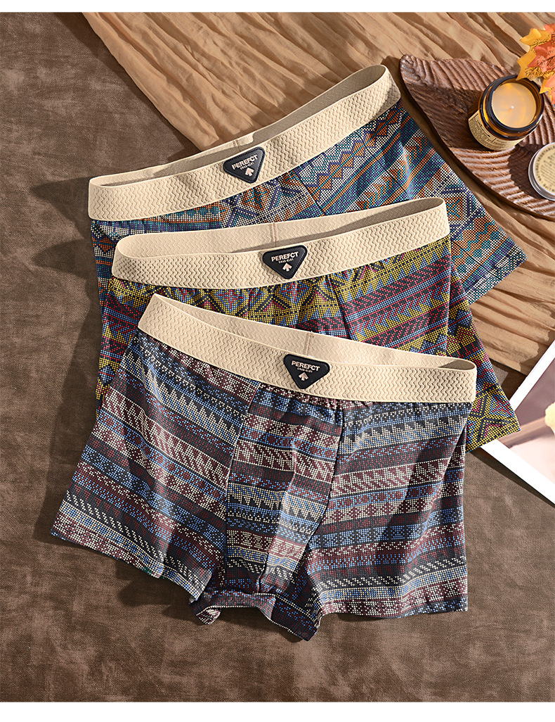 复古民族风纯棉男士内裤潮流印花男士四角裤宽松大码复古男士平角