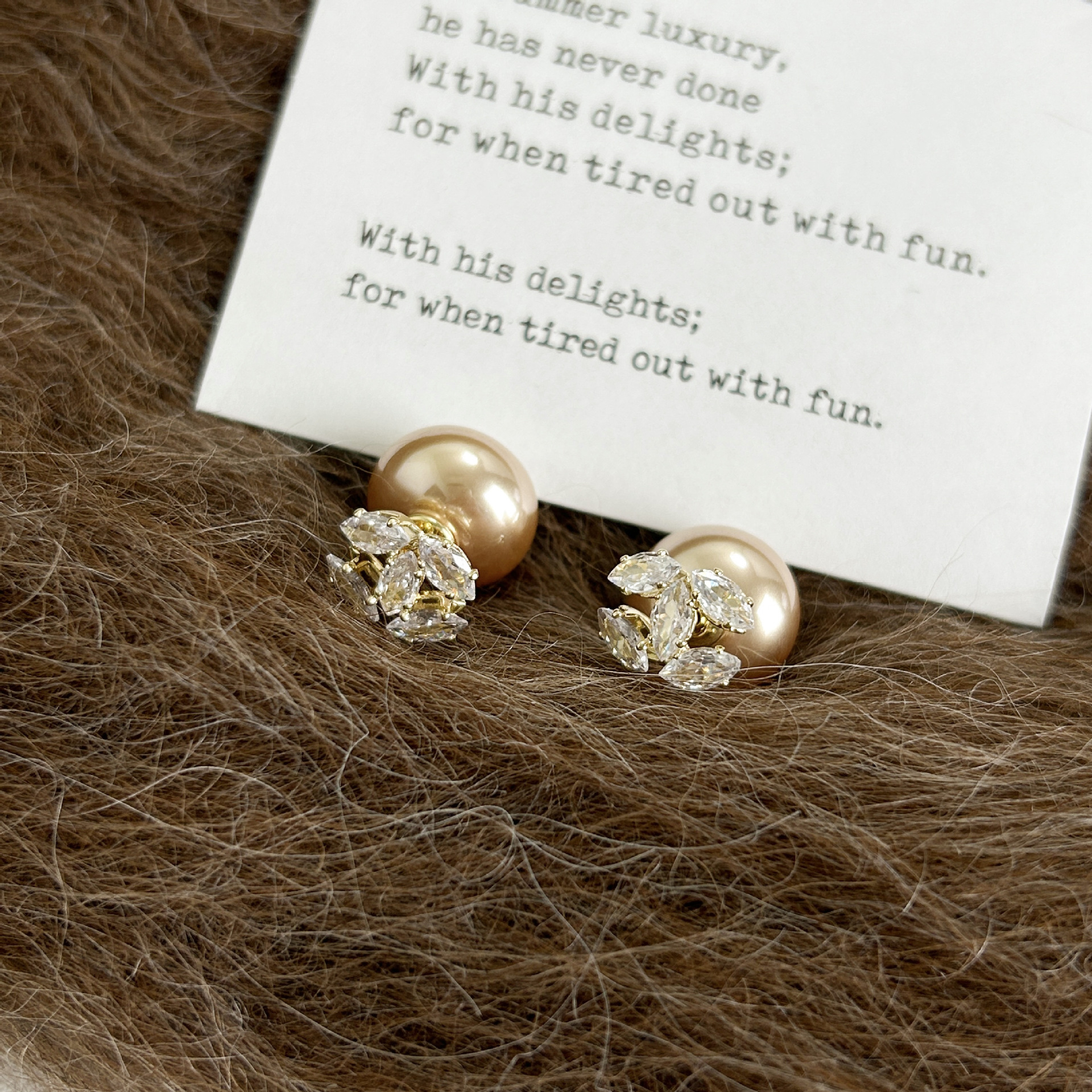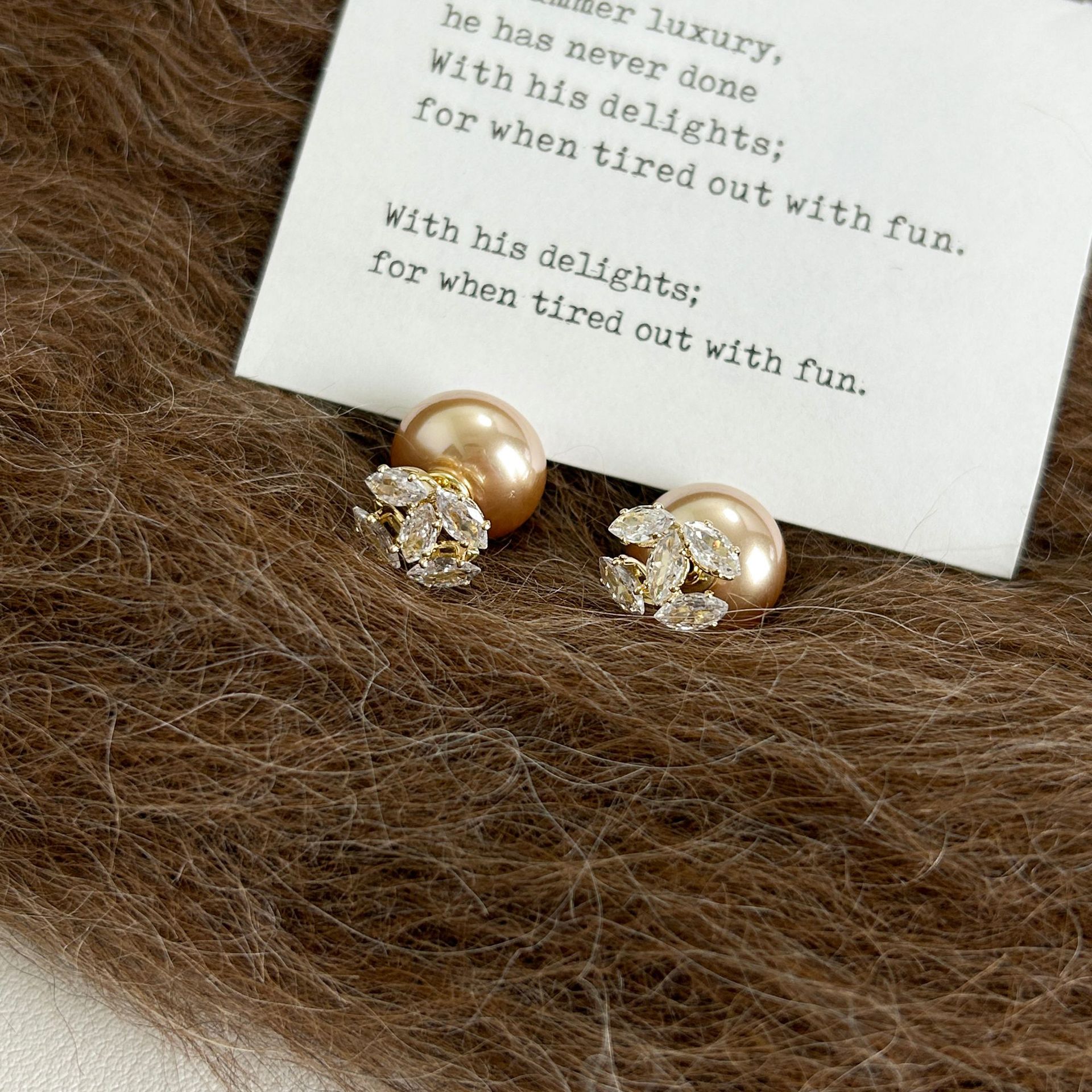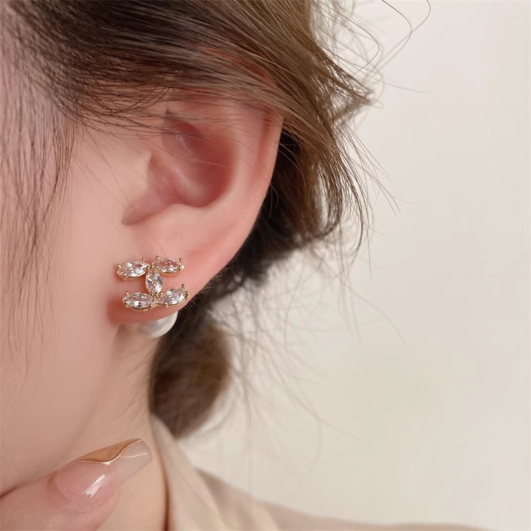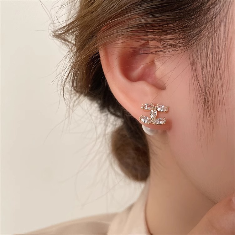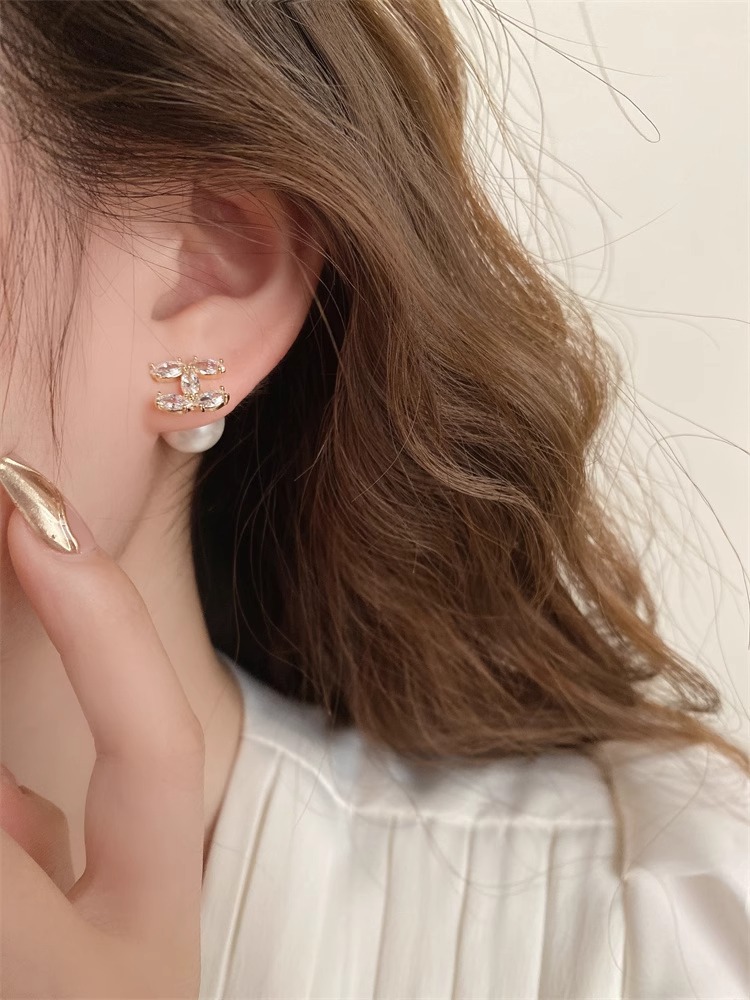 小香风锆石双C耳扣女小众设计感珍珠耳钉秋冬轻奢名媛风耳环耳饰