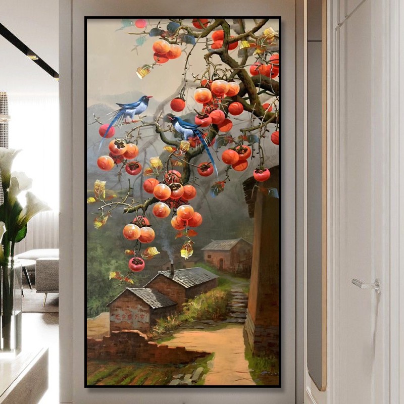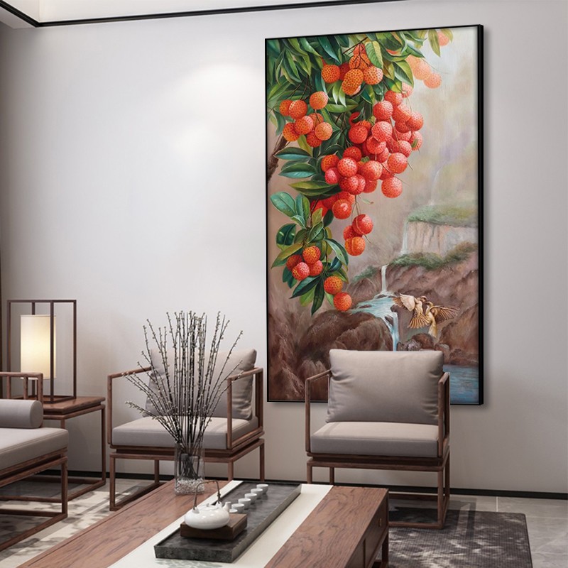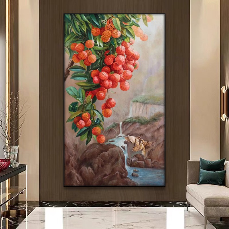 大芬村油画纯手绘玄关客厅大幅装饰画大吉大利荔枝花鸟餐厅挂壁画