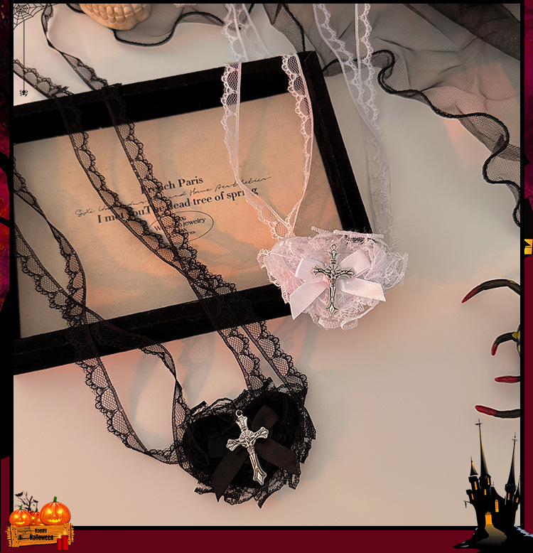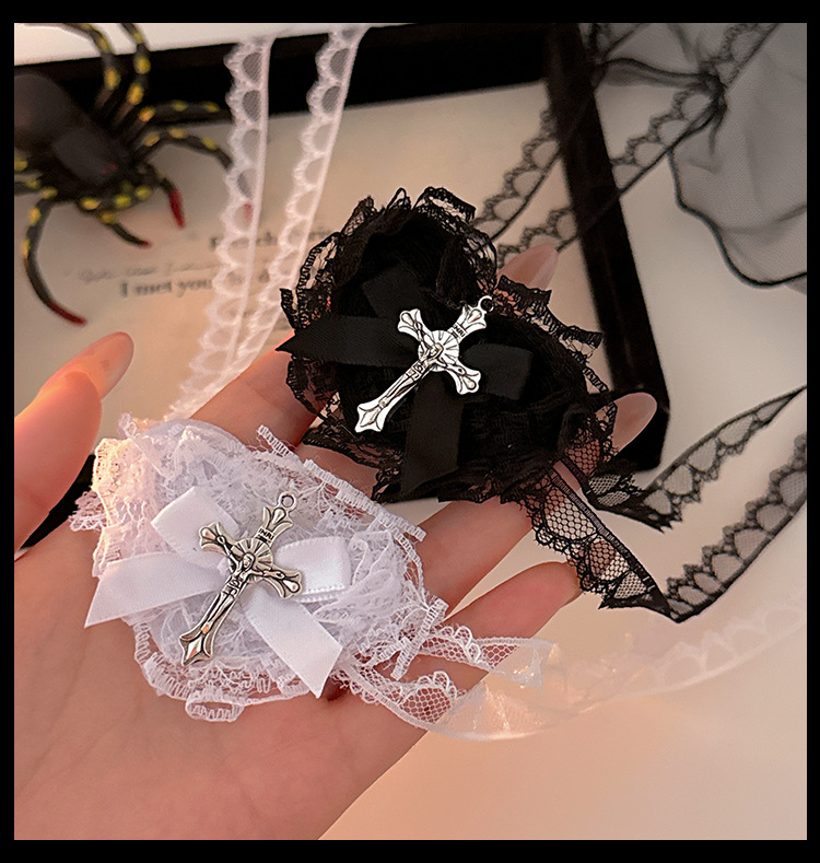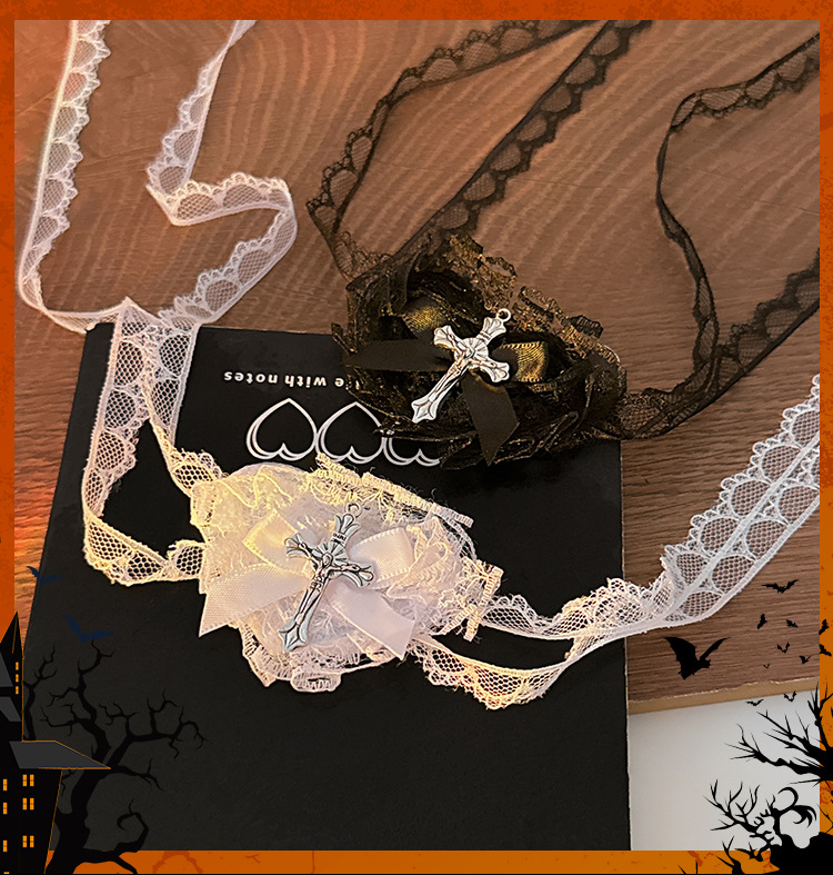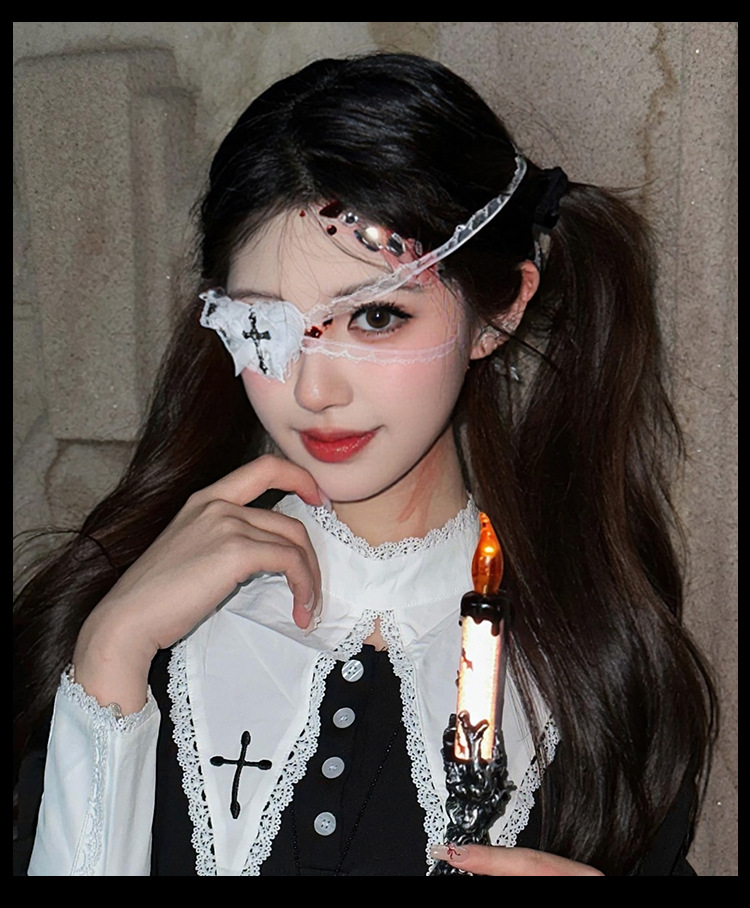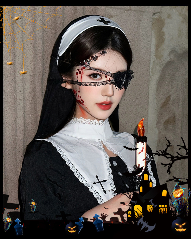 万圣节头饰暗黑哥特风蕾丝眼罩cos修女头巾2025新款拍照装扮配饰