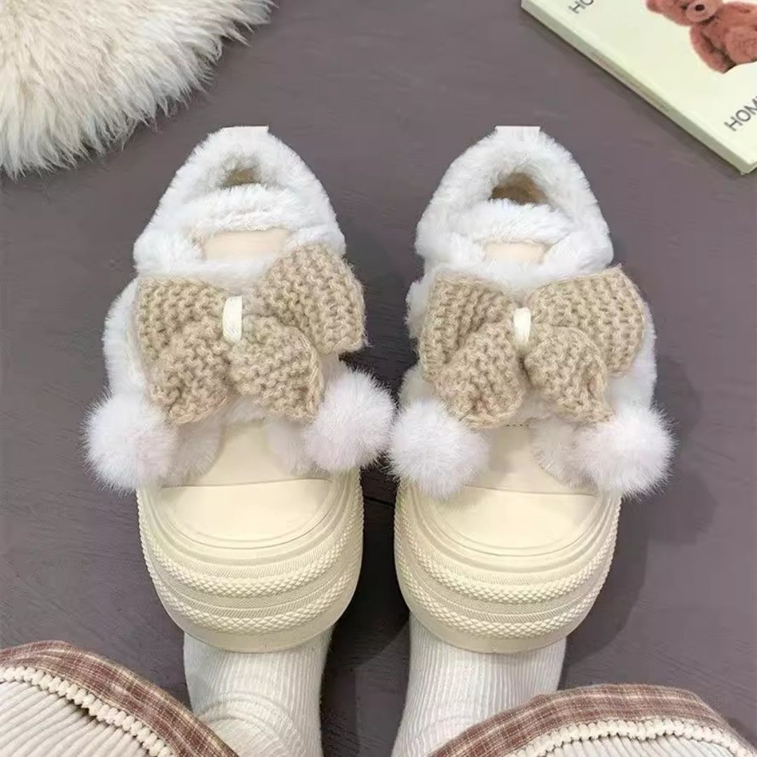 高颜值女款2025冬季厚底保暖蝴蝶结雪地新款棉鞋加绒可爱勃肯靴女