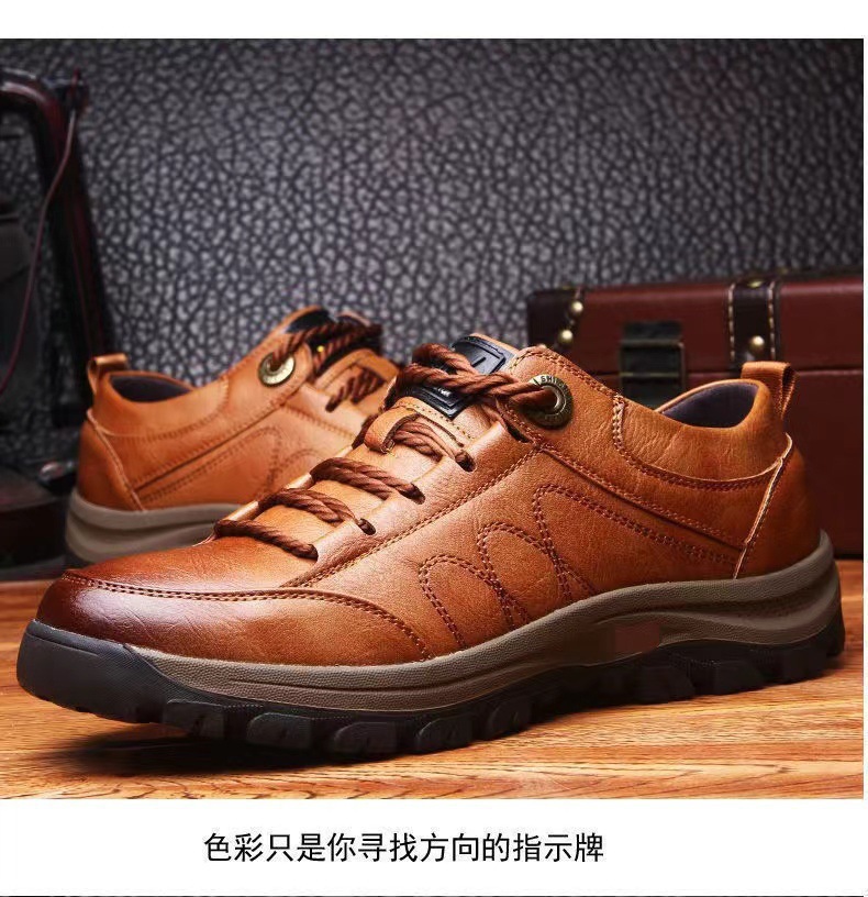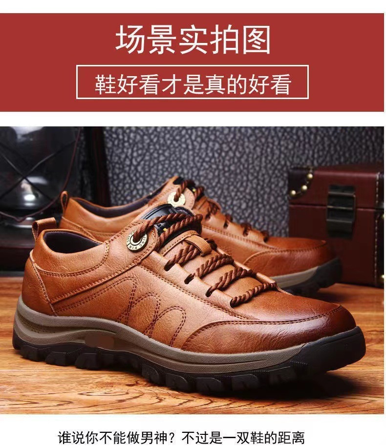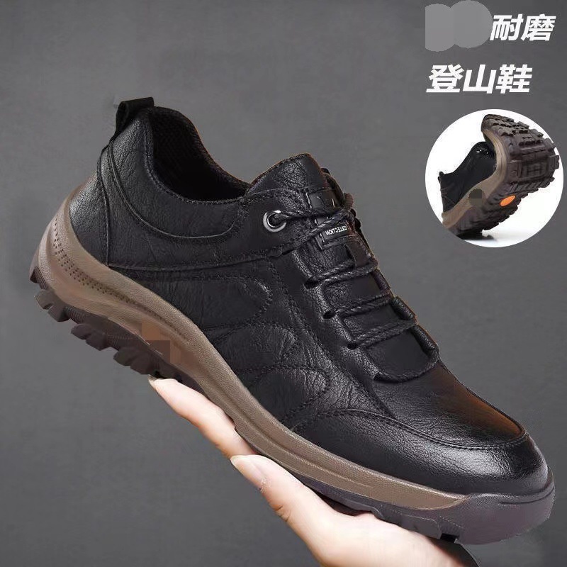 跨境大码PU男鞋2025新款登山鞋休闲运动鞋时尚系带英伦风潮流男鞋