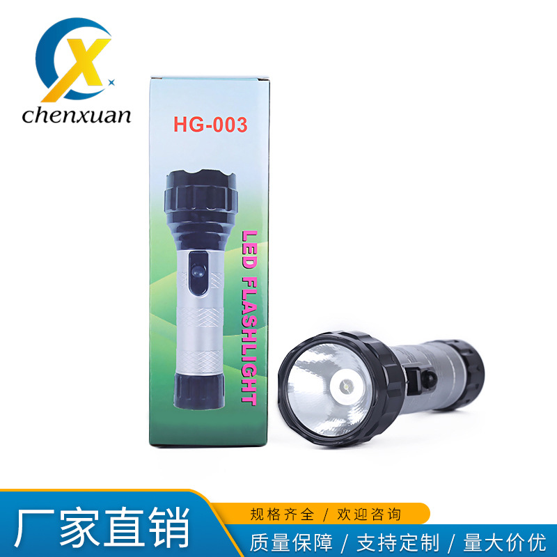 老式强光手电筒 装2节1号干电池 LED塑料大手电筒经典款