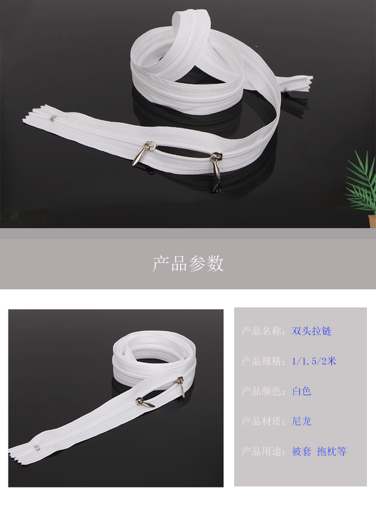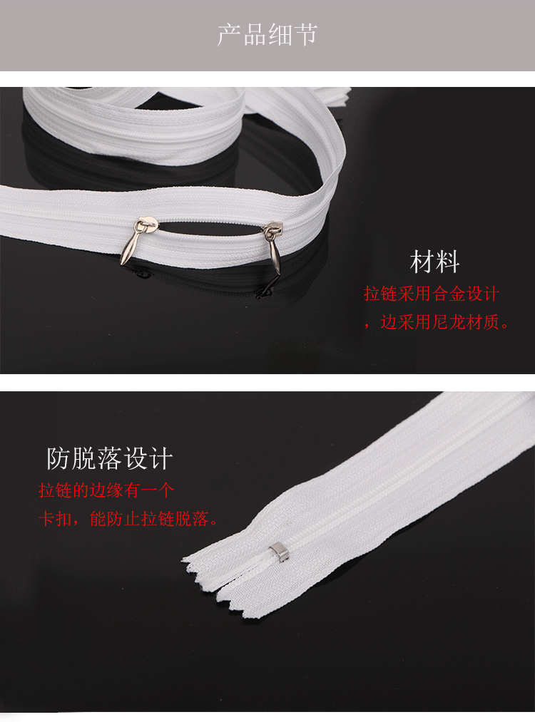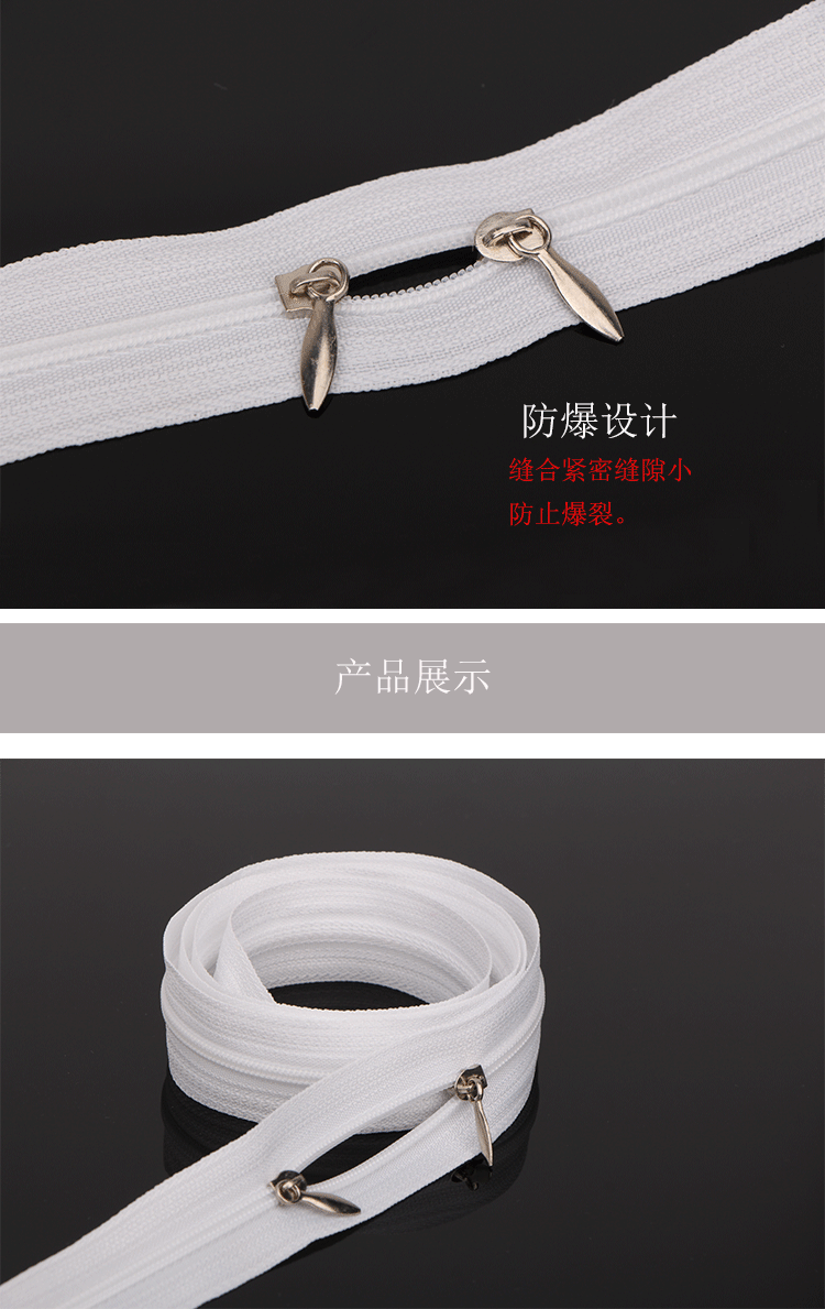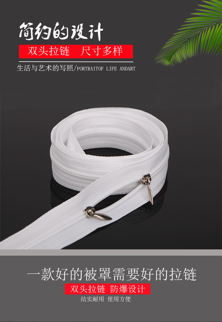 3号双头白色布条加宽尼龙被套拉链 靠垫拉链 被套拉链织带