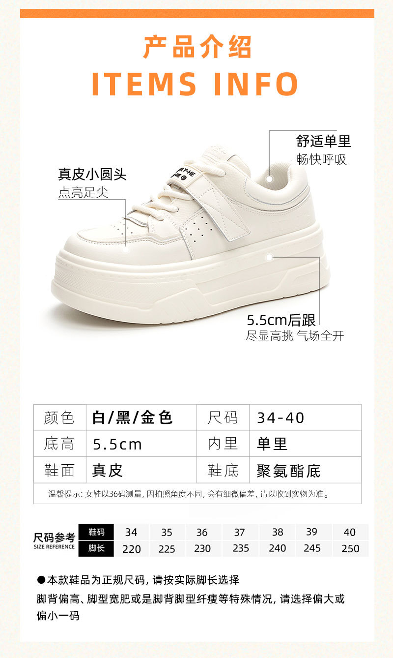 网红ins超火2025秋季真皮女小白鞋厚底松糕百搭休闲运动鞋面包鞋