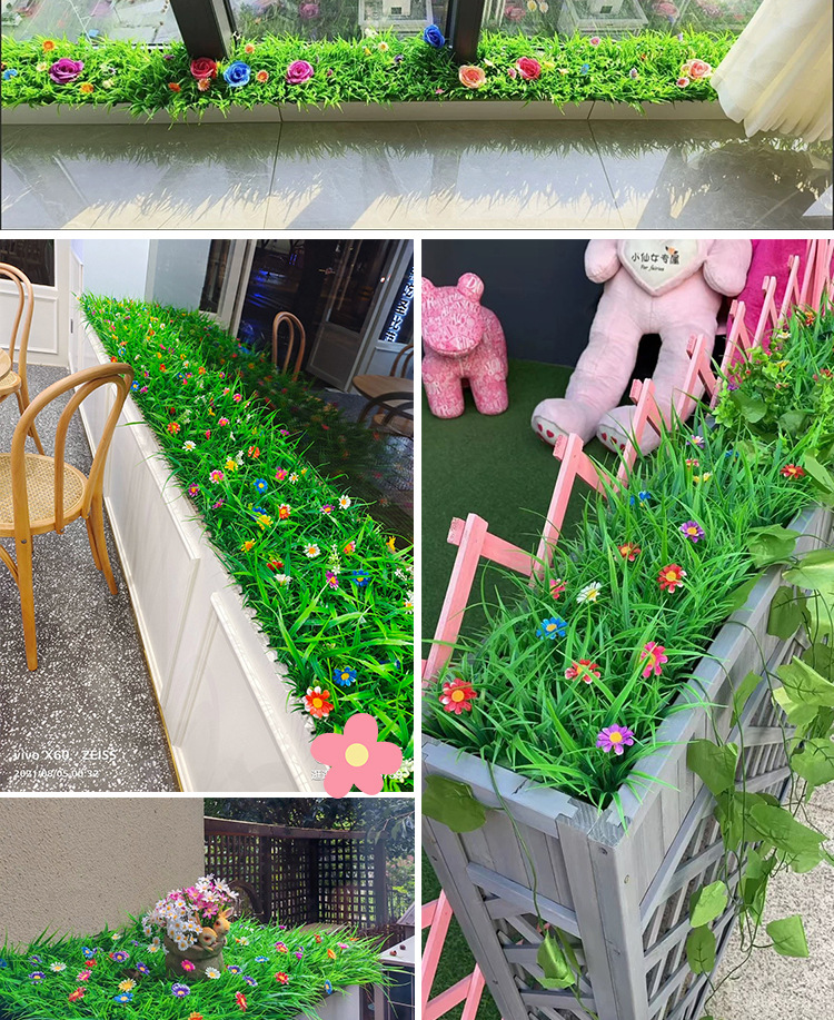 仿真草坪假绿植带花隔断植物墙塑料装饰绿草皮垫地毯造景摆设窗台