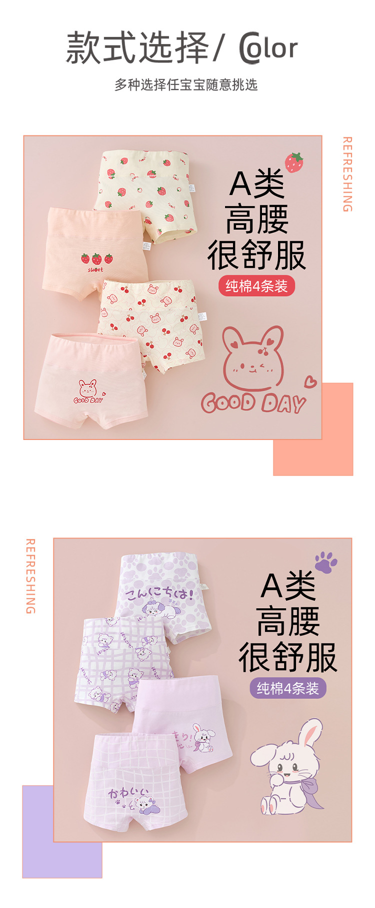 儿童内裤女童高腰纯棉a类棉6-12岁平角女宝宝中大童短裤不夹屁股