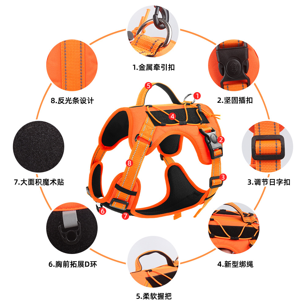 新款宠物胸背带 背心式反光狗狗牵引绳防爆冲战术狗狗胸背带批发