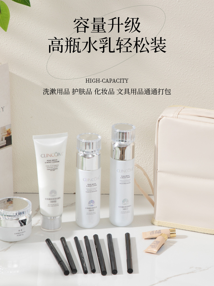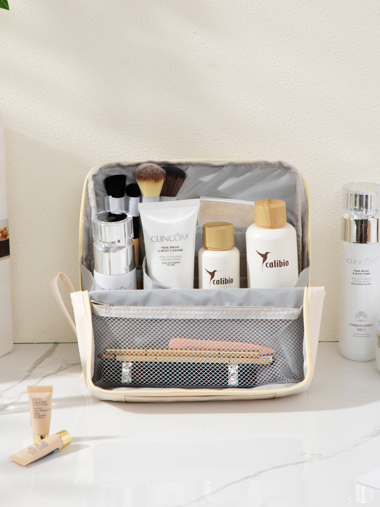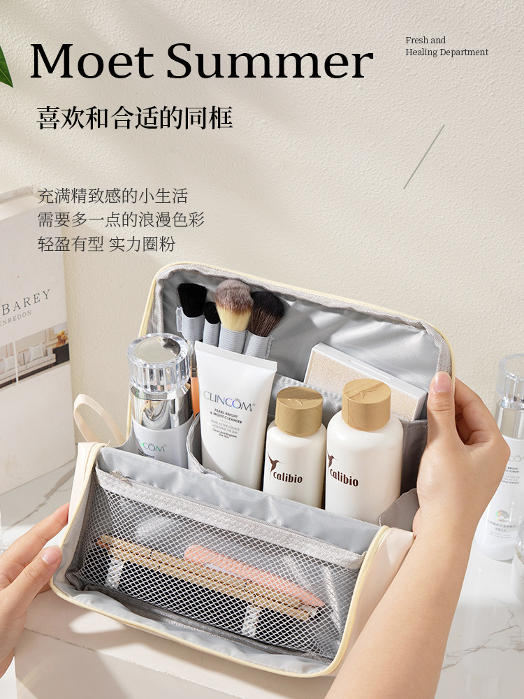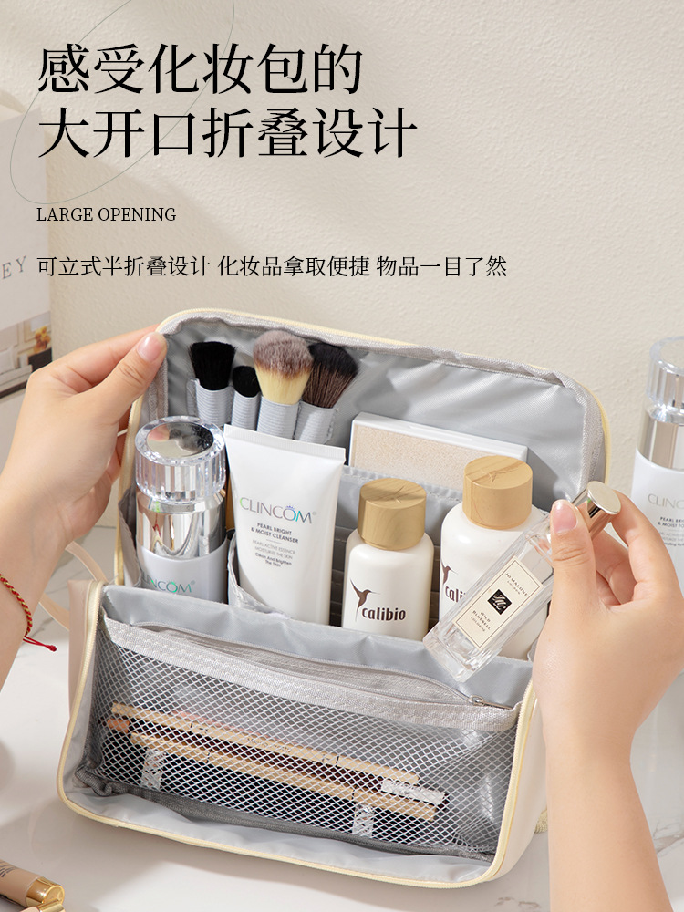 2025新款PU化妆包大容量手提便携式外出旅行必备分区笔袋洗漱包包